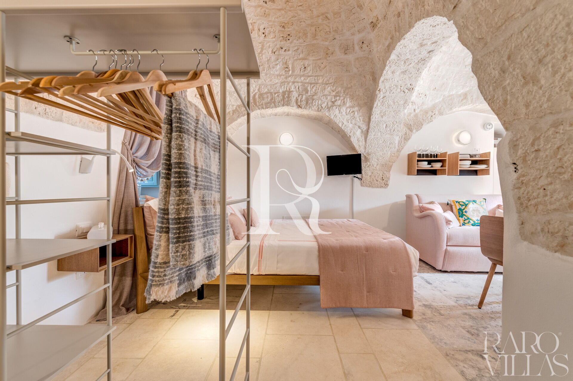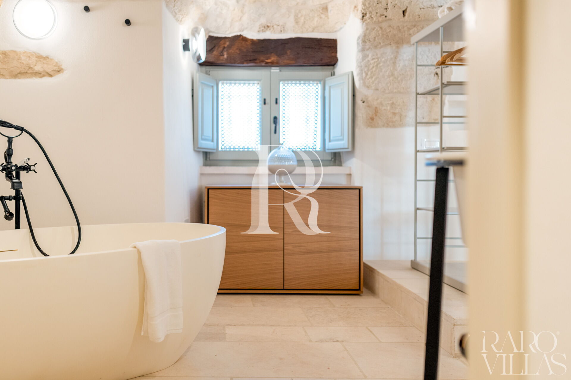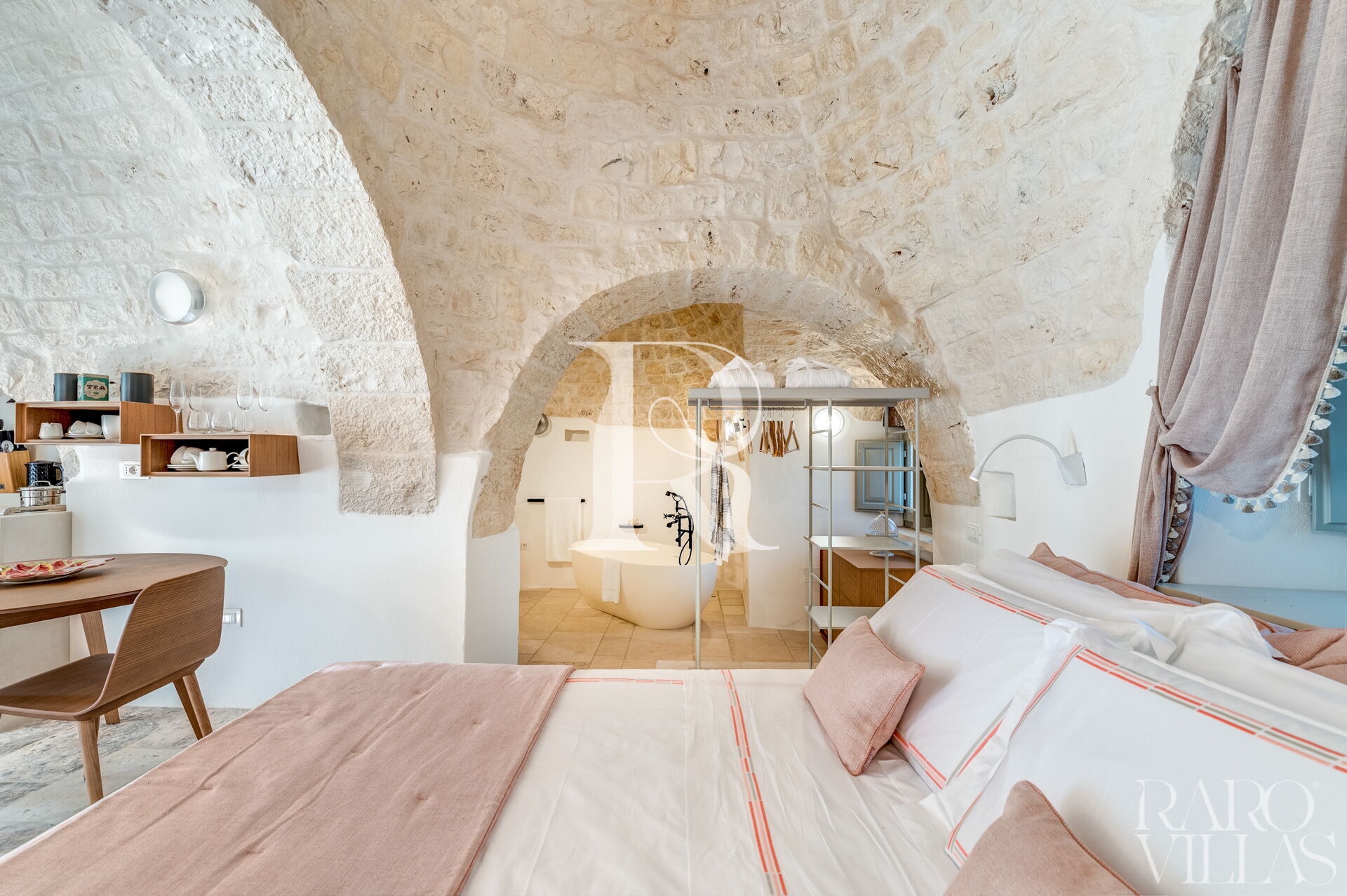 Still from the entrance, on the right, you can access the Trullo with the bedroom with a full bathroom which can also be used as a service bathroom in the living area or for the exclusive use of the bedroom.