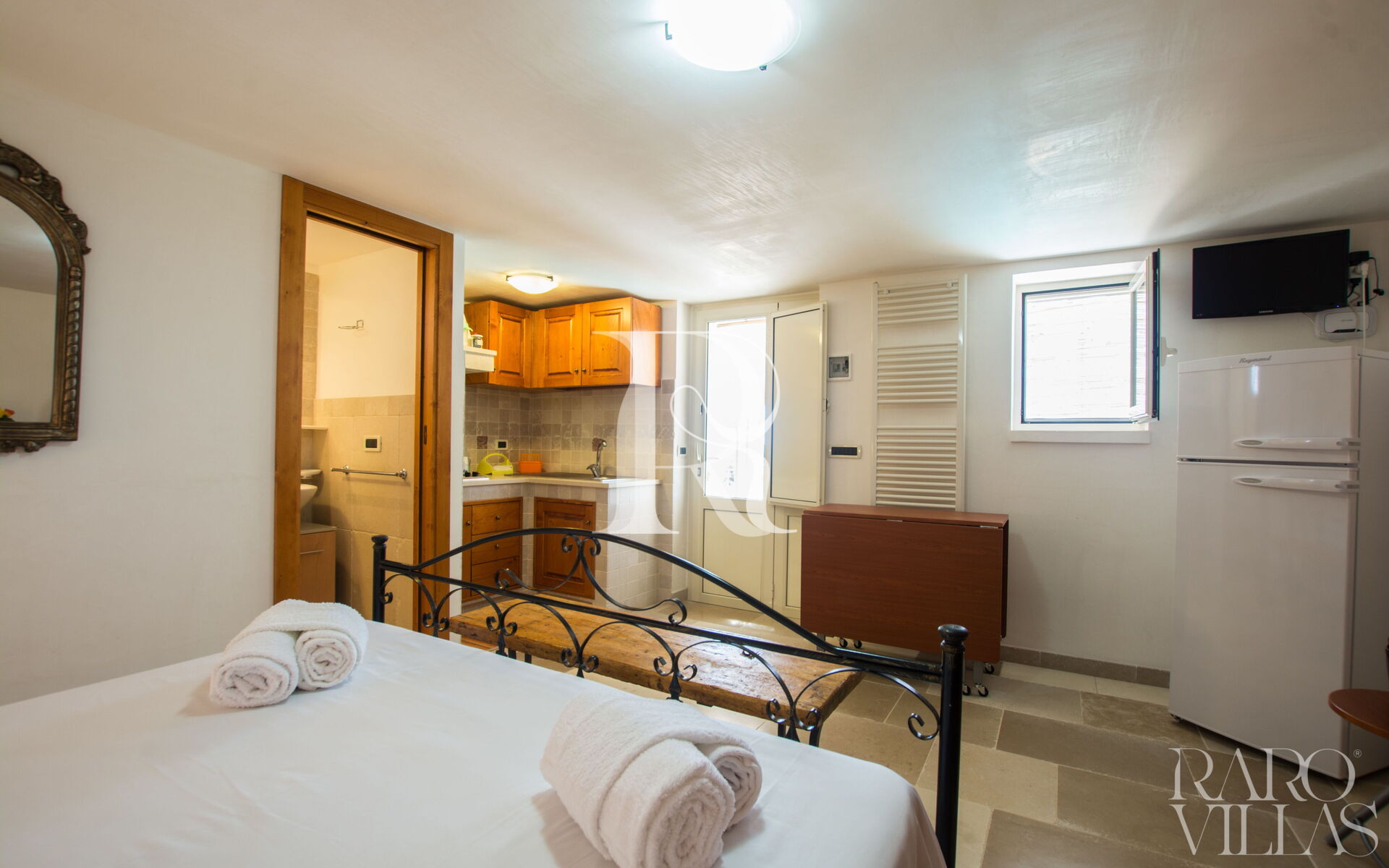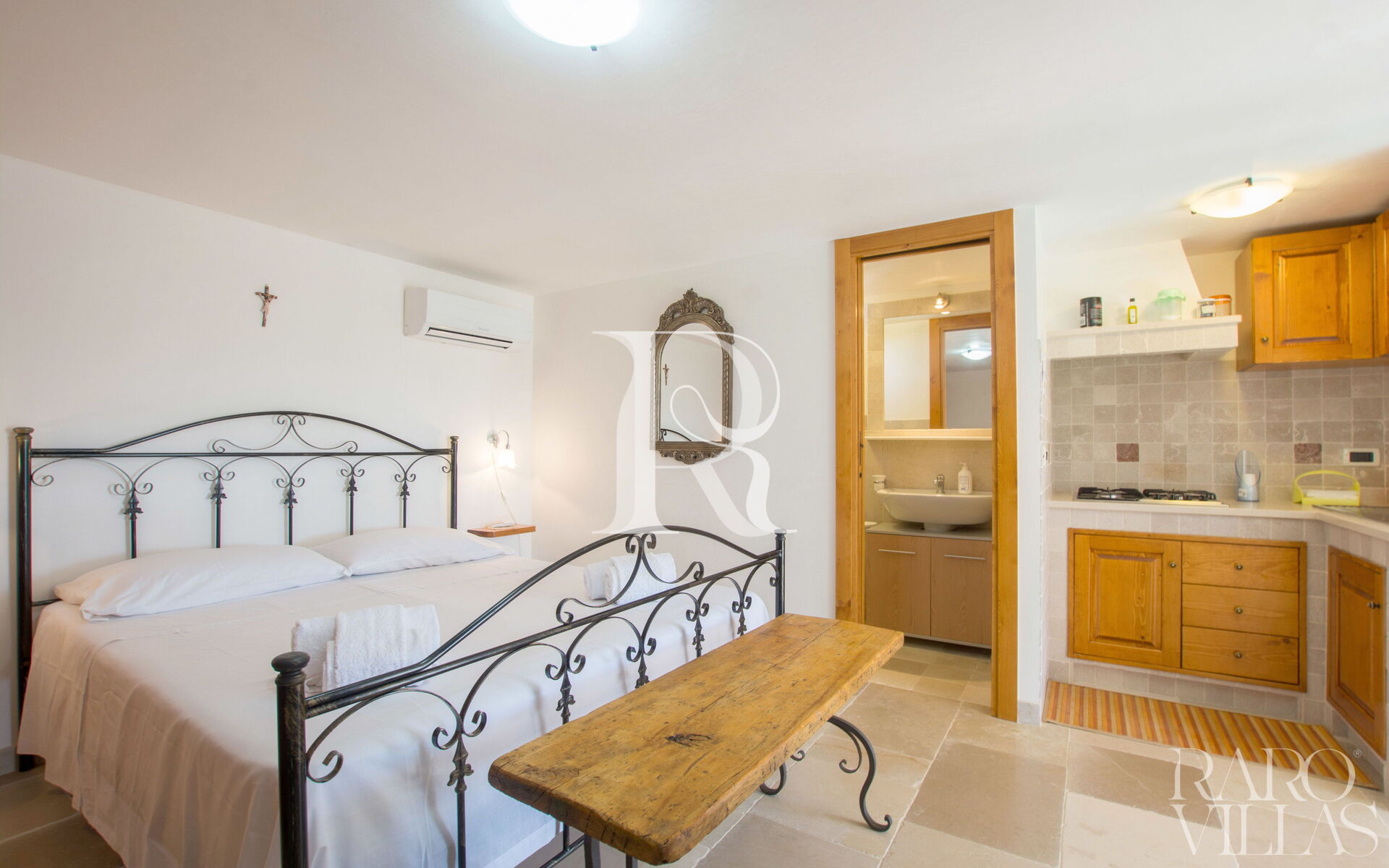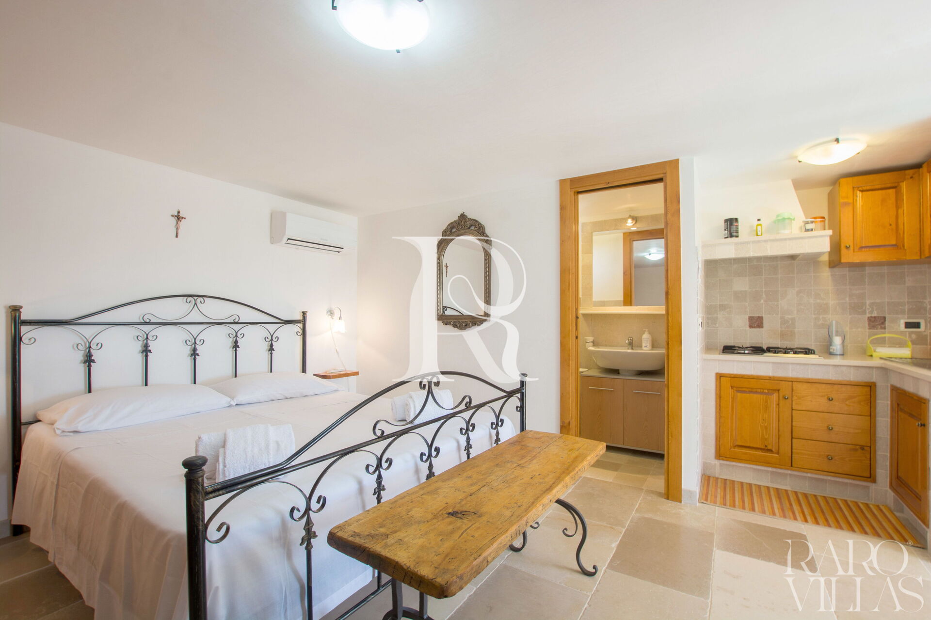 The trullo, the most magical and ancient part, is divided into two levels and on each one there is a suite with a kingsize double bed, kitchenette and bathroom.