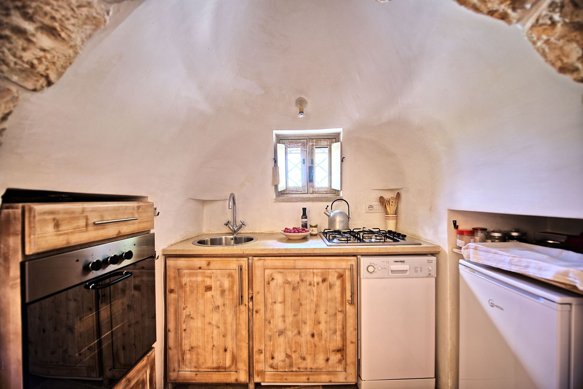 A restoration of the trullo was carried out with great care paying close attention to ensure architectural and structural characteristics were preserved. The building dates back to about 250 years ago.