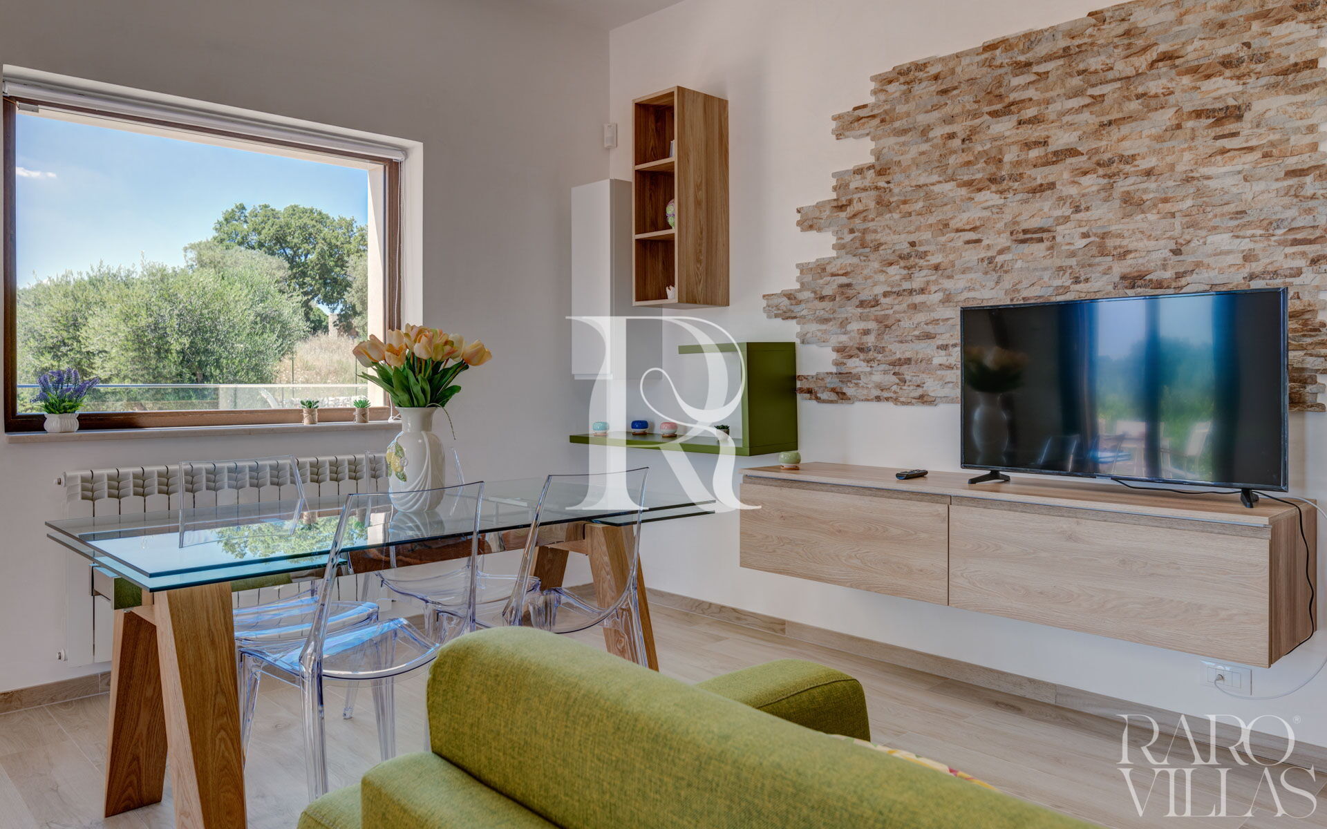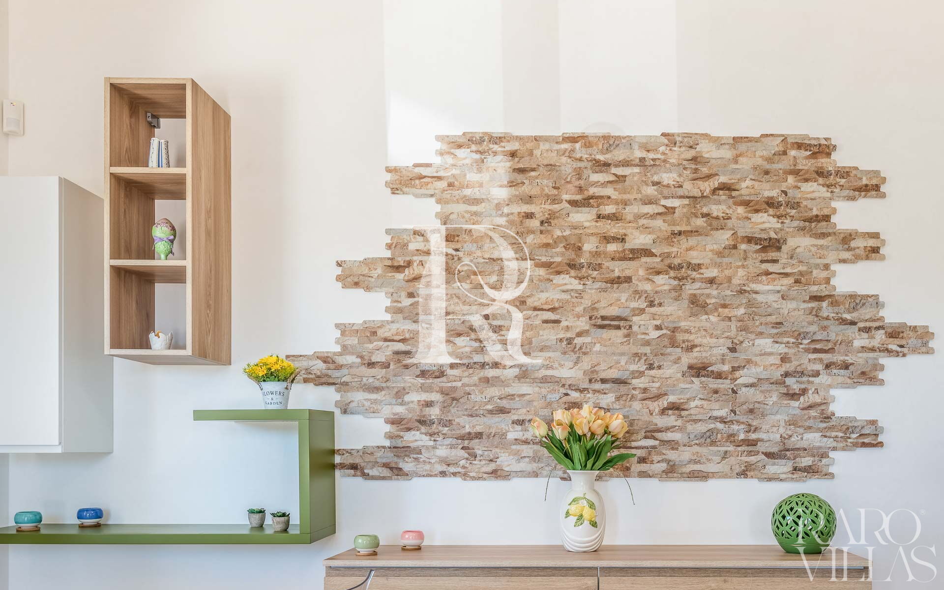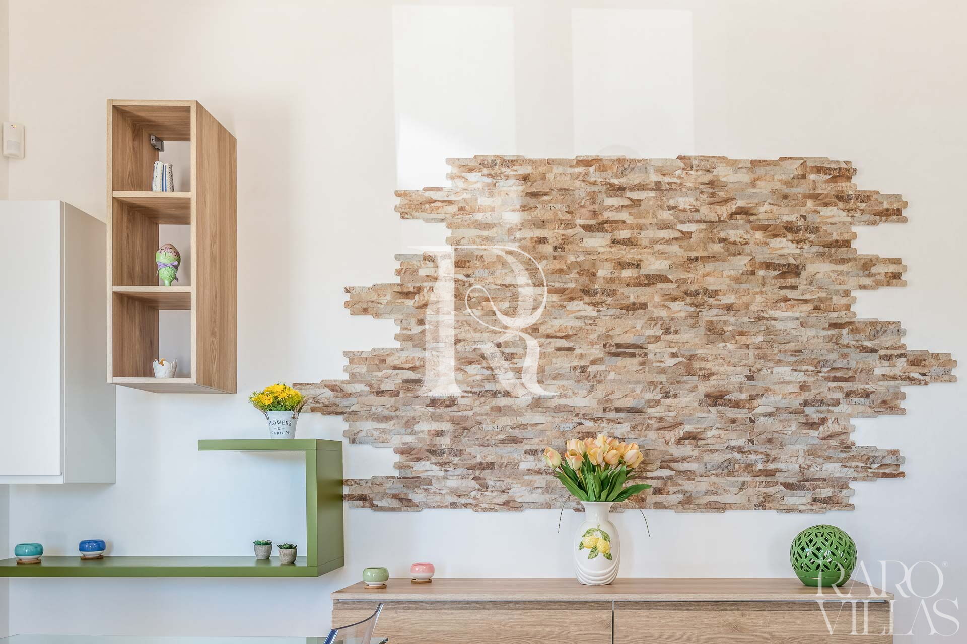The rooms are spacious and very bright, thanks to the light ceramic floors, with a wooden texture effect.
