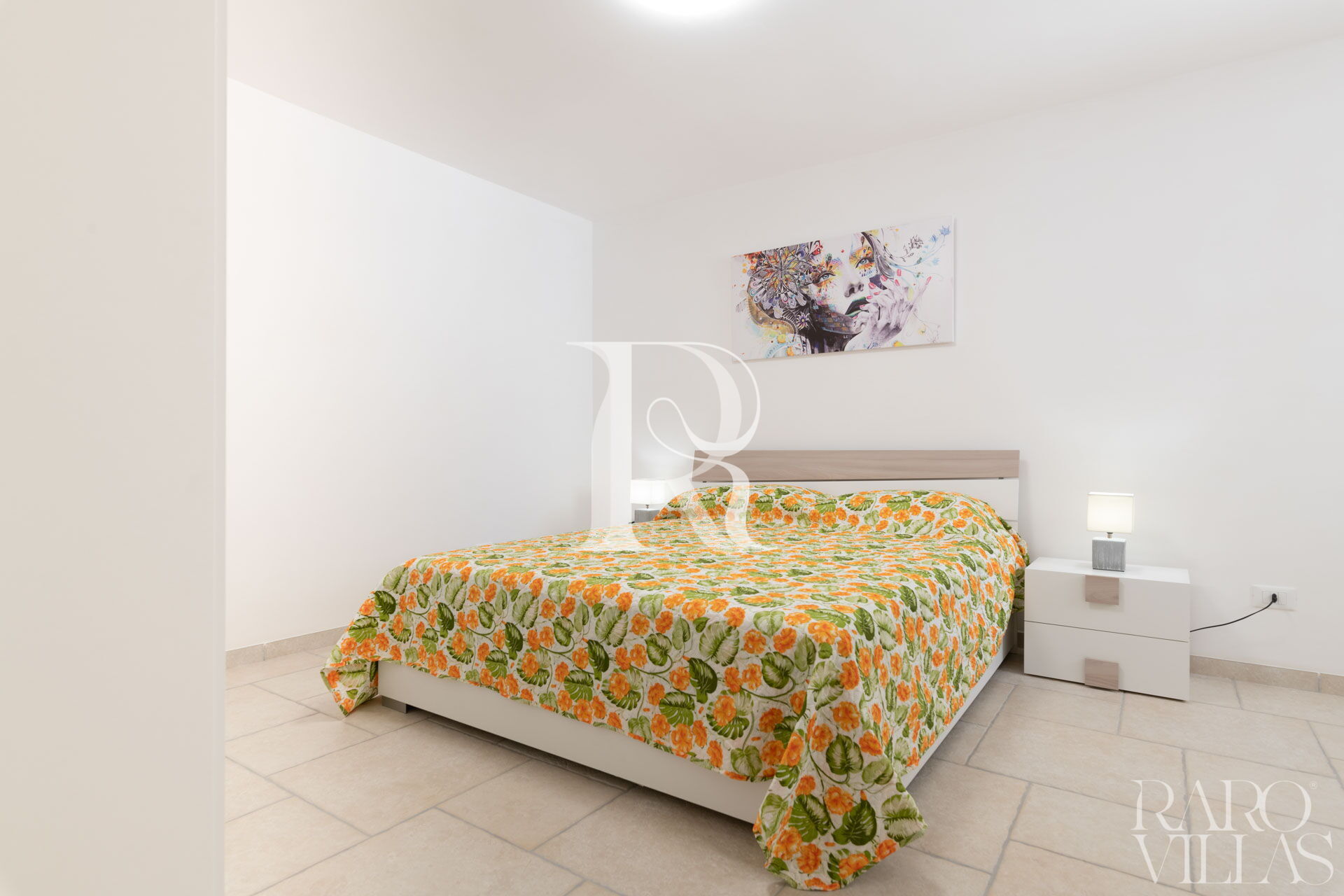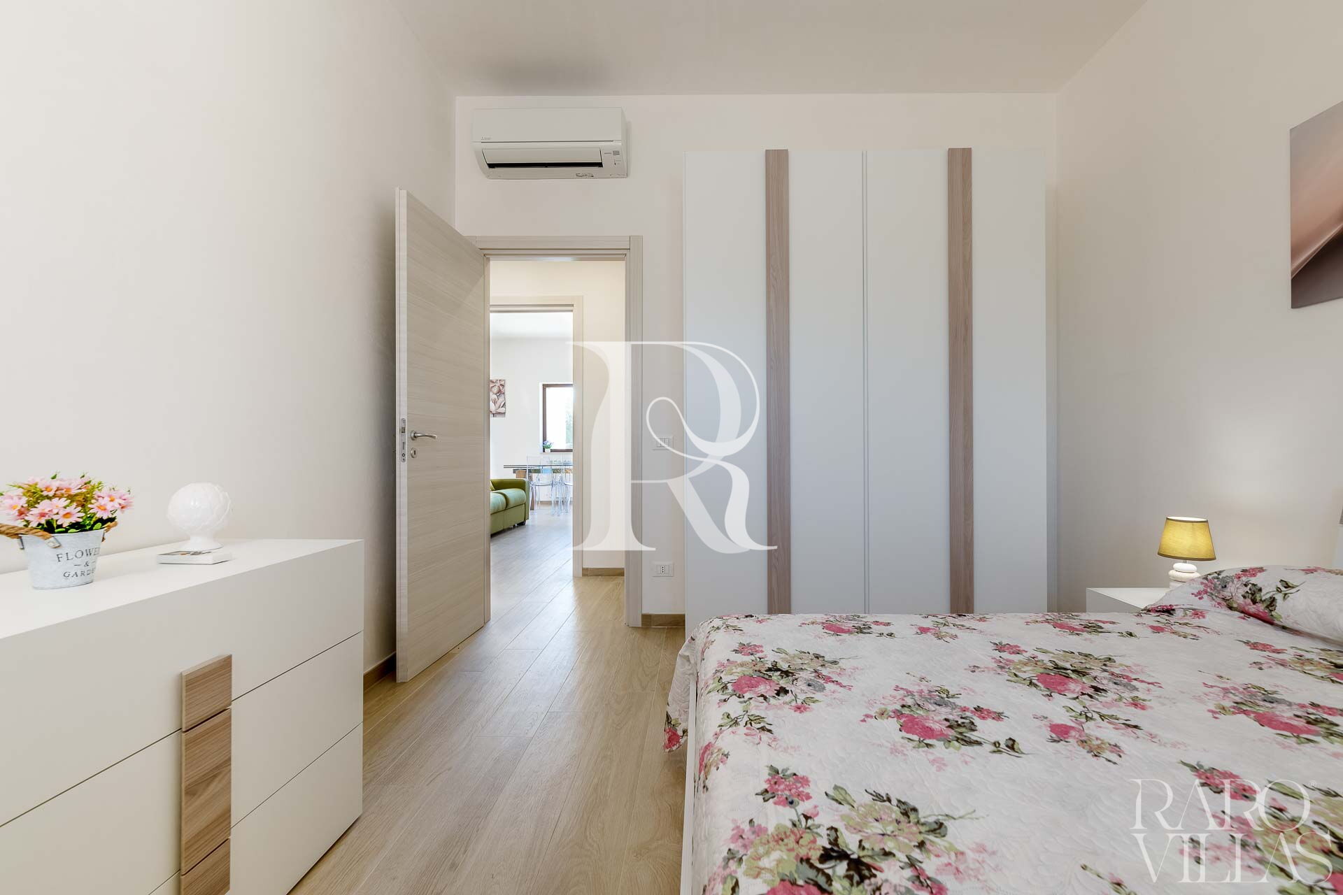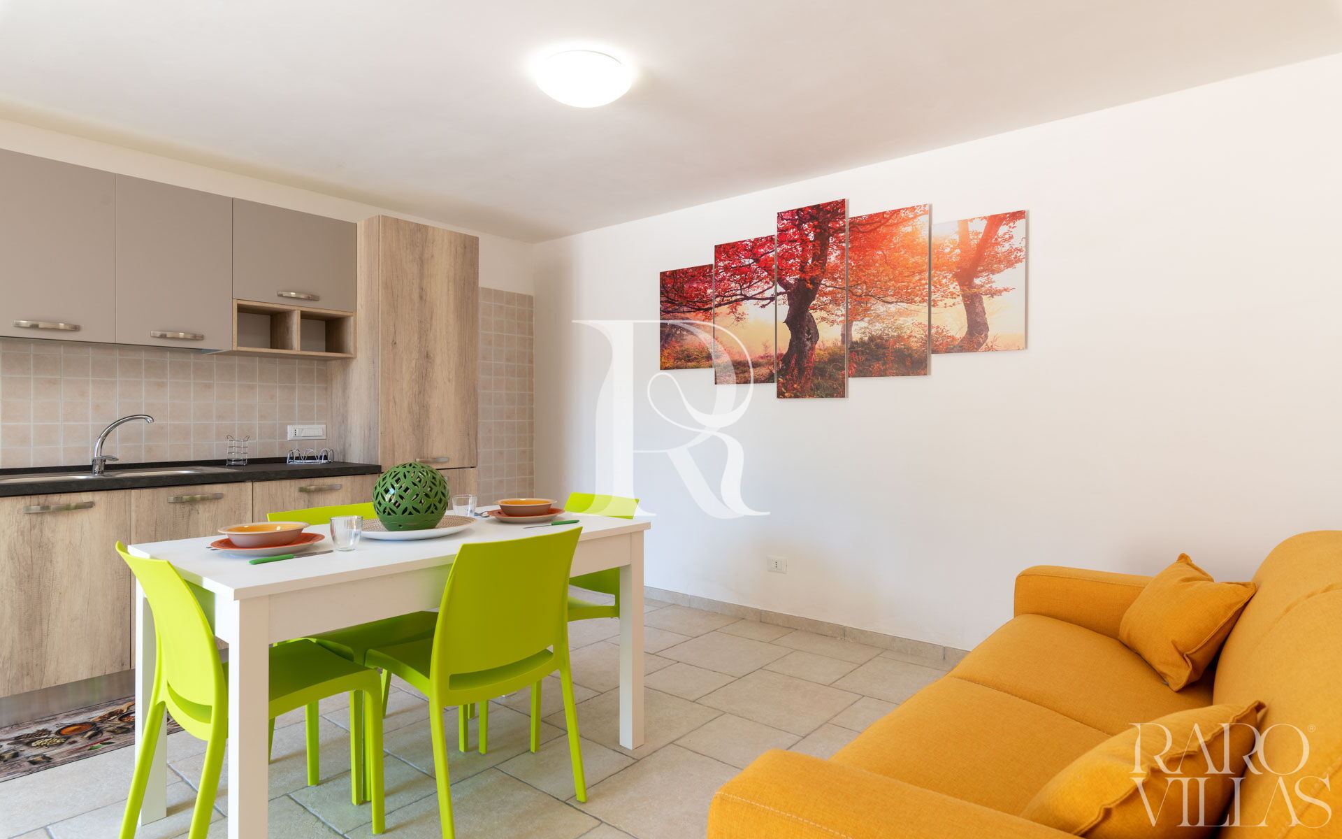 On the lower floor, with access from the outside, there is an independent apartment equipped with a second complete kitchen, a third bedroom with double bed and a complete bathroom (shower, toilet, bidet, sink with mirror).