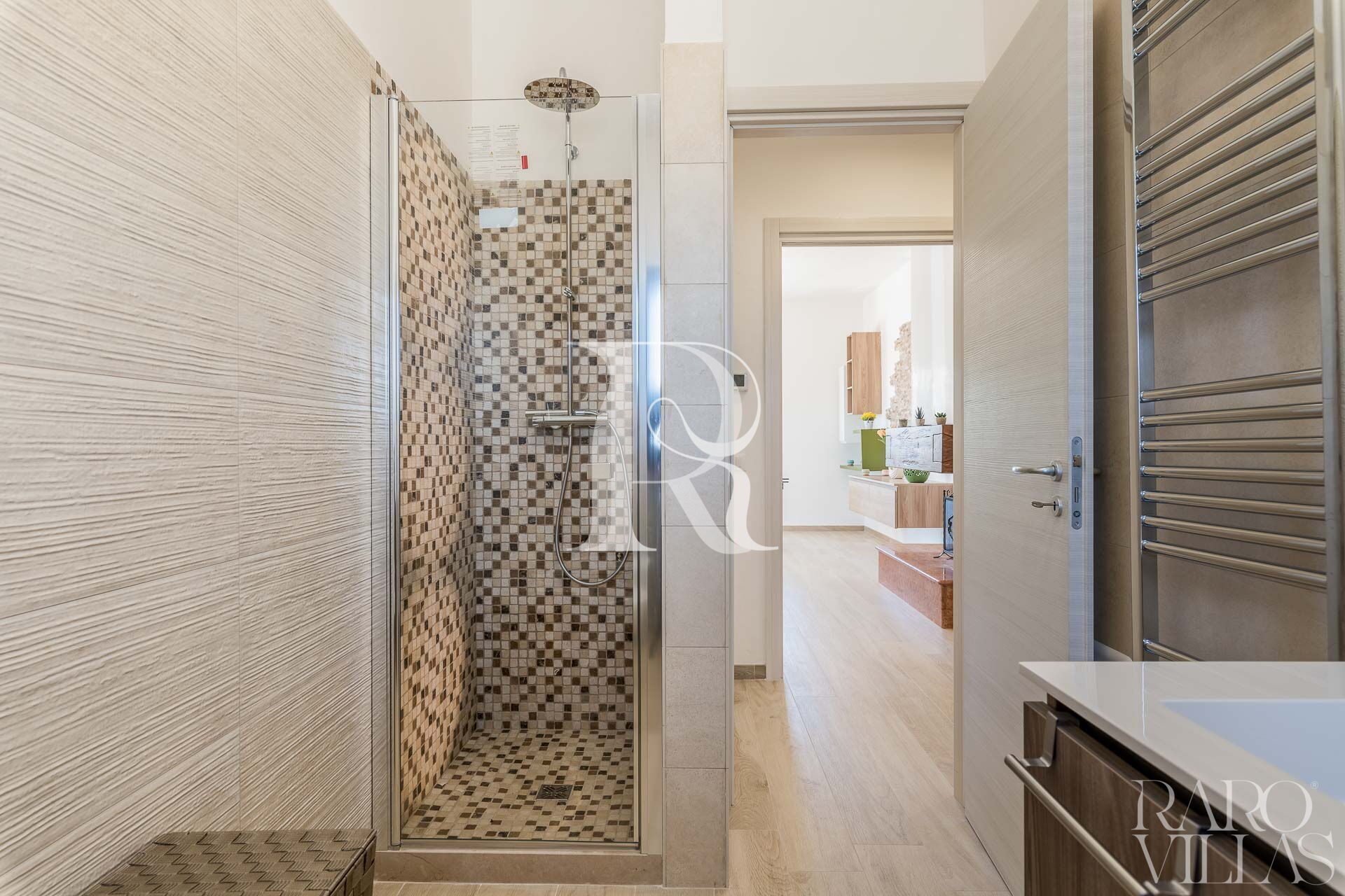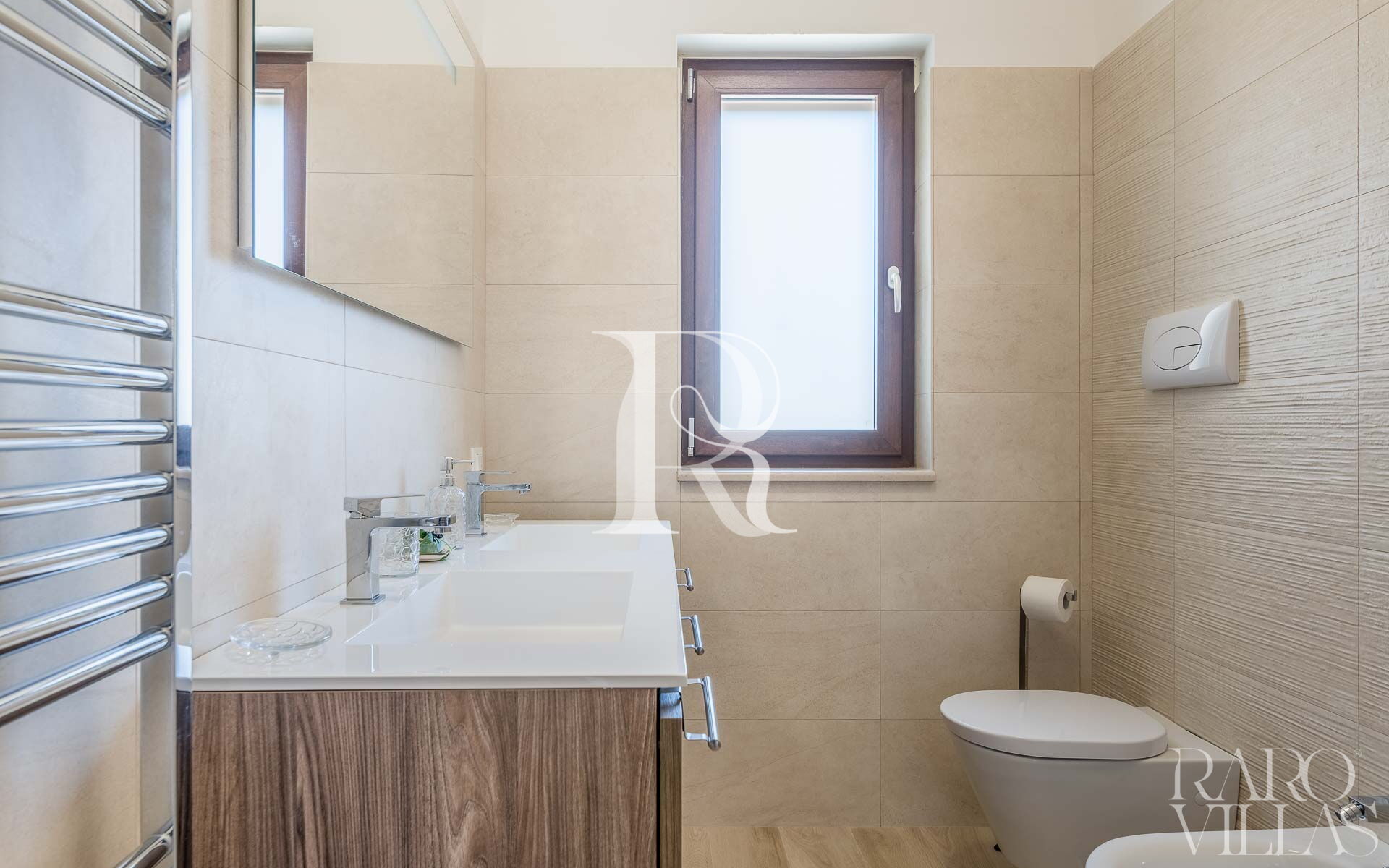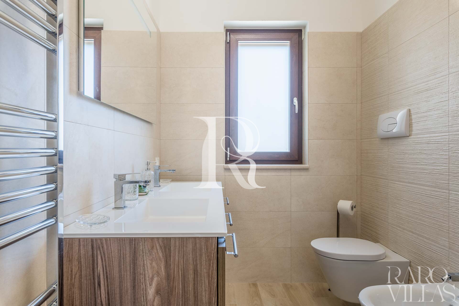 The villa for rent is powered by electricity, and is equipped with solar panels for the generation of hot water in the rooms on the ground floor and an electric warmer for hot water on the lower floor.