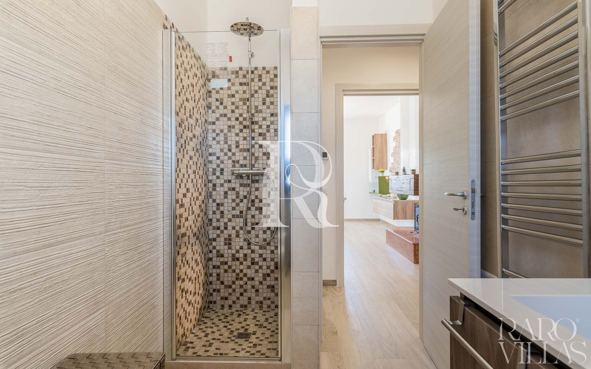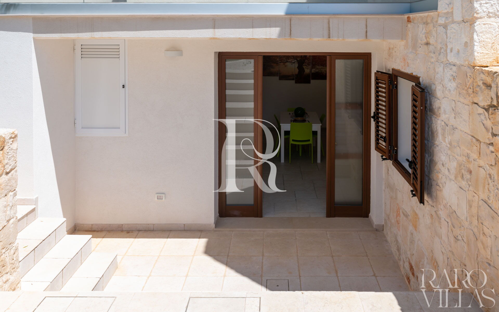 Guests enter to the Villa Certosa through an electric gate located a few meters from the house. Passed six steps, there is a small veranda with the outdoor dining table and the relax area with comfortable sofas.