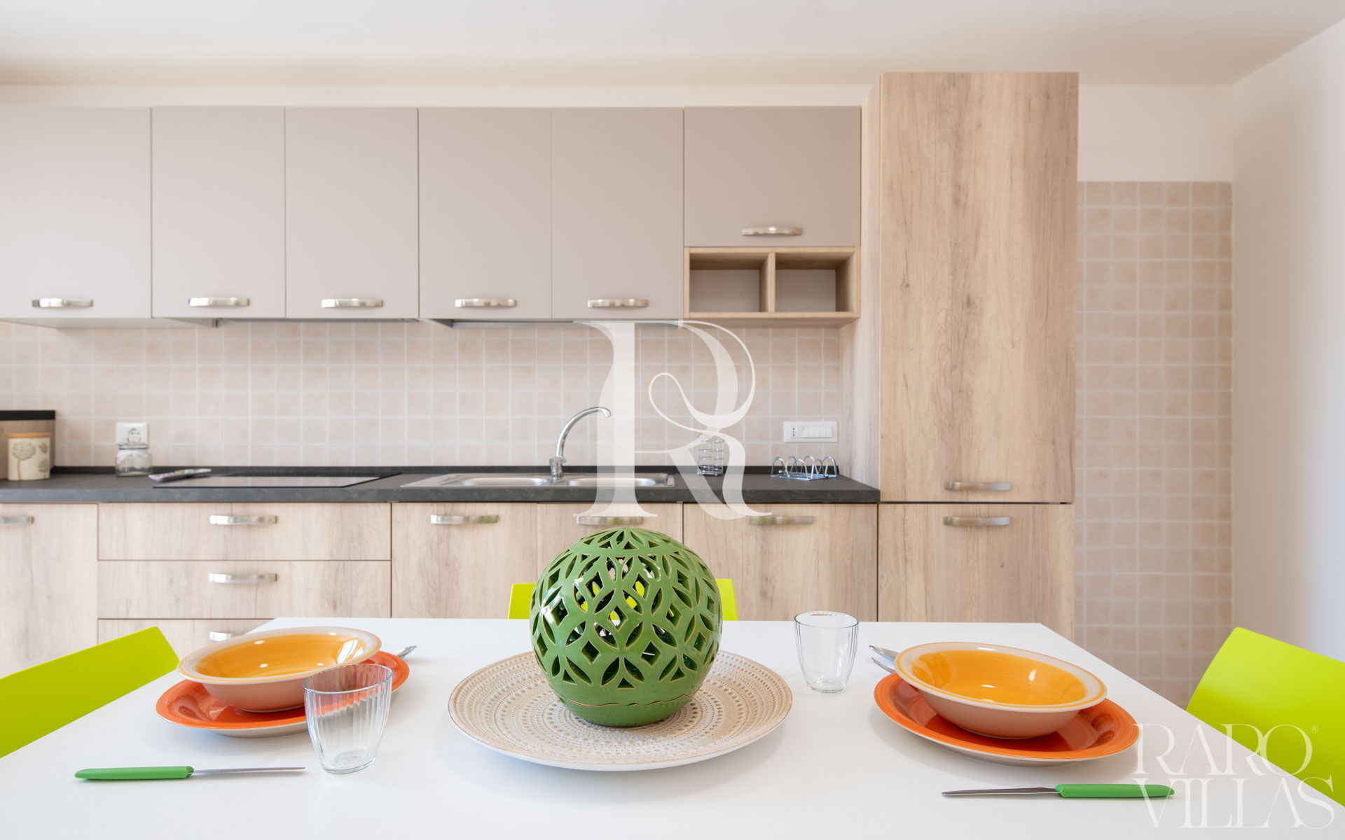 On the ground floor, there is also a kitchen complete with fridge / freezer, hob with stove and electric oven, a dishwasher, the espresso coffee machine with capsules (Lavazza), a sink and numerous shelves that contain dishes necessary for the maximum number of guests allowed in the villa.