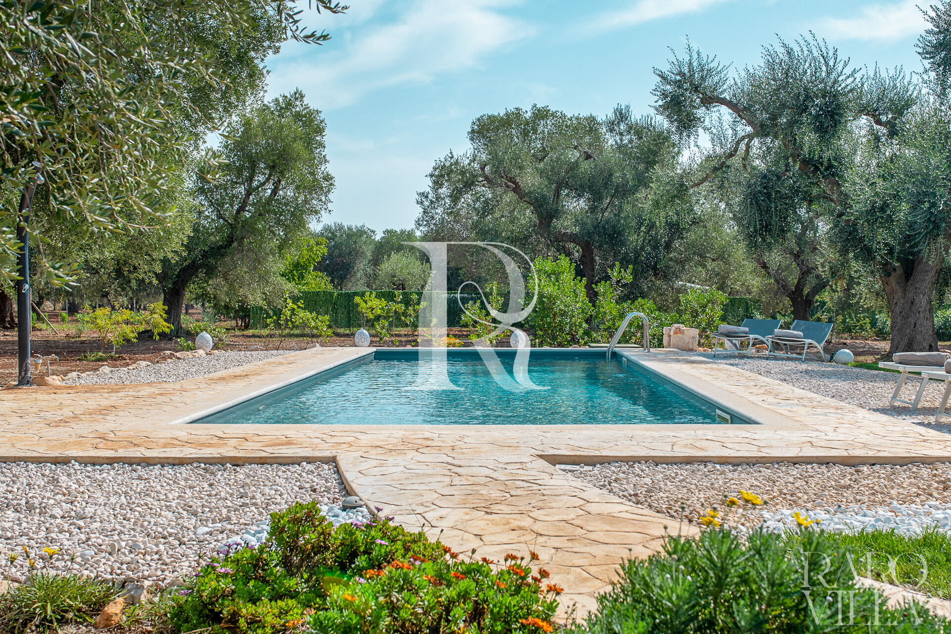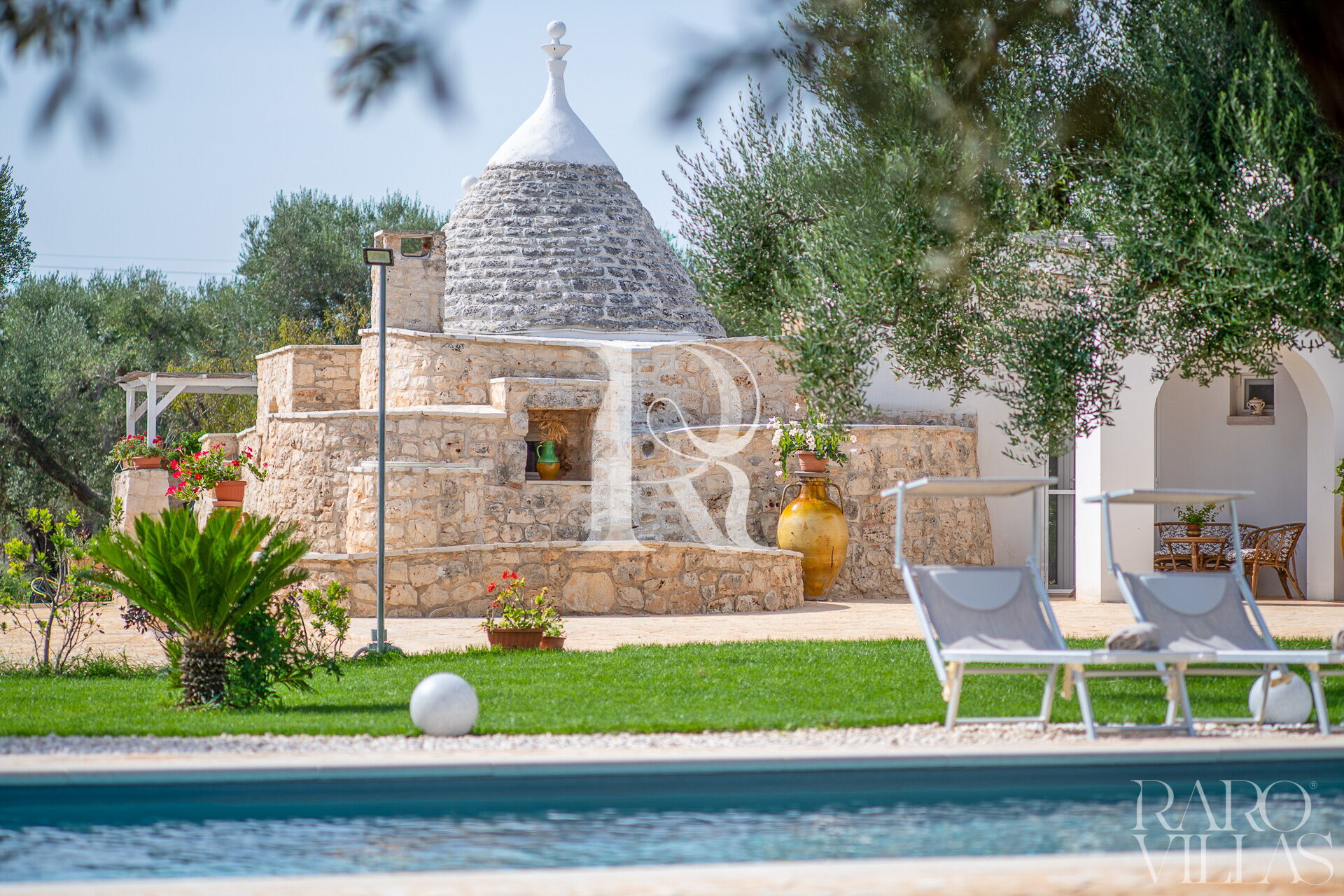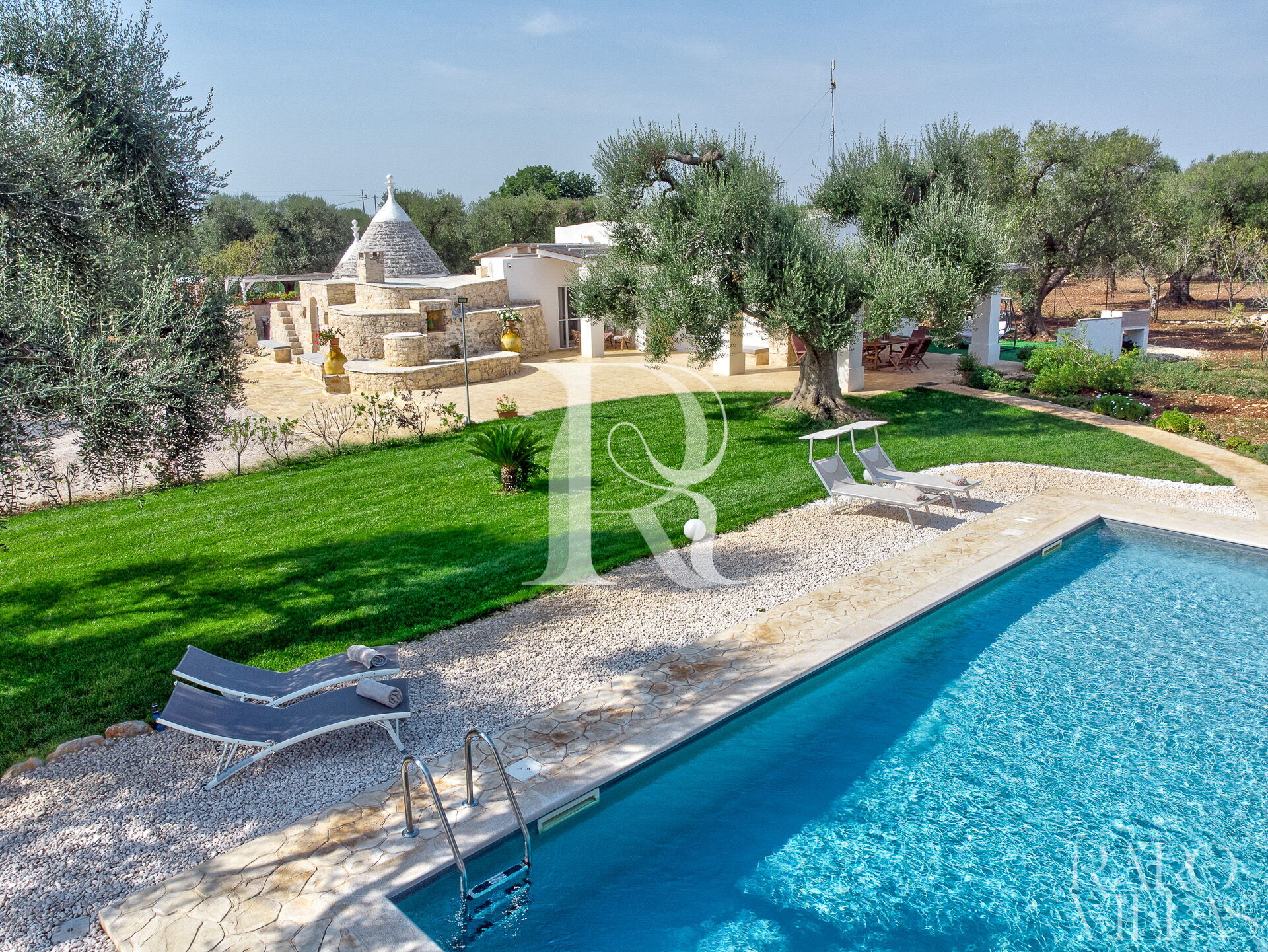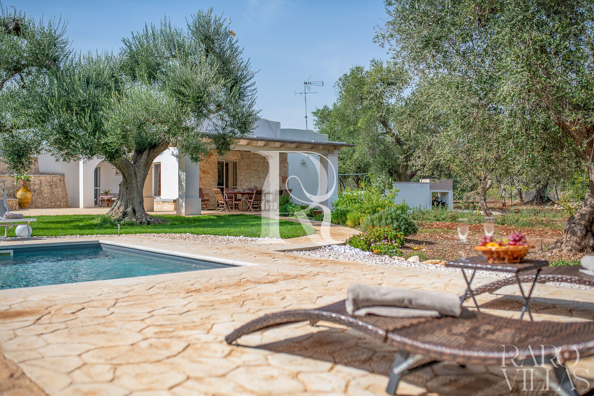 The exterior will make you reconcile with nature: olive trees, garden and there is also a small organic vegetable garden with typical local seasonal vegetables.Surrounded by greenery we have the pool area with solarium where you can relax and sunbathe on comfortable loungers.