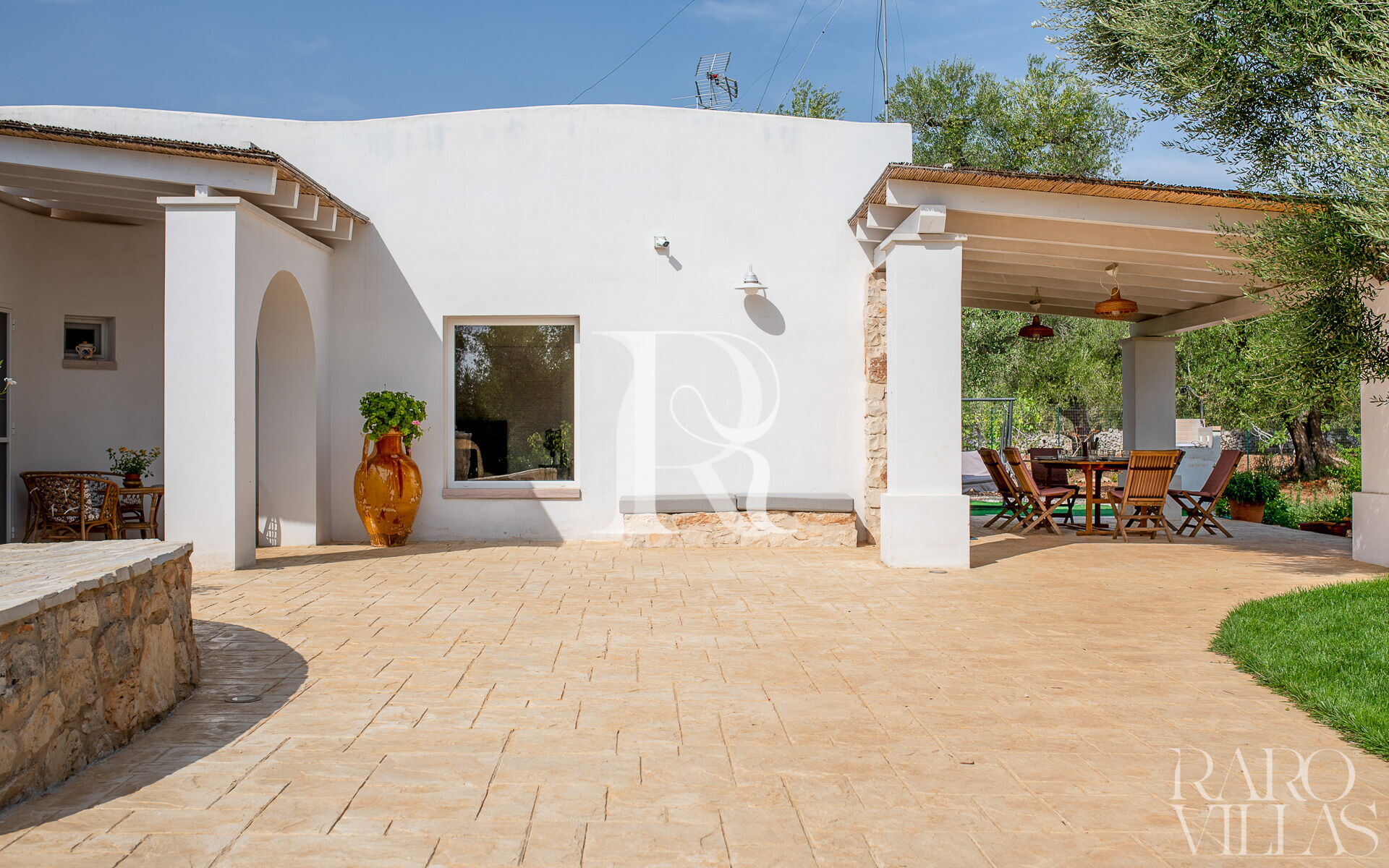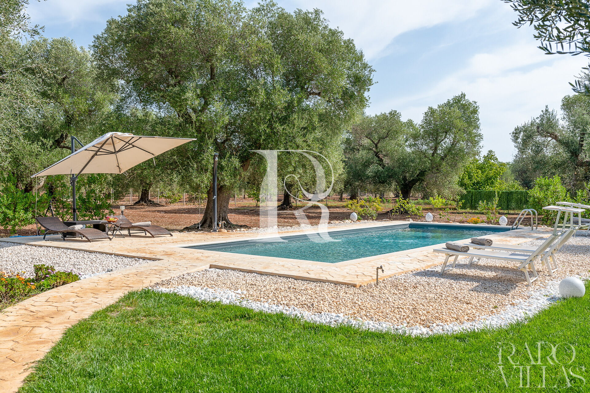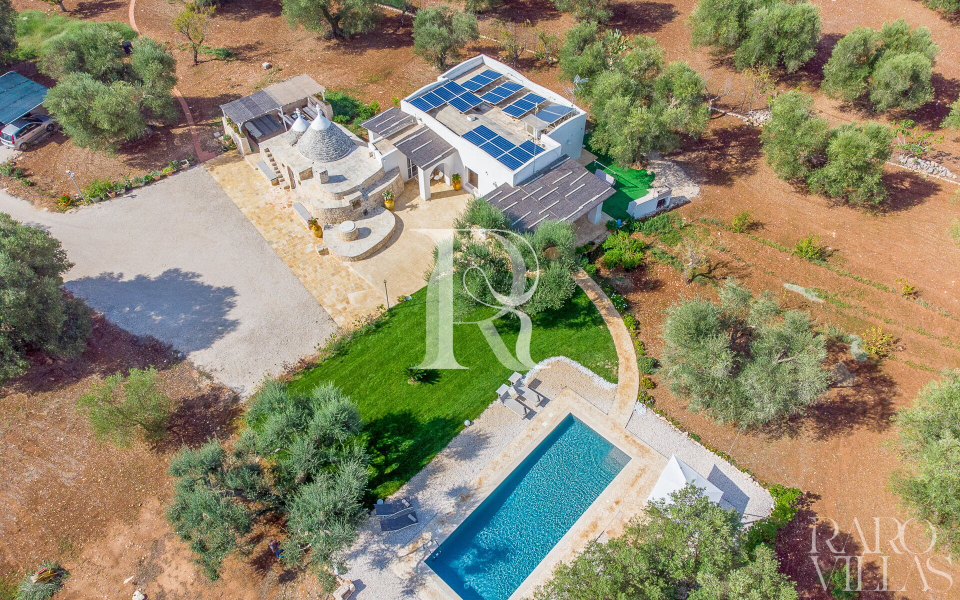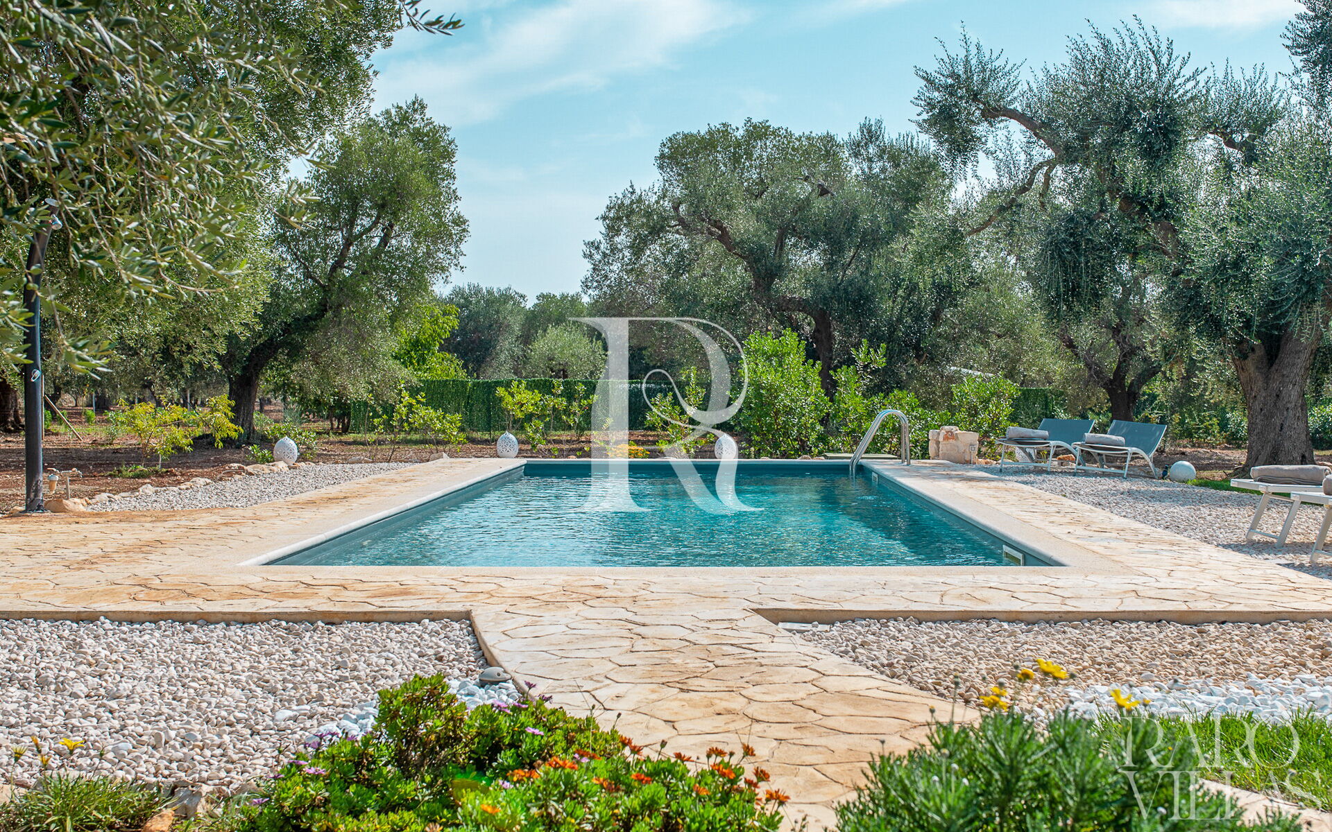 The exterior will make you reconcile with nature: olive trees, garden and there is also a small organic vegetable garden with typical local seasonal vegetables.Surrounded by greenery we have the pool area with solarium where you can relax and sunbathe on comfortable loungers.