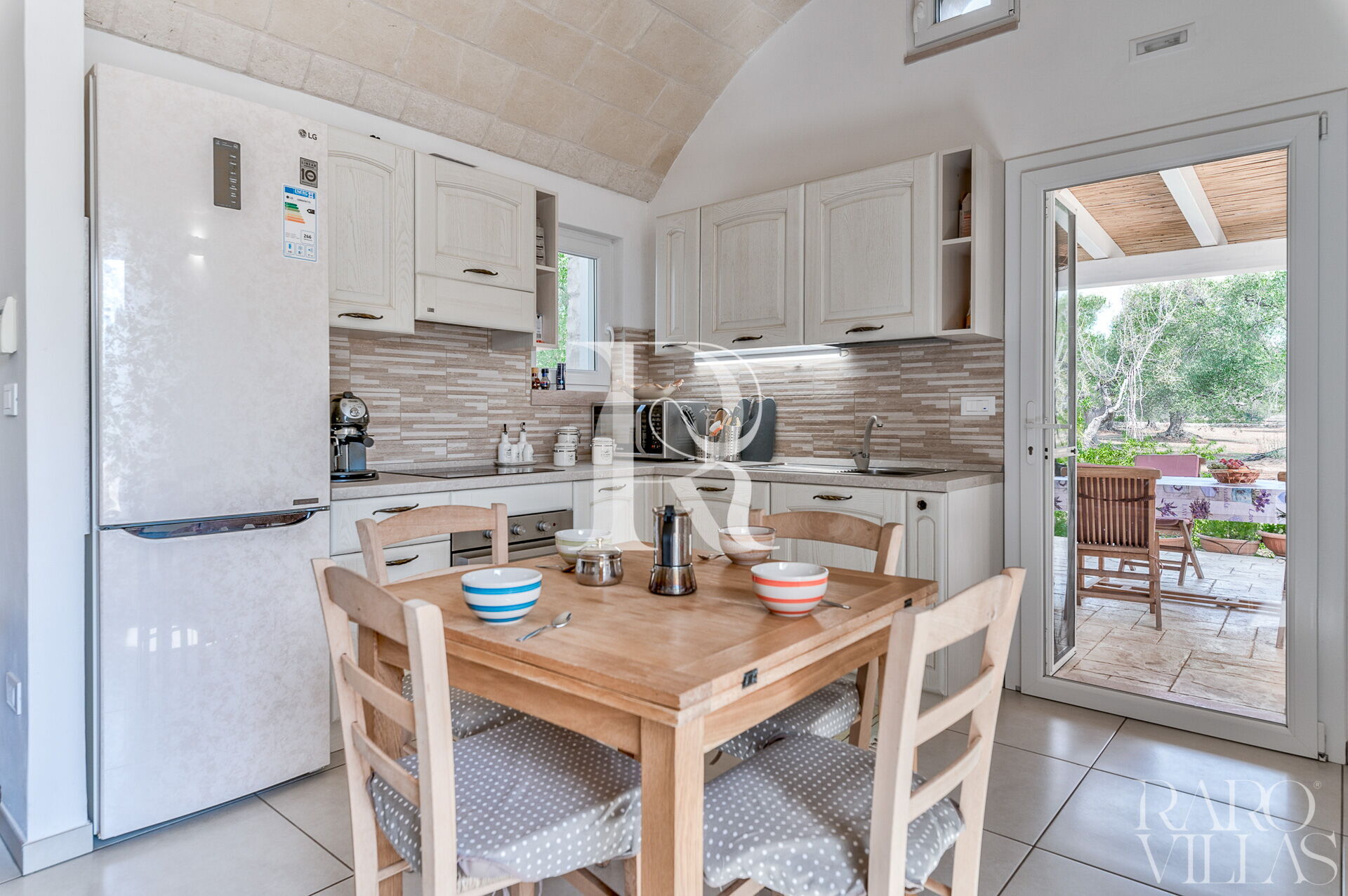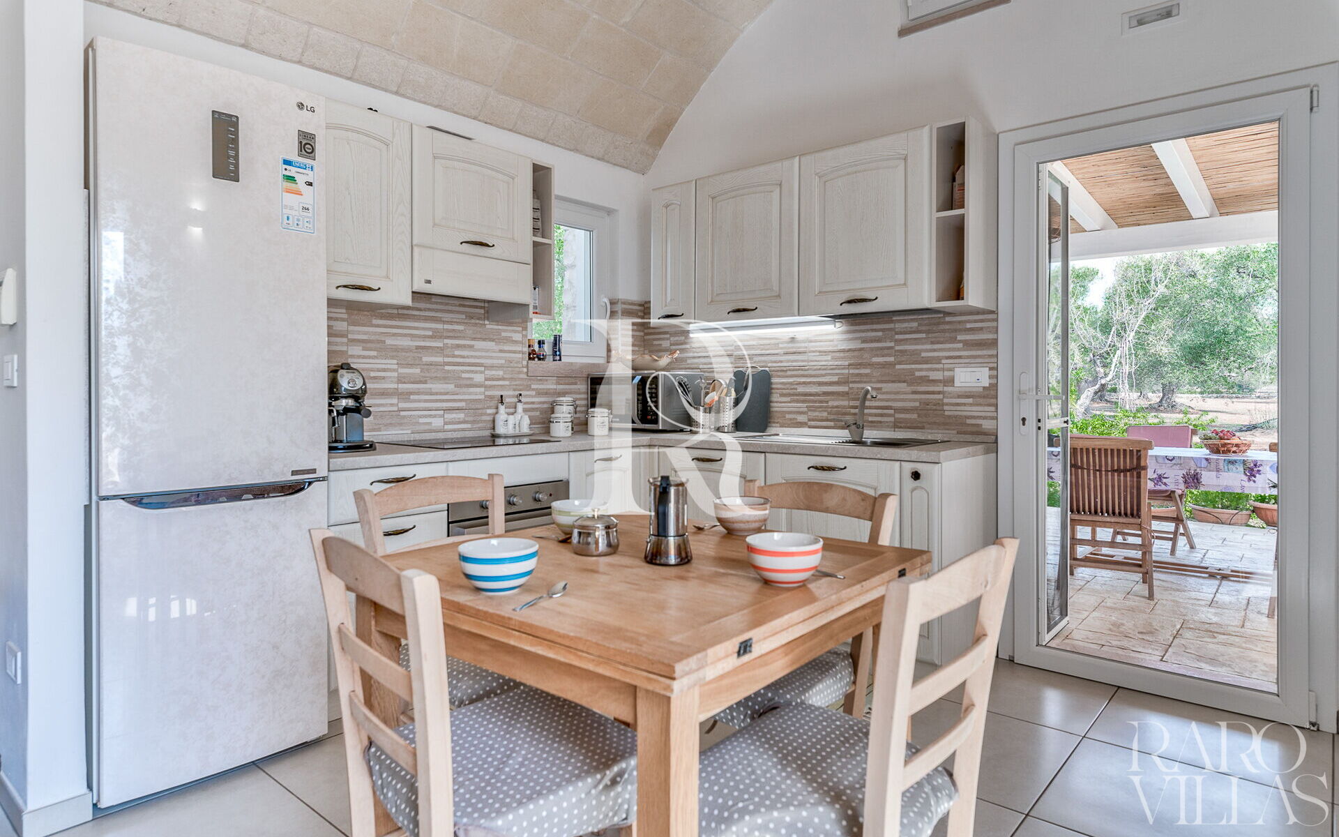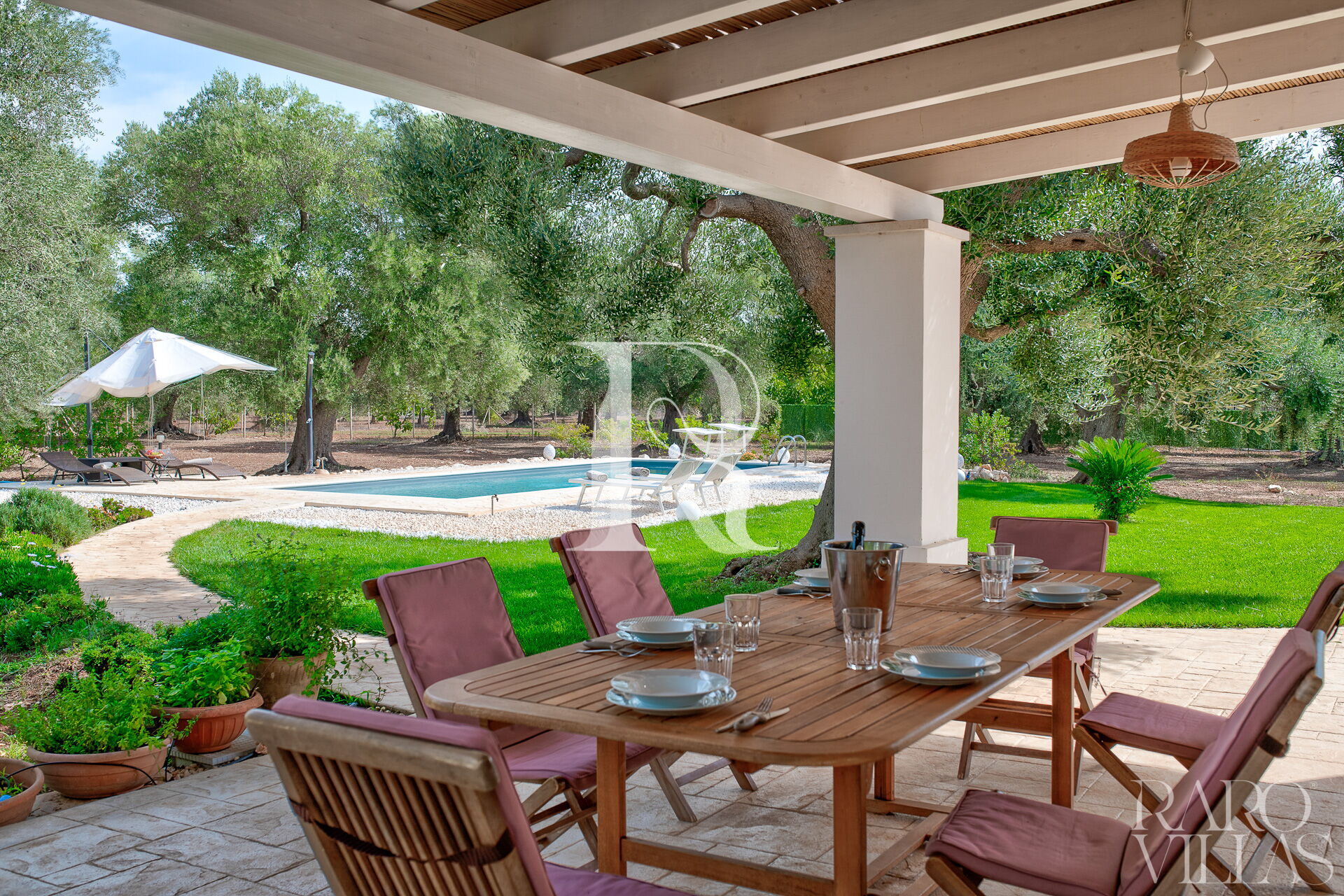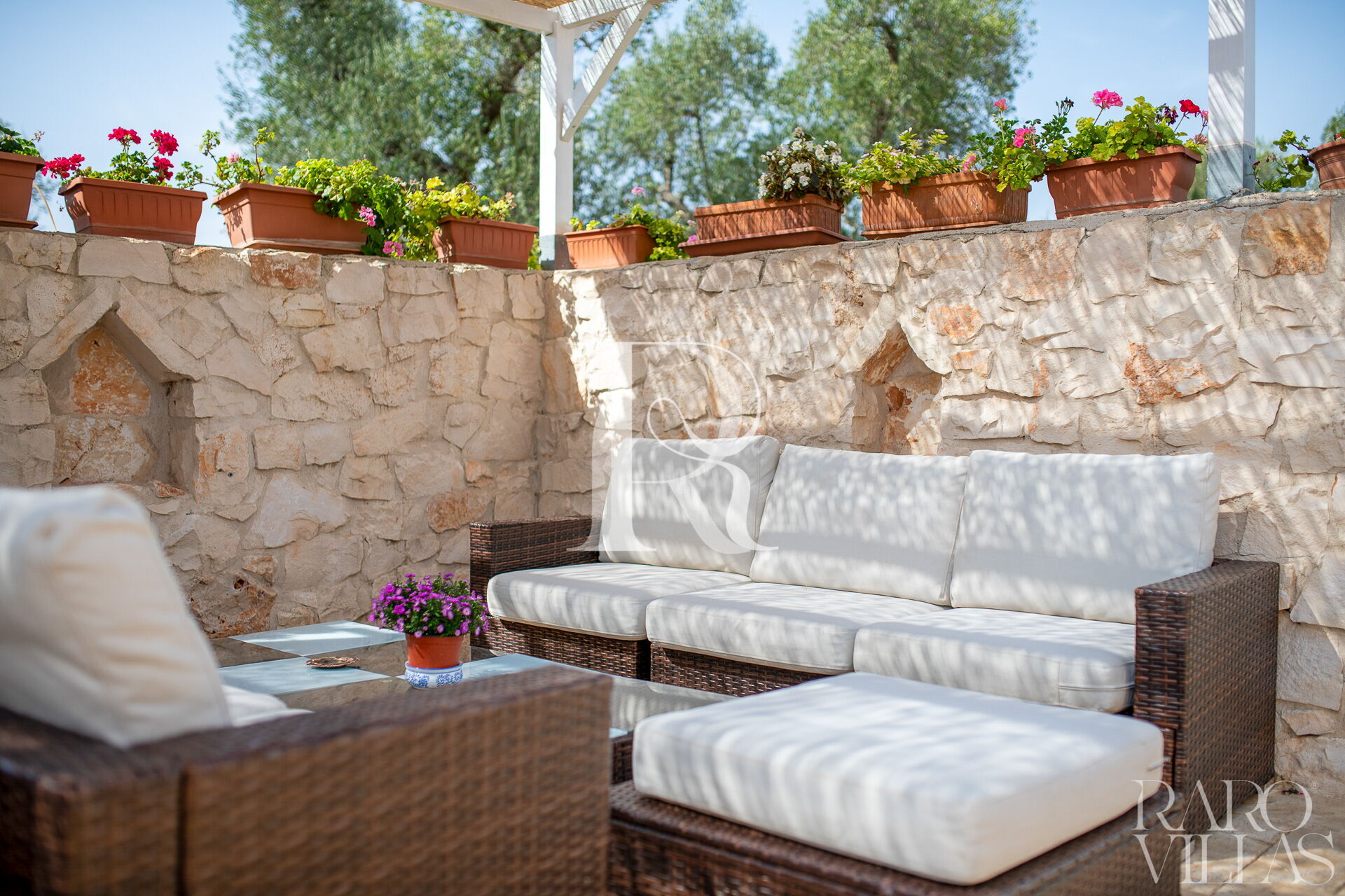 The exterior will make you reconcile with nature: olive trees, garden and there is also a small organic vegetable garden with typical local seasonal vegetables.Surrounded by greenery we have the pool area with solarium where you can relax and sunbathe on comfortable loungers.