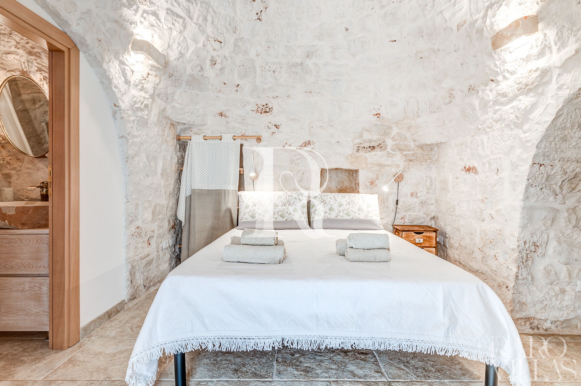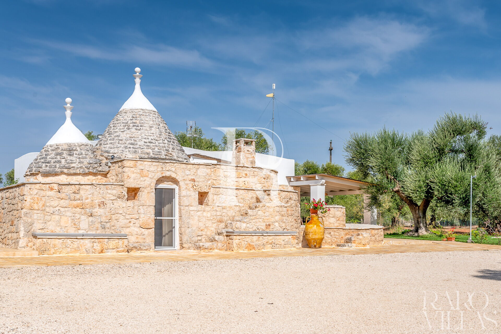 Trullo Sunrise is a typical Apulian Villa for rent with a private swimming pool immersed in the Itria Valley. The 3 bedrooms with en suite bathrooms, can accommodate up to 7 people.