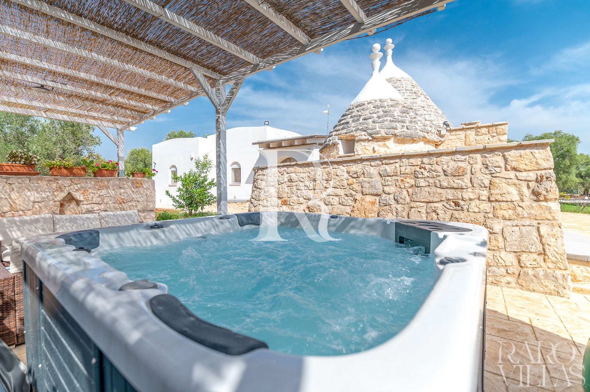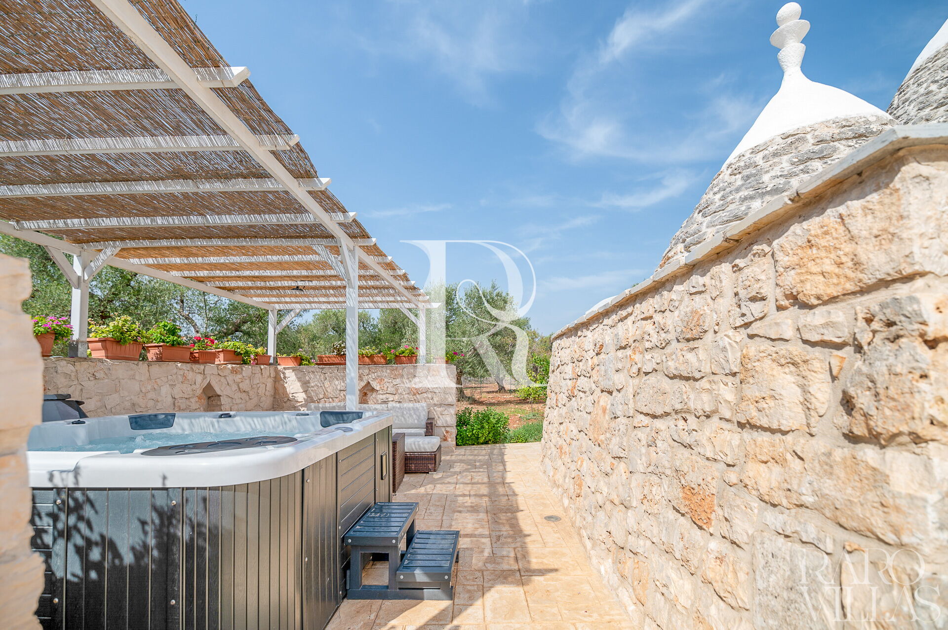 Trullo Sunrise is a typical dwelling with salt water swimming pool surrounded by the greenery of the Valle d’Itria, between San Vito dei Normanni and San Michele Salentino.
