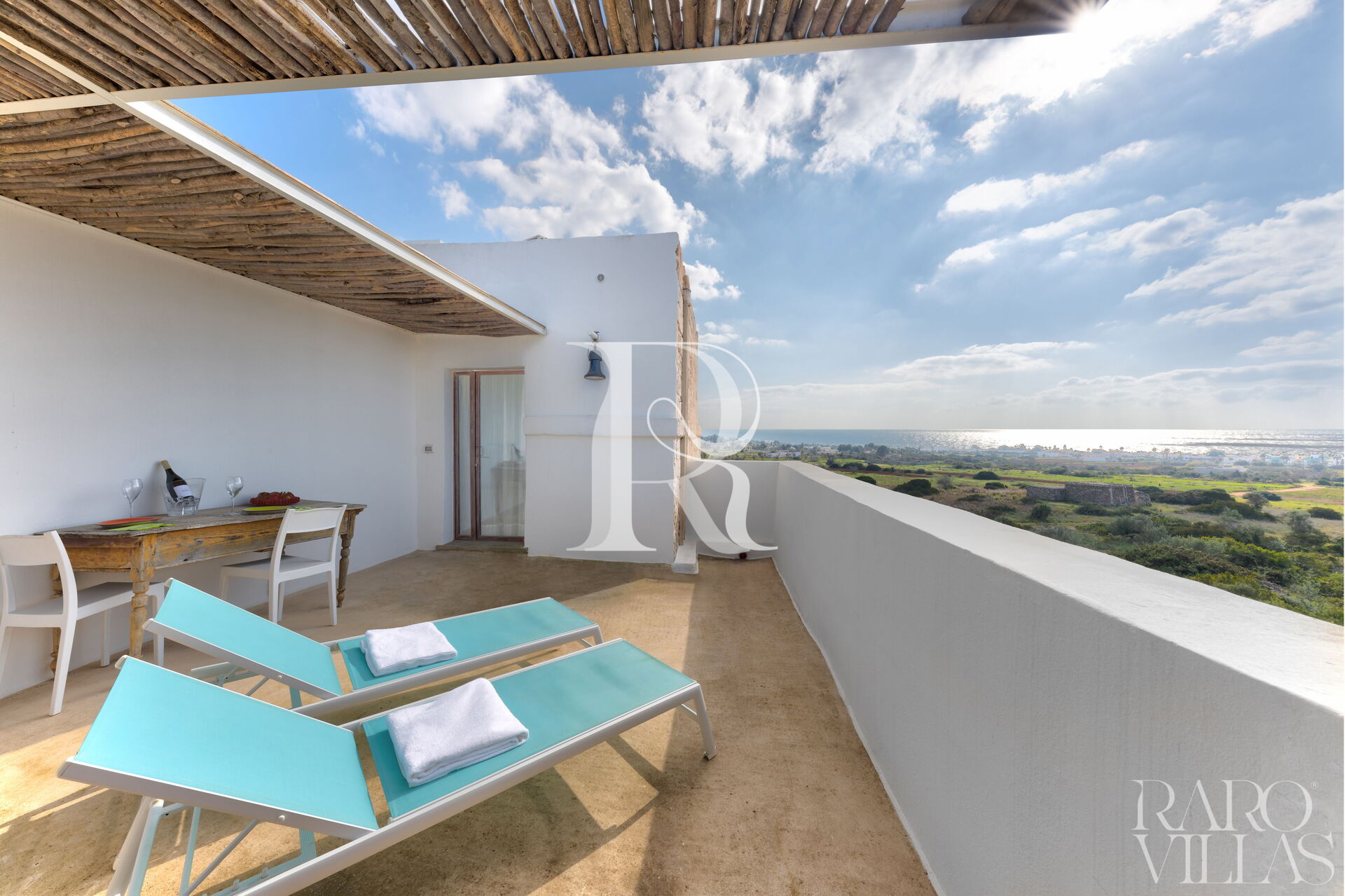 The suite dominates the surrounding landscape from a privileged position, accessed by side staircase.