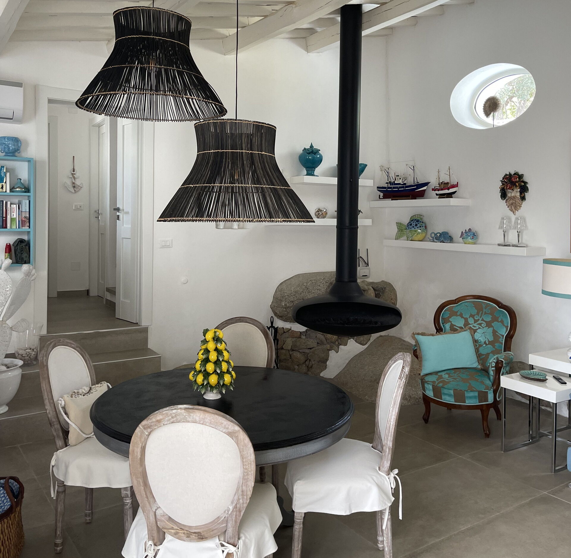 Living room: sofa (people: 4), armchair, fireplace, dining table (people: 6), WIFI internet, WIFI internet, air conditioning, exit to the patio.