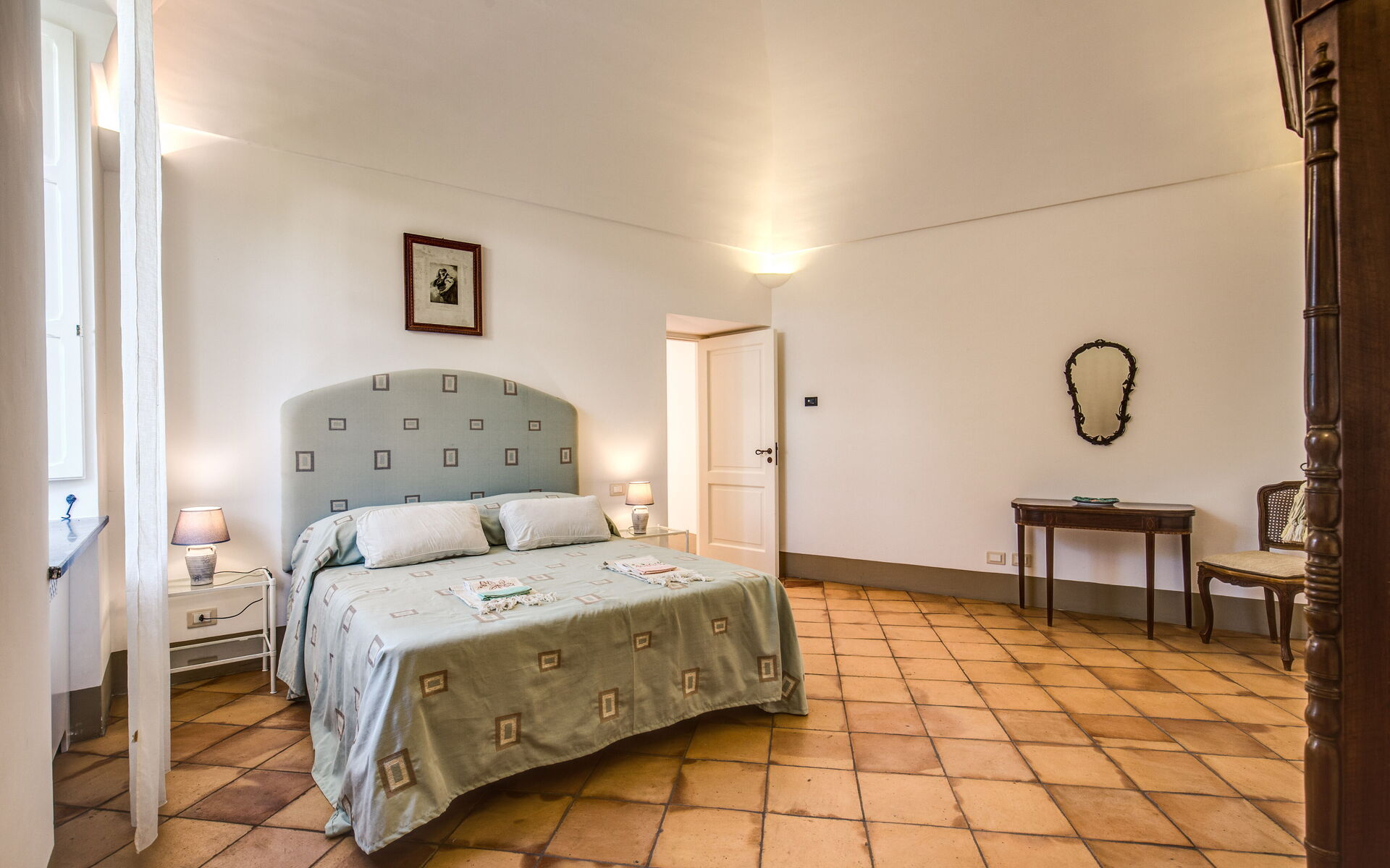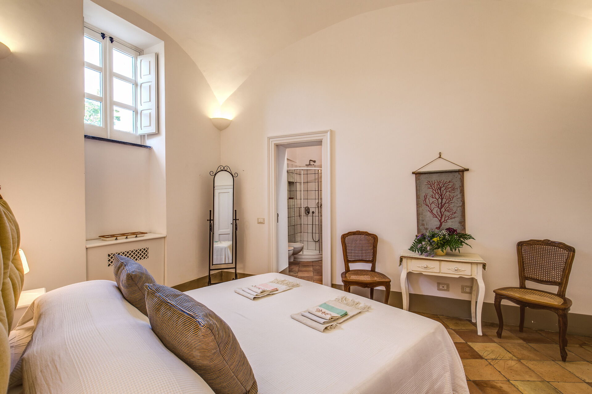 Bedroom + Ensuite Bathroom: double bed, WIFI internet, air conditioning, basin, toilet, bidet, shower, hairdryer, exit to the terrace.