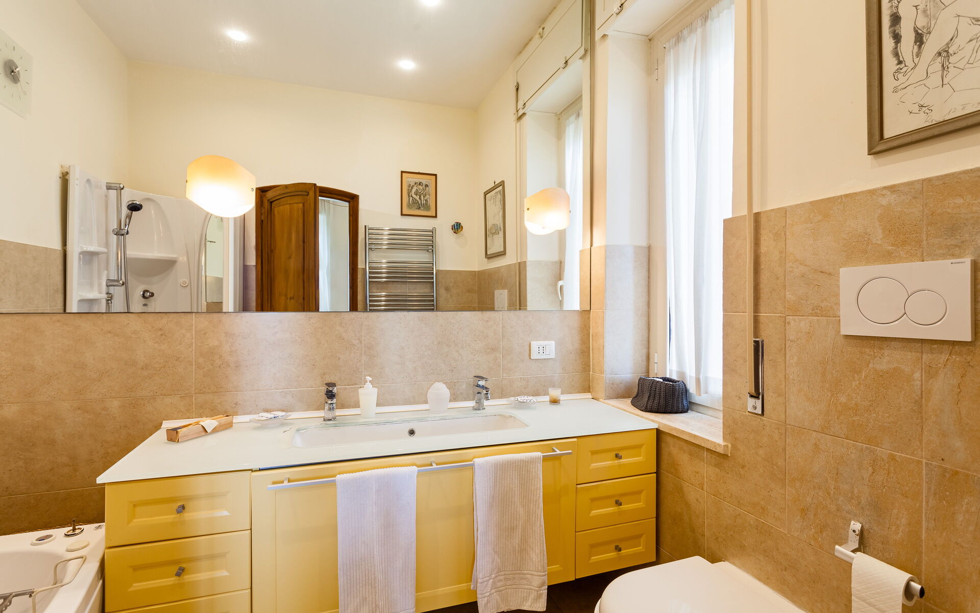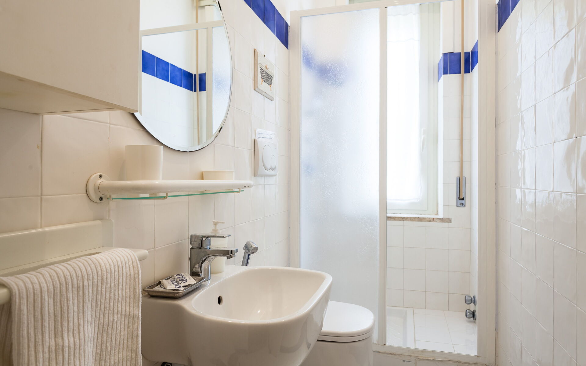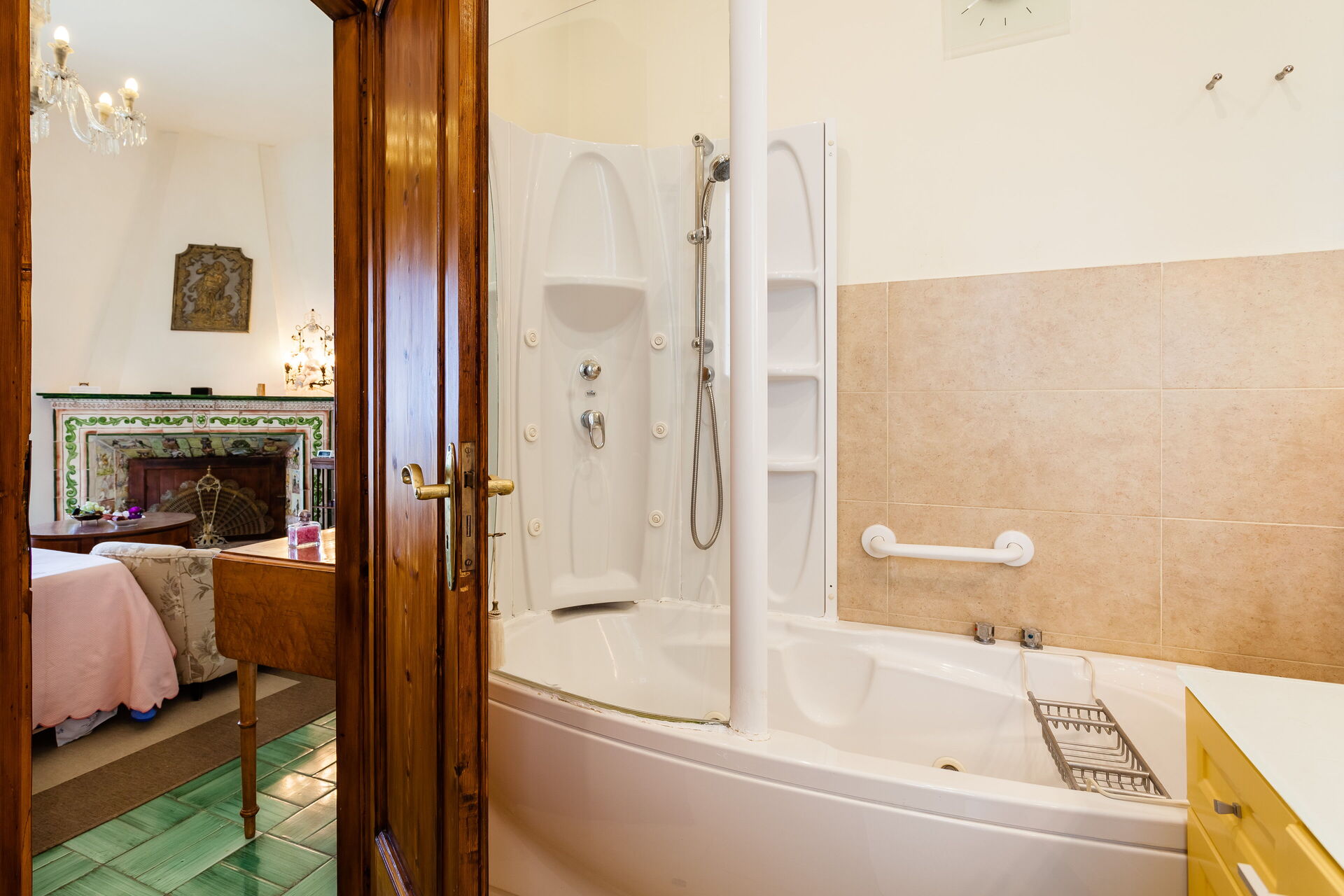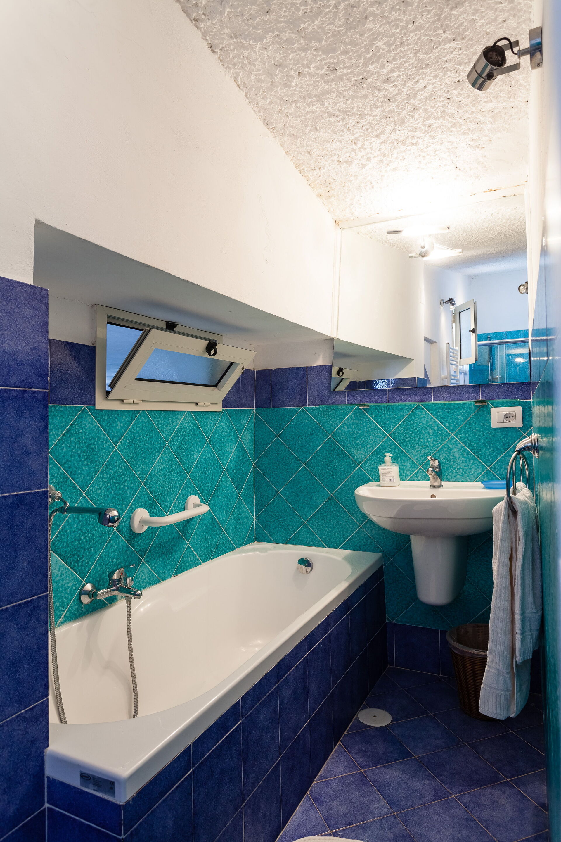 Bedroom + Ensuite Bathroom: double bed, two single beds, WIFI internet, air conditioning, television, working desk, fridge, basin, toilet, bidet, bathtub, shower, hairdryer, exit to the garden.