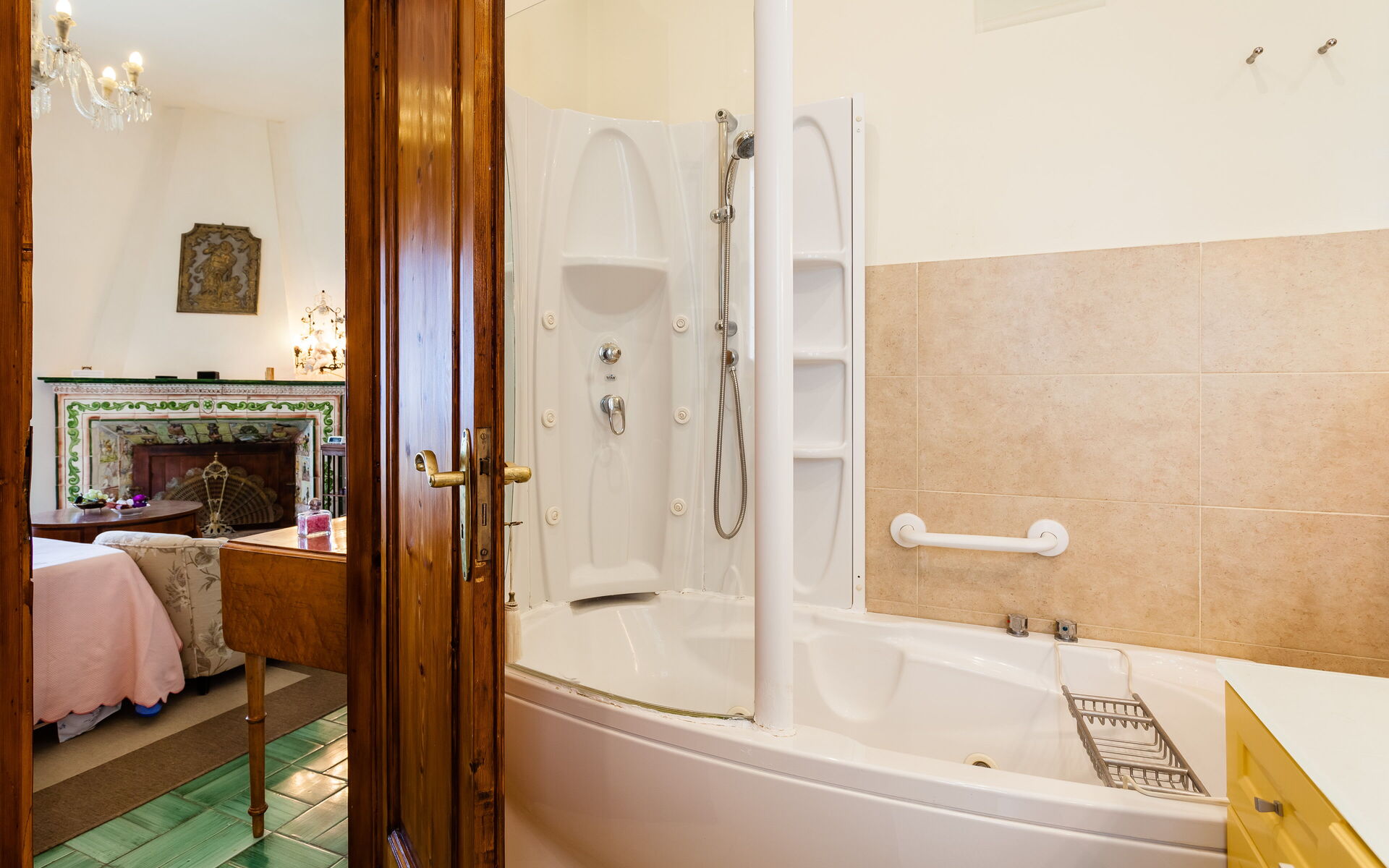 Bedroom + Ensuite Bathroom 1: double bed, WIFI internet, air conditioning, television, working desk, whirlpool bathtub, basin, toilet, bidet, shower, hairdryer, exit to the terrace.