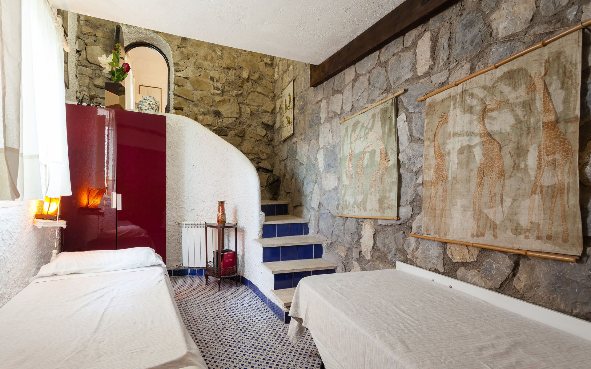 Bedroom 2: two single beds, WIFI internet, air conditioning, television, armchair, exit to the terrace.