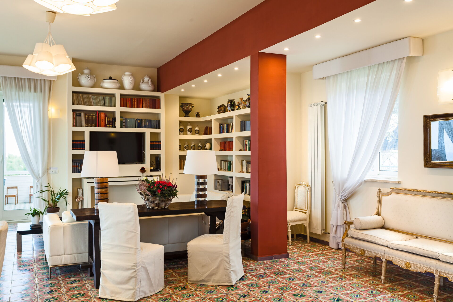 When you arrive you’ll find a lovely clean well-maintained property with views of the mountains and the sea perfect for a peaceful vacation in Campania. Regardless of how you spend your days - visiting museums, sightseeing, shopping or just driving in the countryside, when you arrive home you can unwind with your family and friends at the pool for a perfect ending to another day in Campania. Outside you will also find a patio, barbecue grill and playground. Sharing a meal with friends and family is a big part of the Italian culture. Take advantage of the well-equipped kitchen to prepare meals using local produce while on your vacation. The kitchen includes coffee machine, microwave, toaster and refrigerator, as well as, plenty of tableware and cutlery for up to 16 people. Dine 'al fresco' like a real Italian, the fully furnished veranda is the perfect setting to enjoy food, family and the beautiful Italian weather.