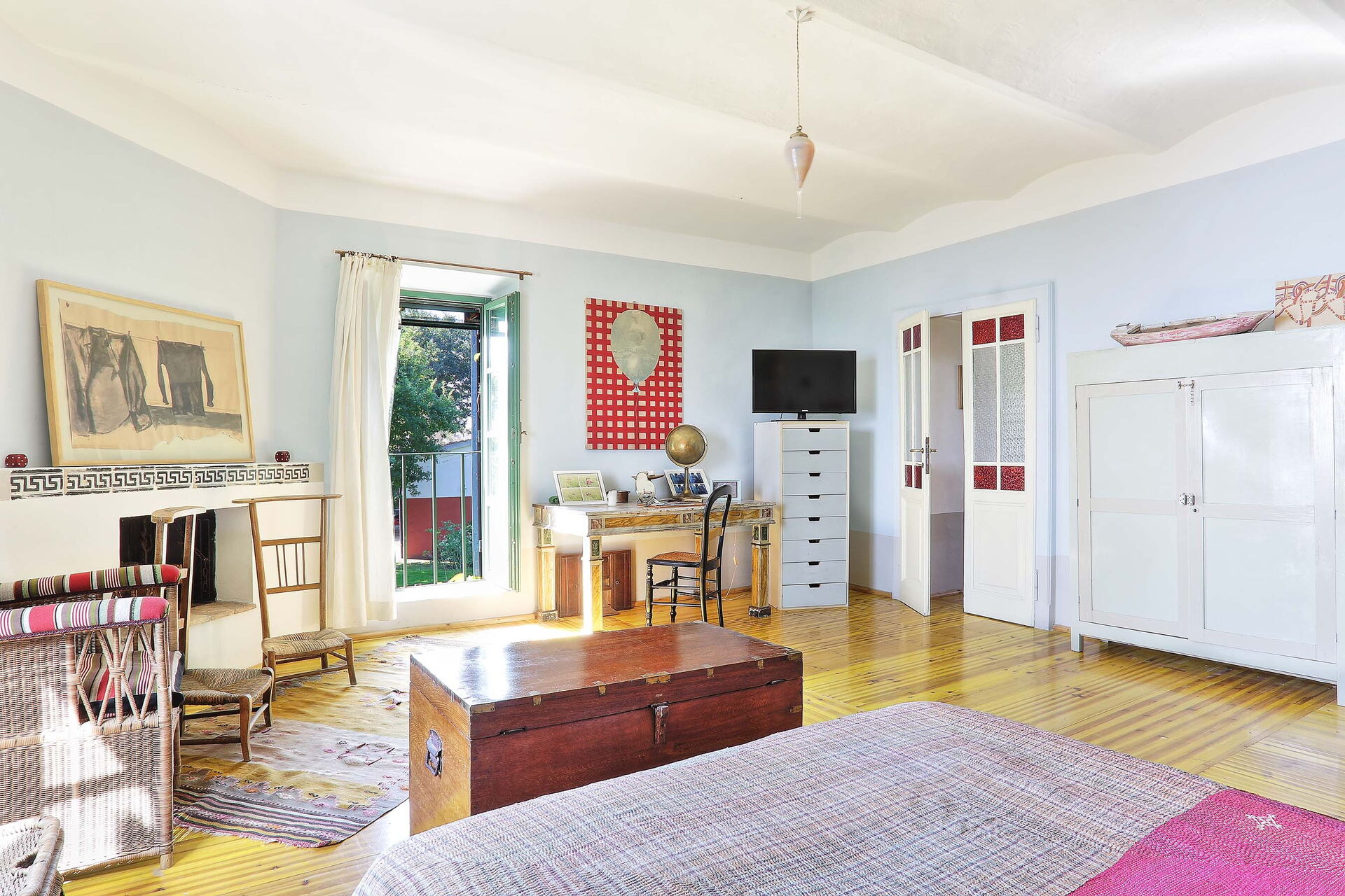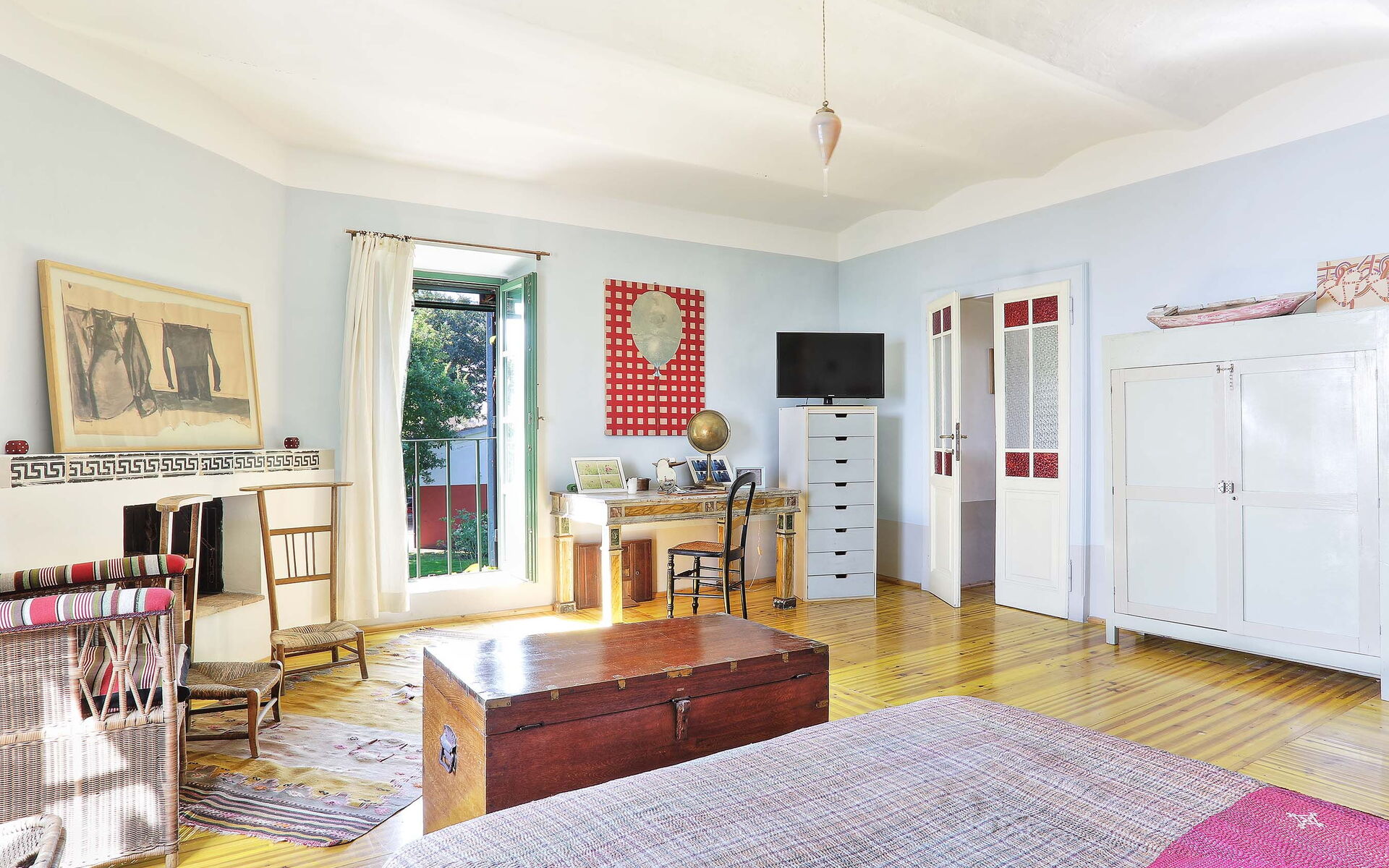 Bedroom 1: double bed, mosquito net, portable fan, armchair, working desk.