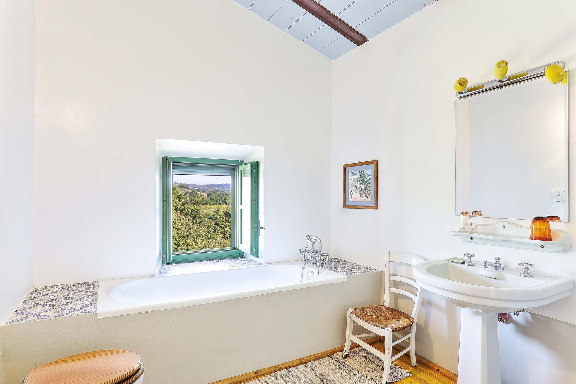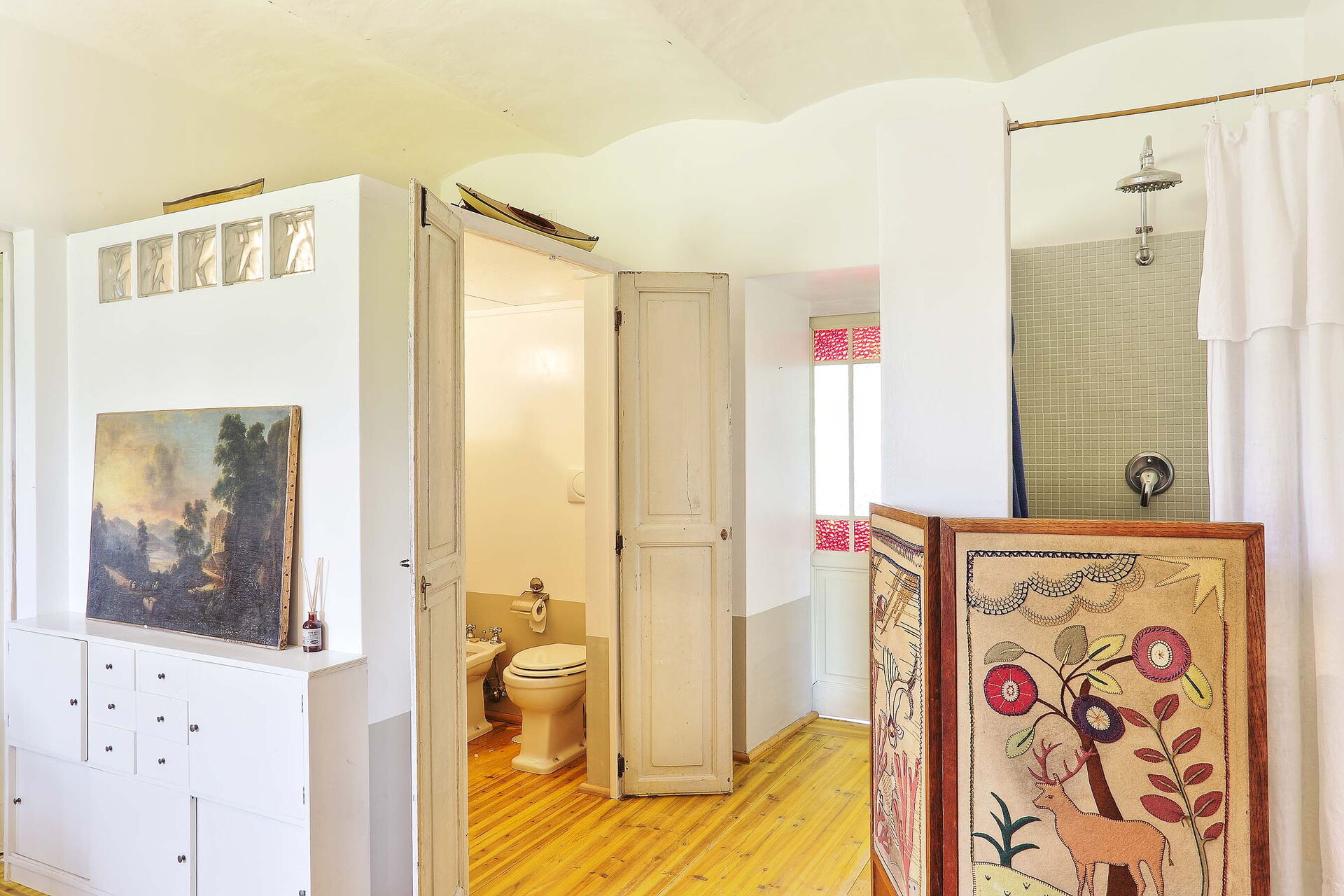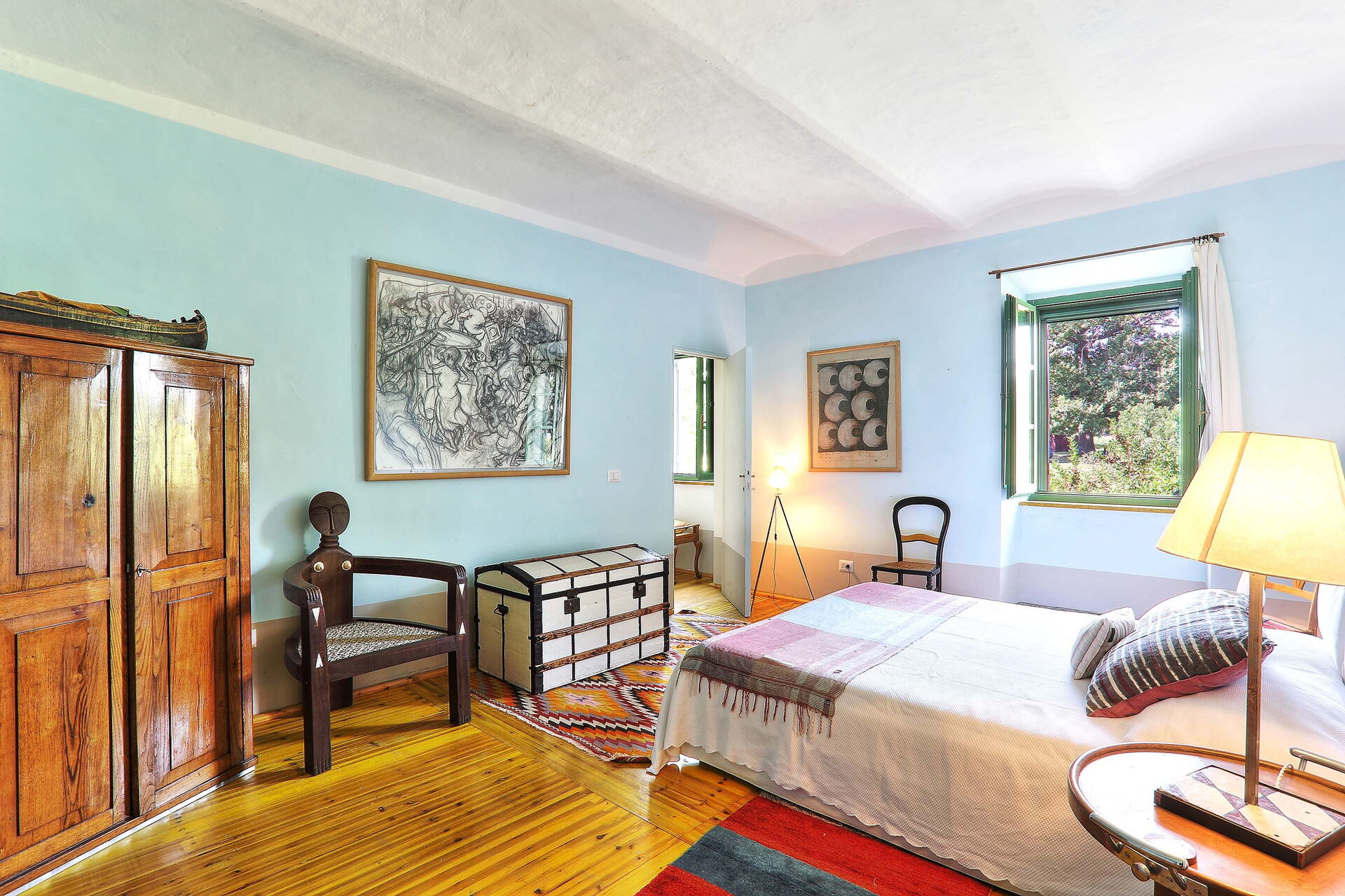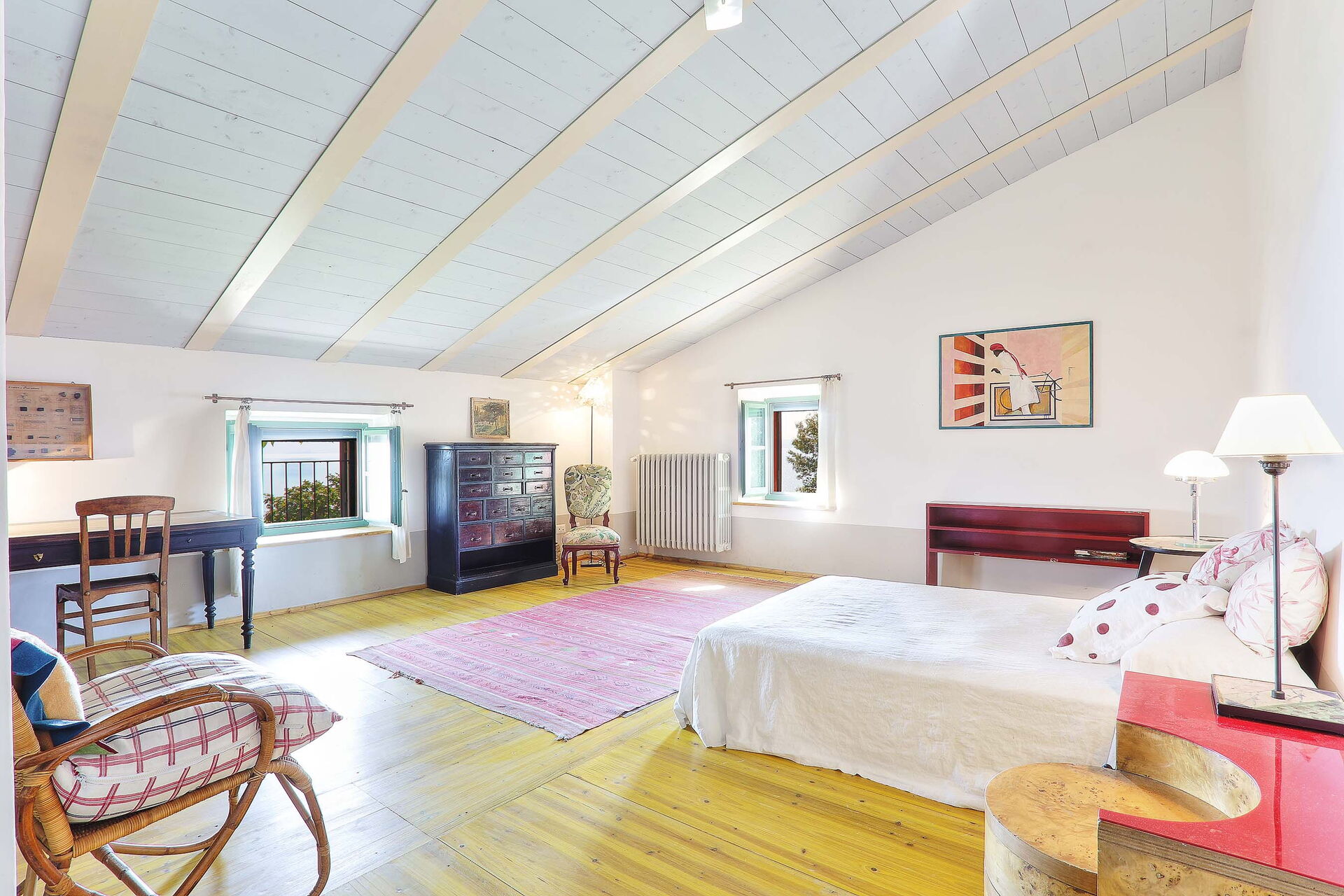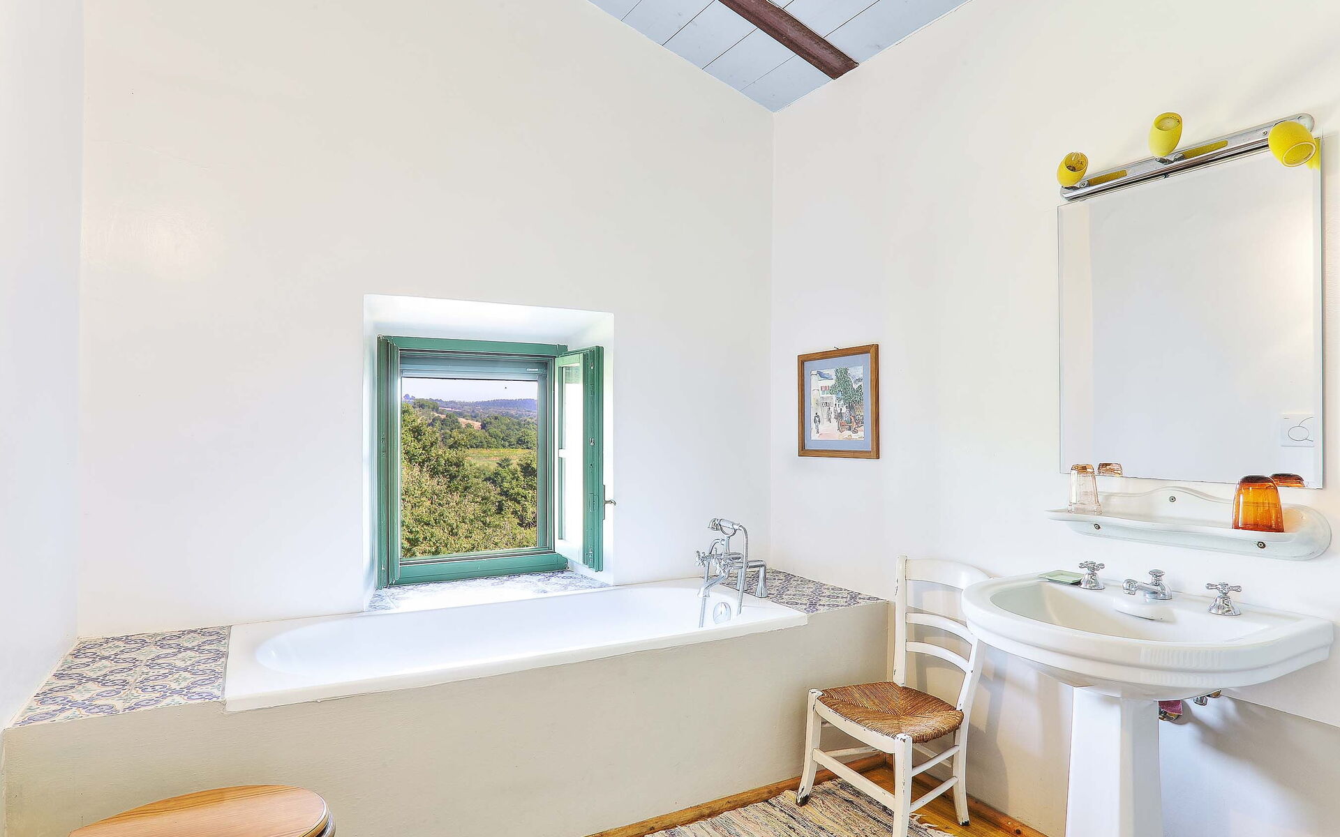 Bedroom + Ensuite Bathroom 1: double bed (width: 140m), WIFI internet, mosquito net, satellite tv, portable fan, armchair, working desk, fireplace, basin, toilet, bidet, bathtub, shower, hairdryer.