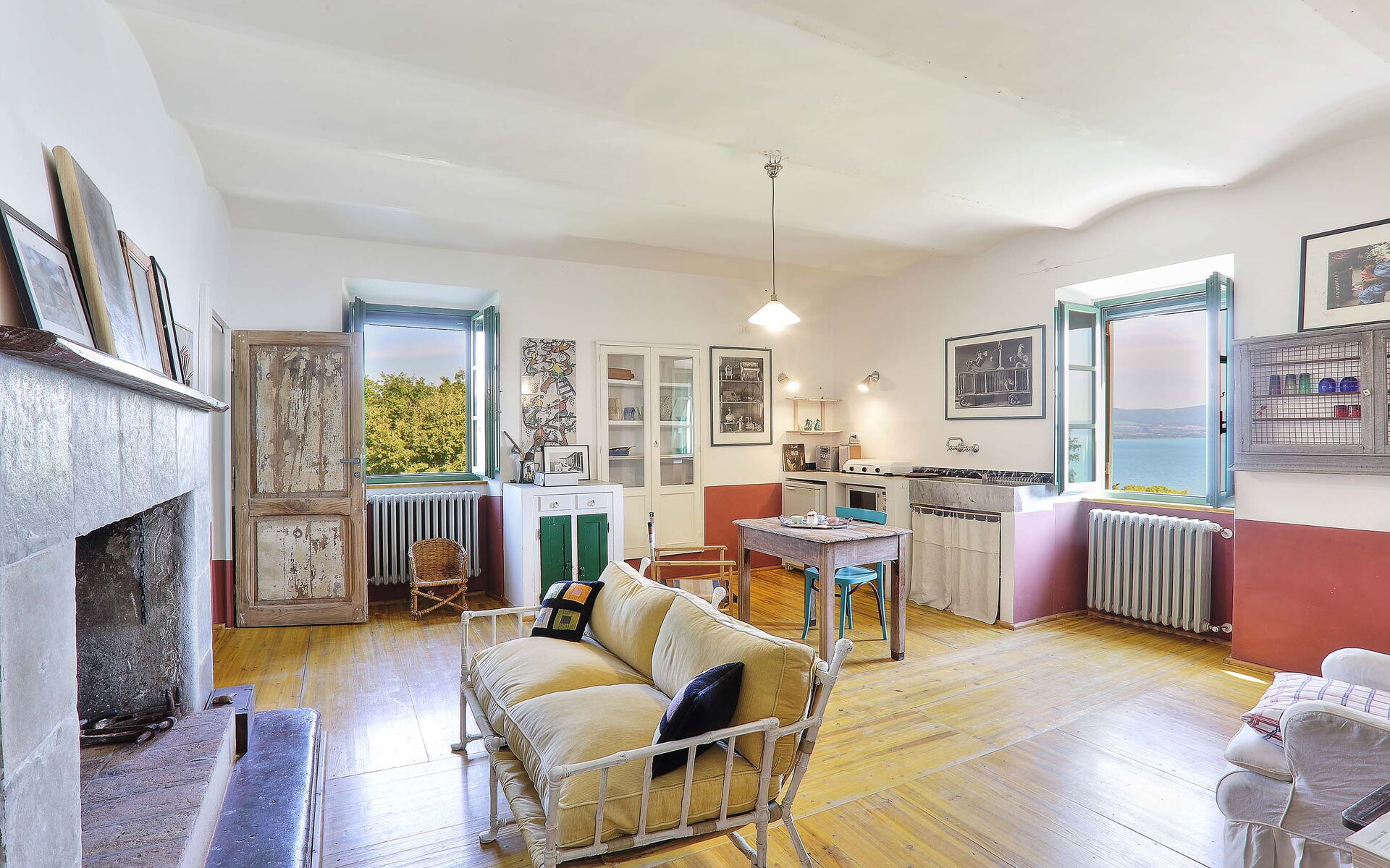 Kitchen + living room: dining table, fridge, stove top, oven, italian coffee machine, fireplace, WIFI internet.