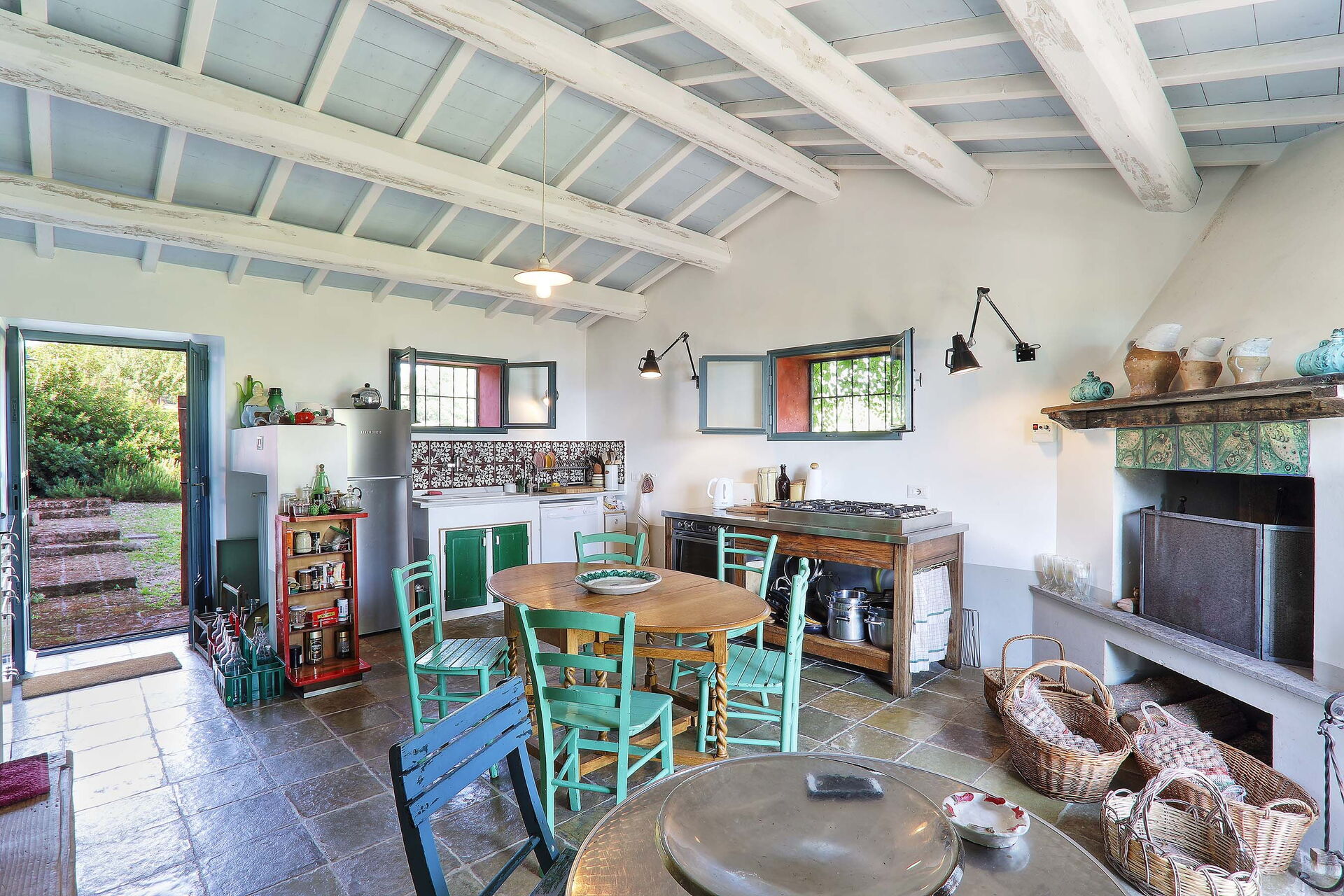 Kitchen: two dining tables, dining table, dishwasher, dishwasher, fridge, fridge, stove top, stove top, oven, oven, toaster, toaster, italian coffee machine, italian coffee machine, american coffee machine, fireplace, fireplace, WIFI internet, WIFI internet, highchair, highchair, exit to the garden, exit to the garden, exit to the veranda, exit to the veranda.