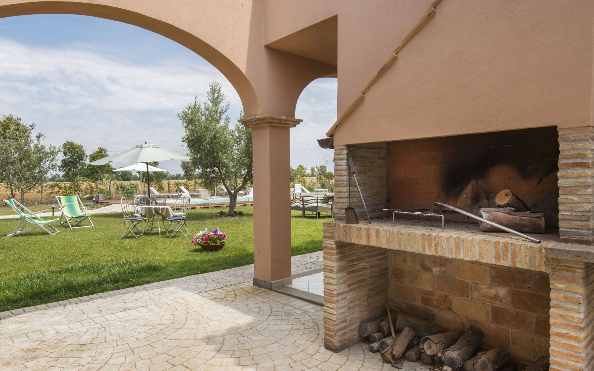 Kitchen + living room: well equipped kitchen, dining table (people: 26), fridge, freezer, oven, fireplace, air conditioning, satellite tv, exit to the garden.