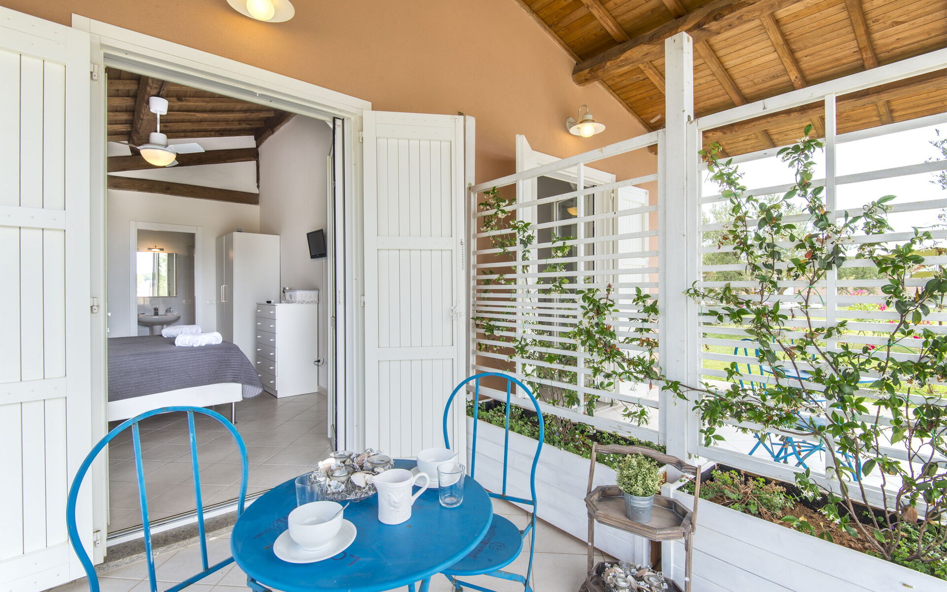 Bedroom + Ensuite Bathroom 6: double bed, air conditioning, mosquito net, satellite tv, ceiling fan, handicap ok, basin, toilet, shower, exit to the garden.