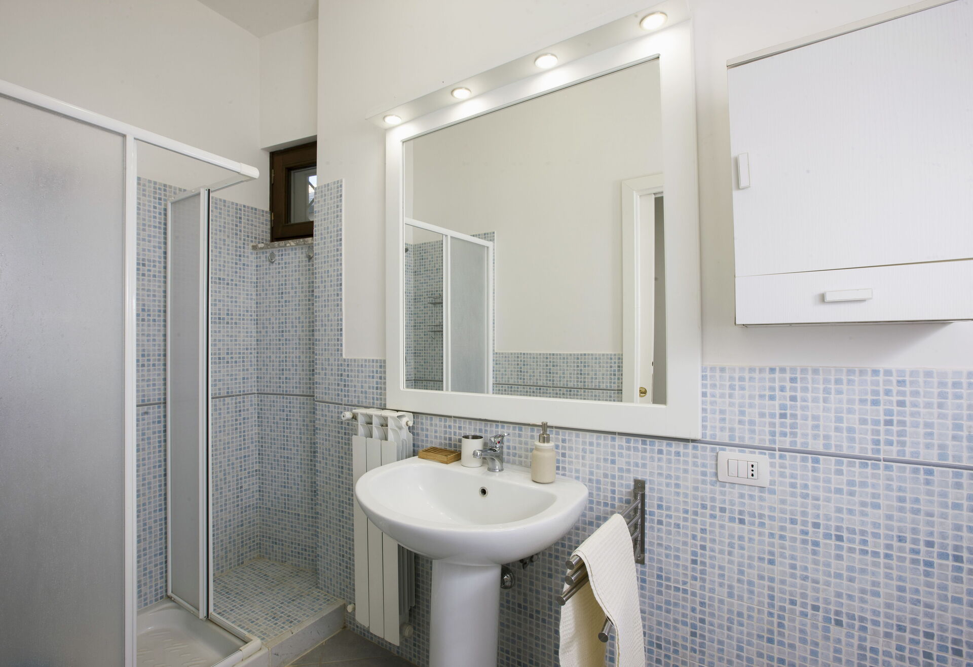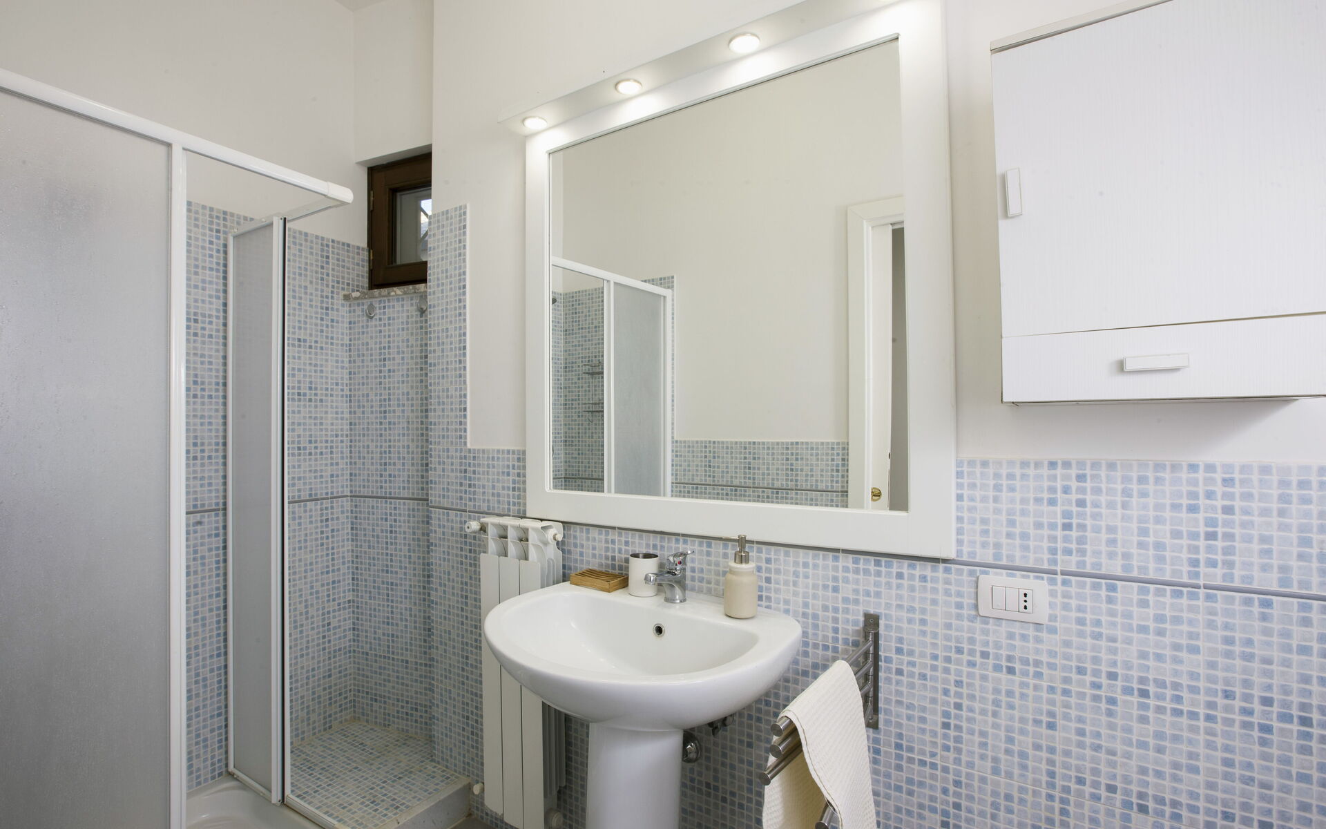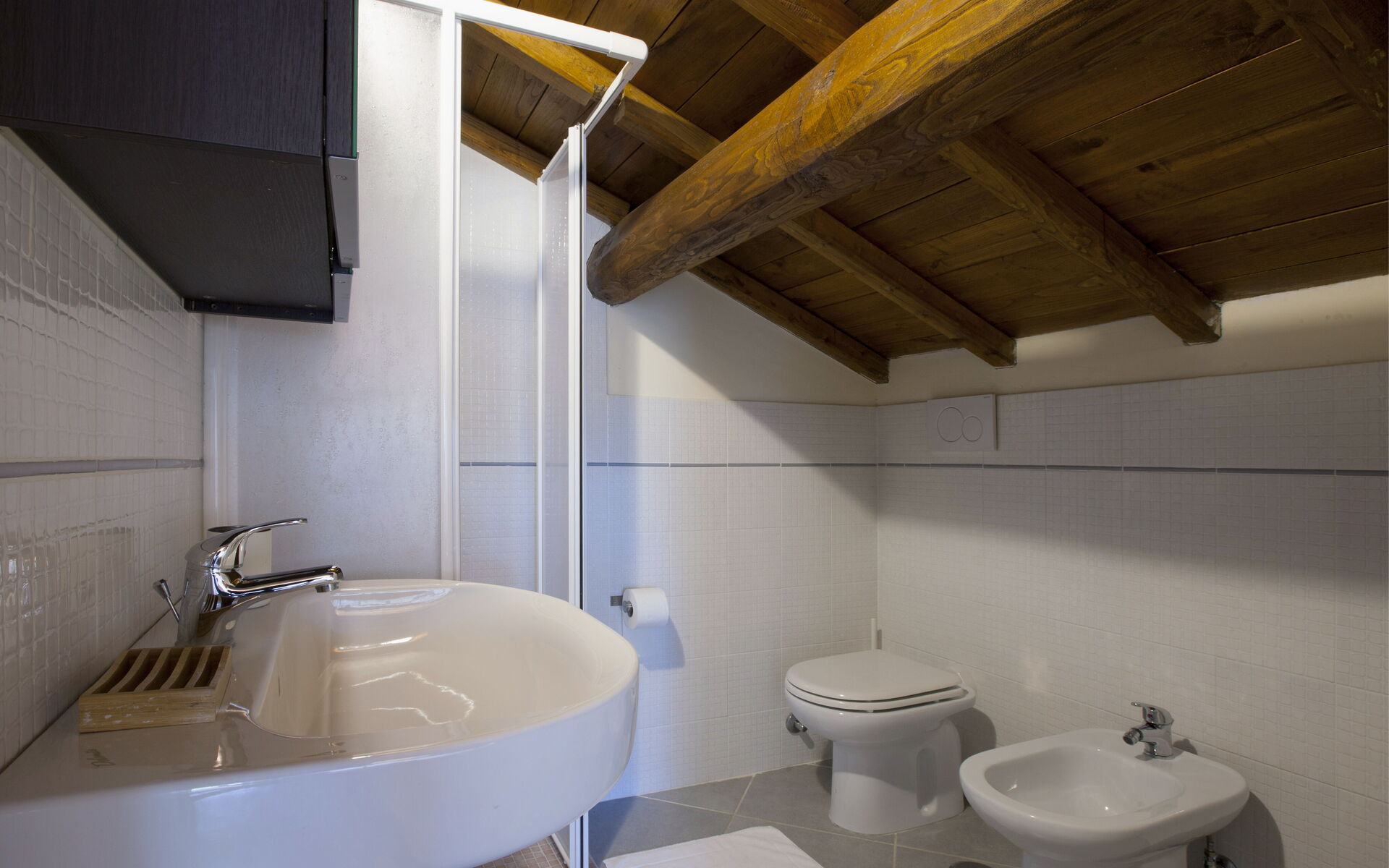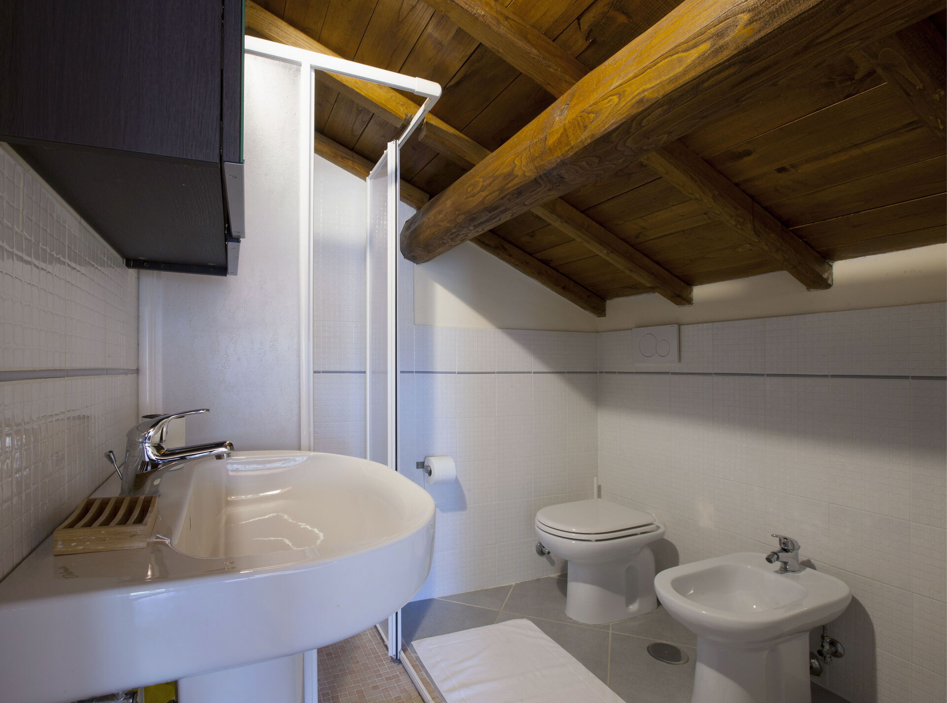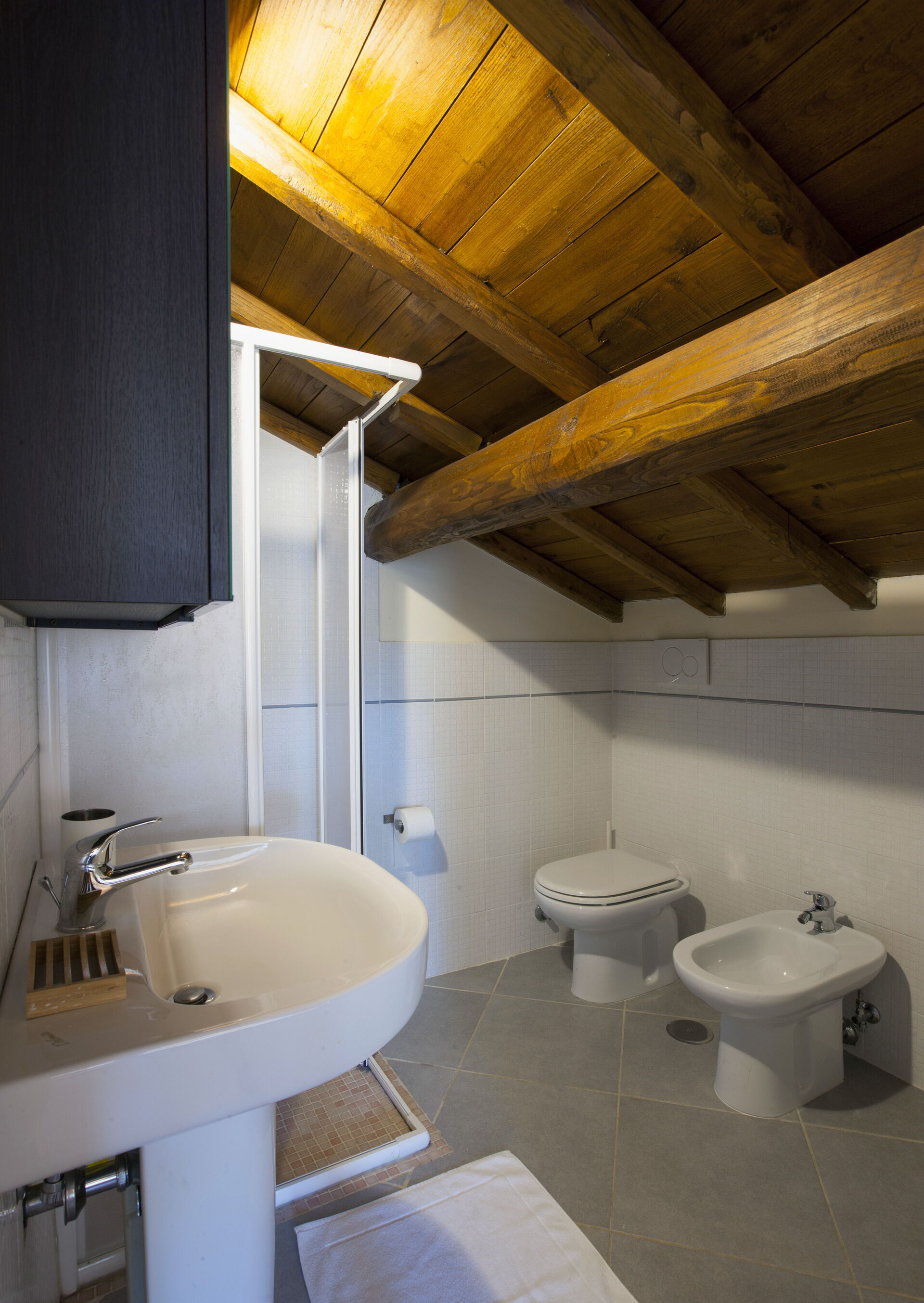 Bathroom: basin, toilet, bidet, shower.