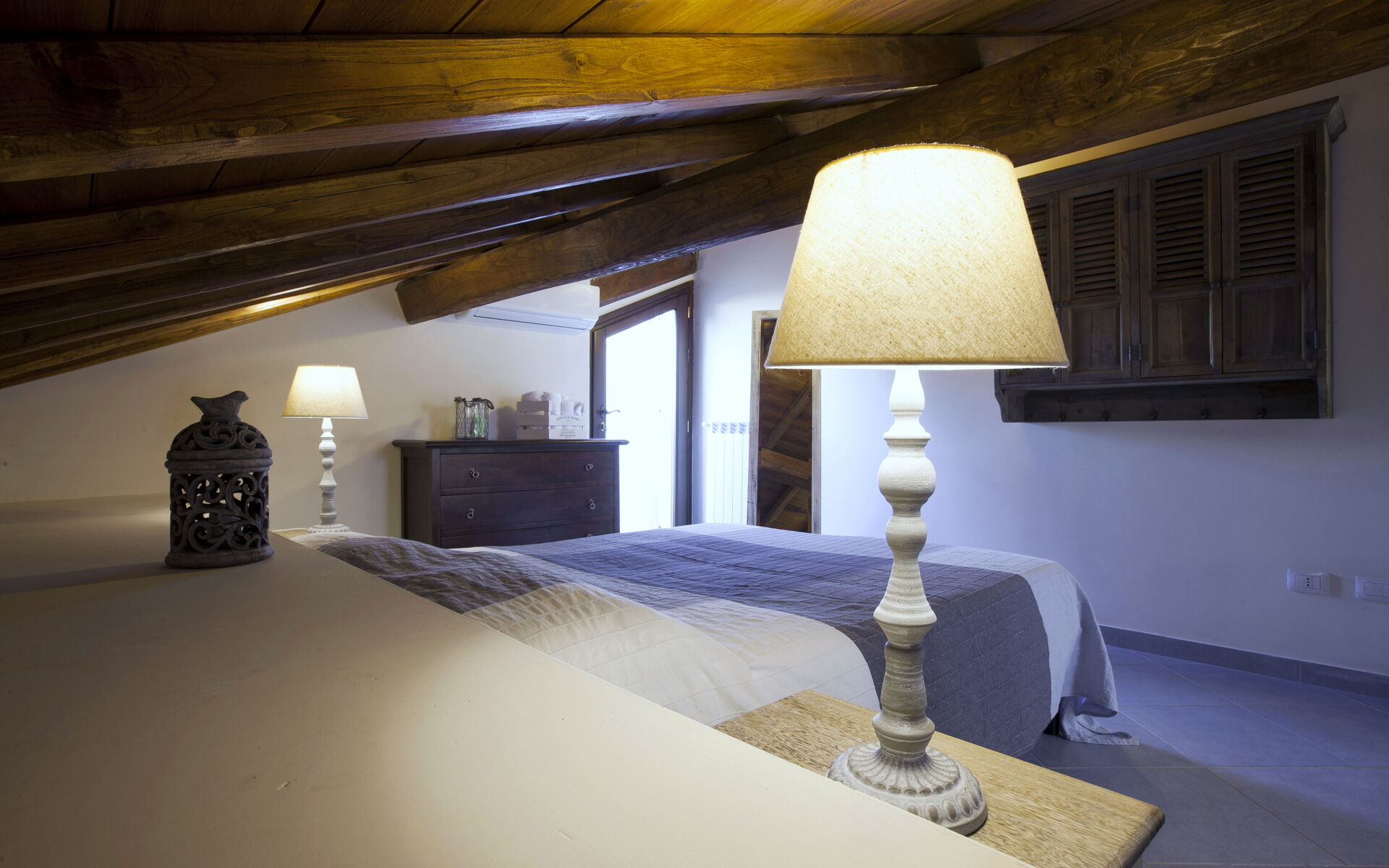 Bedroom + Ensuite Bathroom: double bed, WIFI internet, air conditioning, basin, toilet, shower.