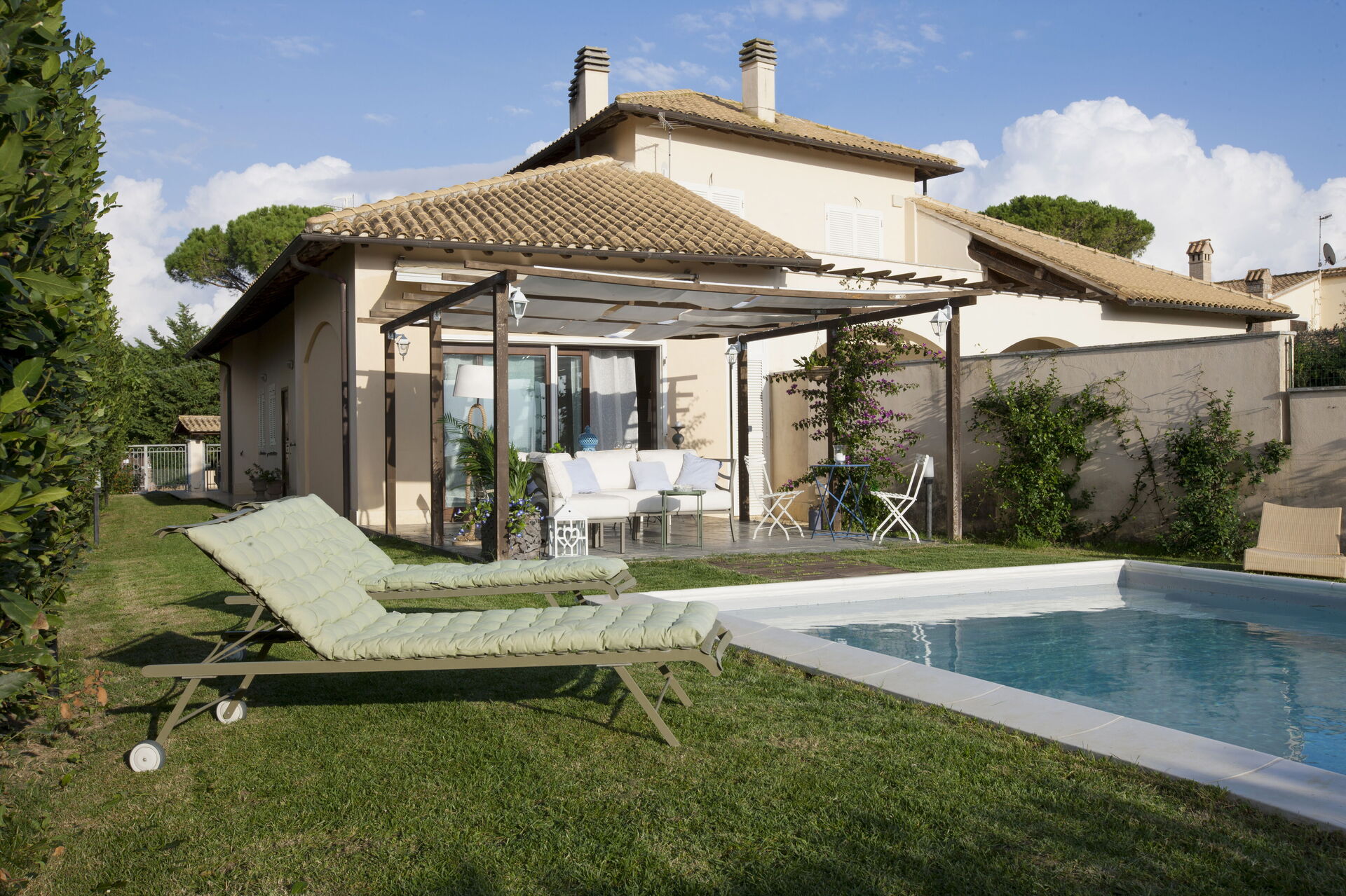 After arriving you’ll find a lovely clean well-maintained property perfect for a relaxing vacation in Latium. For your enjoyment you will find a private pool where you can relax while enjoying a nice cold beverage after a busy day of shopping. Outside you will also find a patio and tennis court.