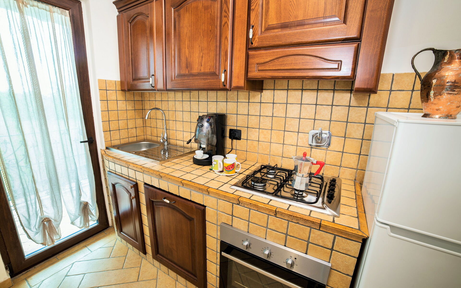 Kitchen + living room: dining table (people: 6), dishwasher, fridge, freezer, stove top, oven, toaster, italian coffee machine, sofa bed double, WIFI internet, air conditioning.