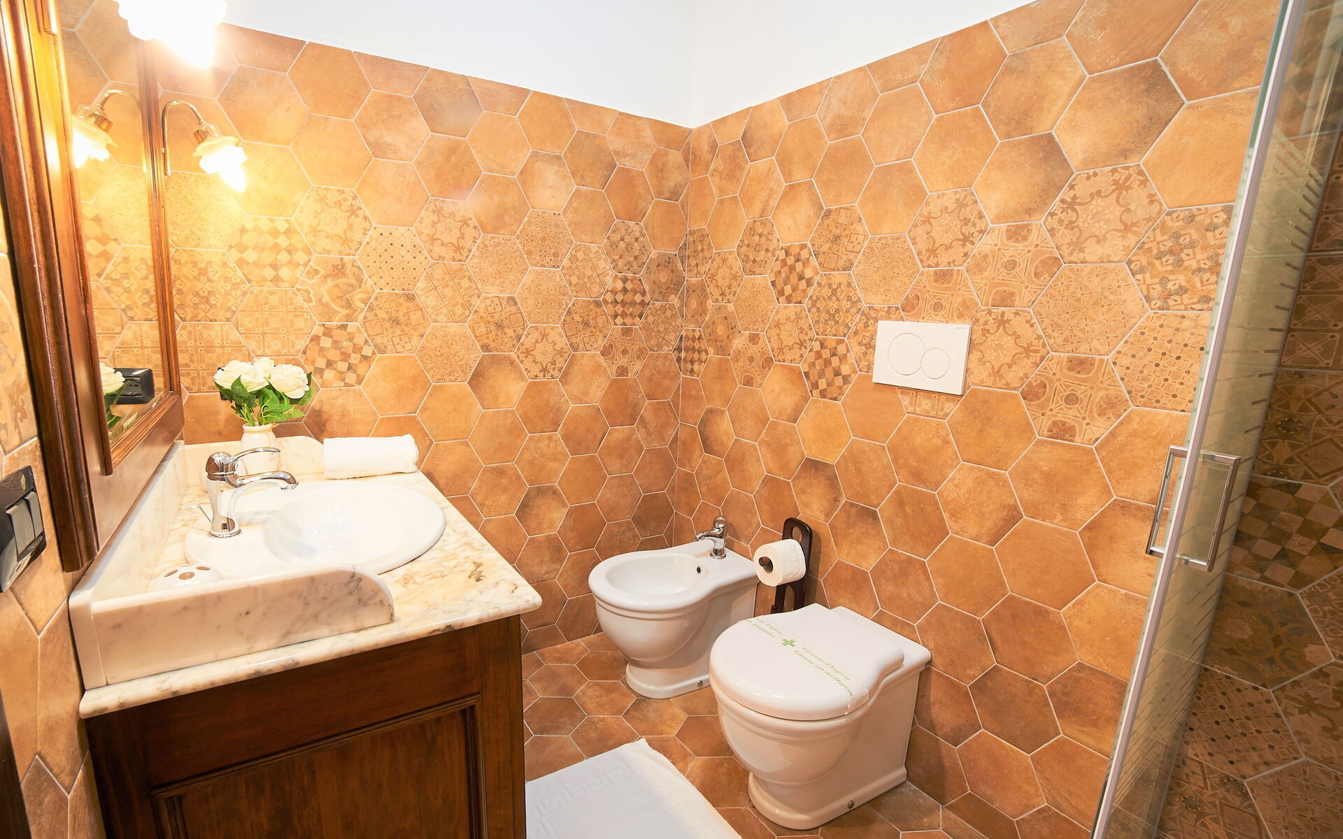 Bathroom 4: basin, toilet, bidet, shower, hairdryer.