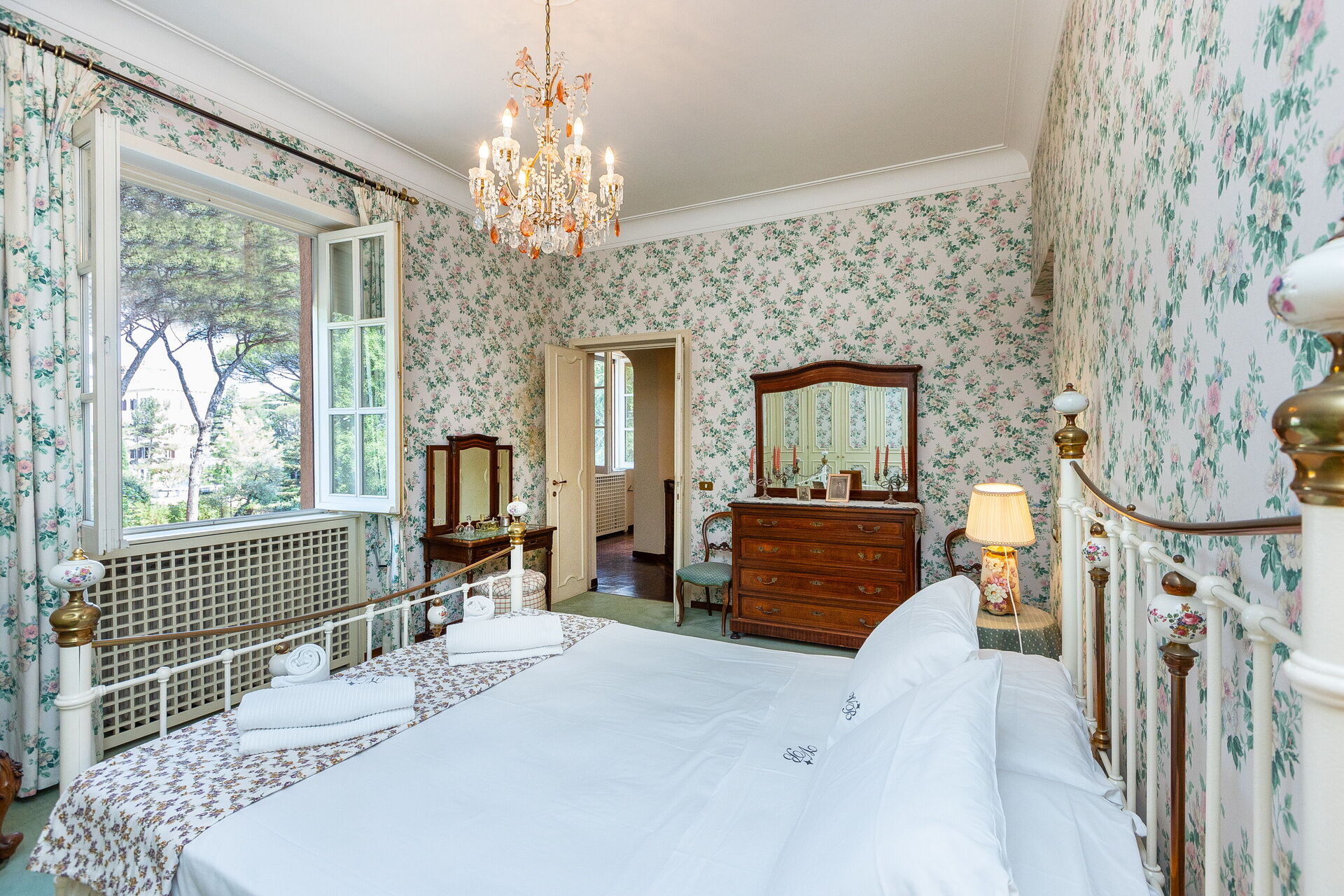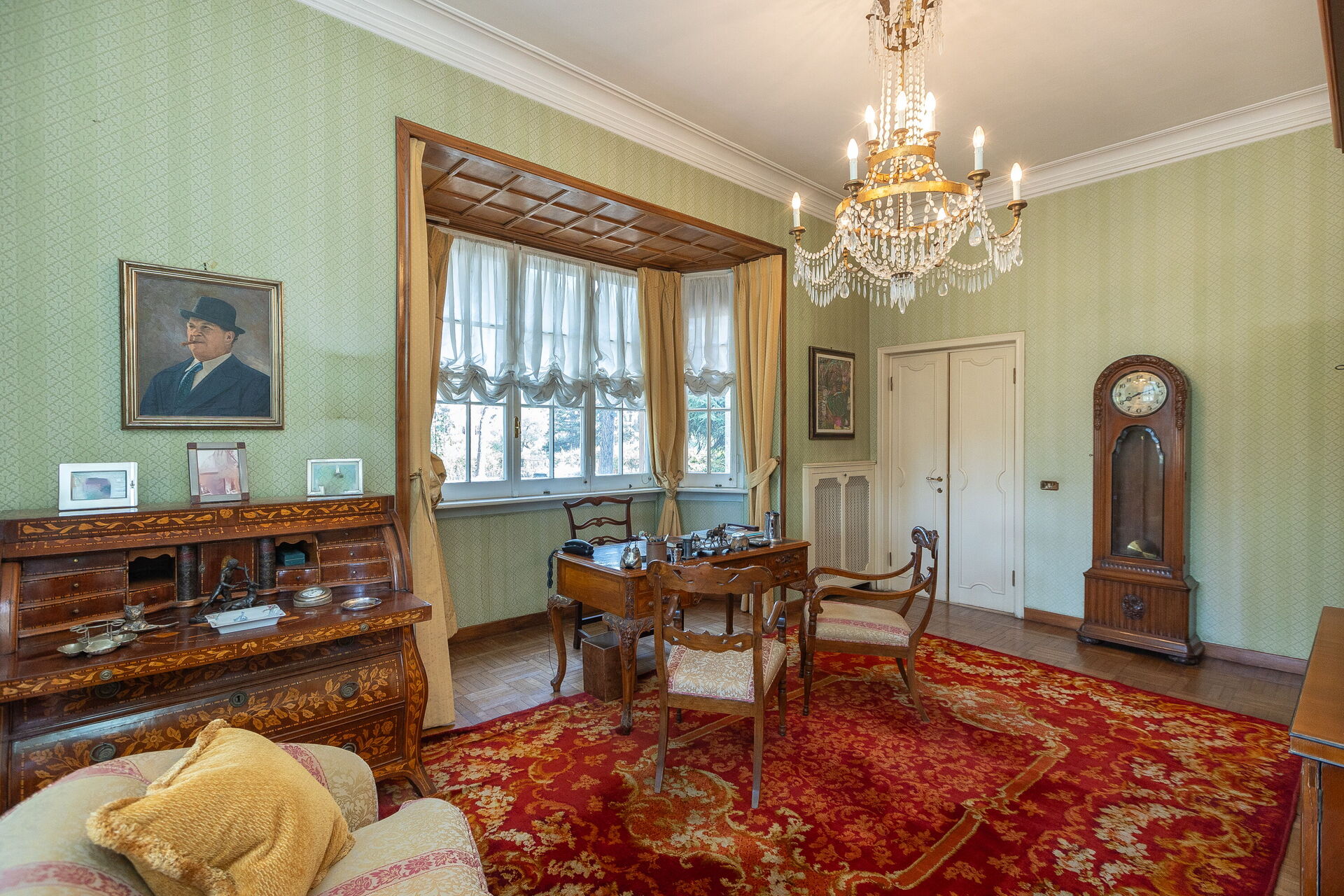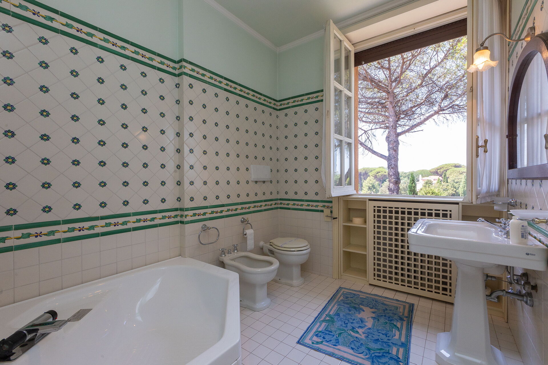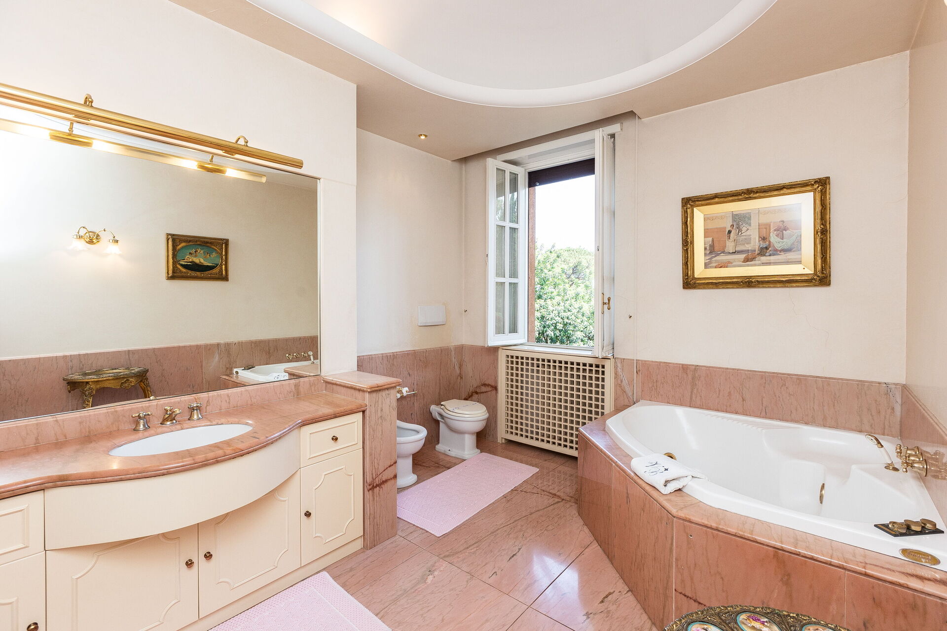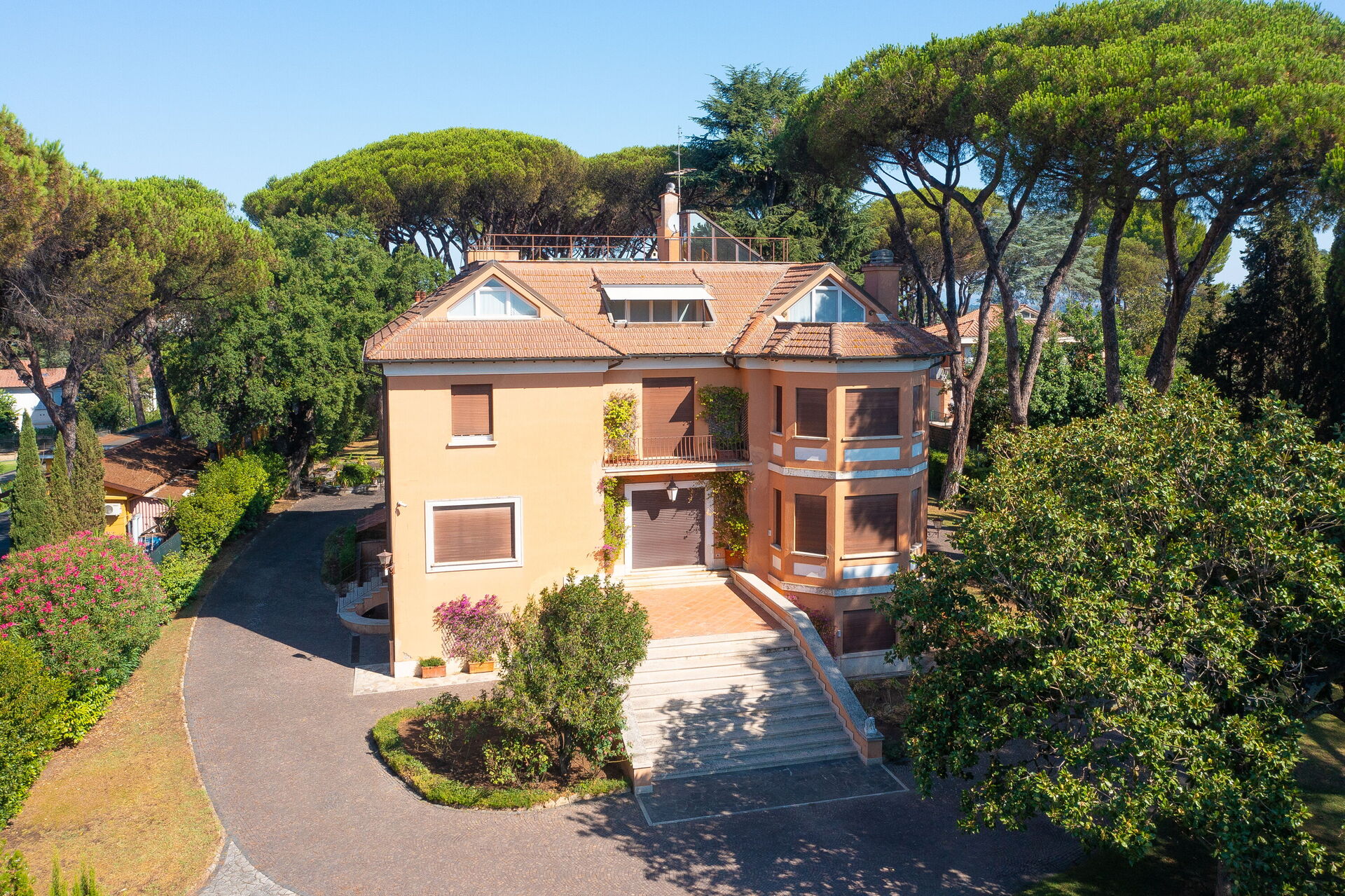 Wonderful villa located in Via della Camilluccia, a short distance from the historic center of Rome. Located in an exclusive residential area, surrounded by high-end properties and several embassy offices. The villa was built in the 50s by Aldo Gucci, creator of the company of the same name, as his Roman residence. The entire property is spread over a large park of about 7,000 square meters, with centuries-old pine trees, magnolia trees and a well-kept garden furnished with outdoor sofas and a dining table. The property also includes a large swimming pool with sun loungers and changing room. The Villa was built in English style and furnished with a mix of Tuscan style, making it certainly unique in its kind, with its bow-windows and several fireplaces in the large interior spaces. It is spread over four floors connected by stairs and an internal elevator. On the ground floor there is a large fully equipped kitchen, a laundry area and a beautiful billiard room with fireplace. On the first floor, entering the majestic entrance with a wonderful staircase that connects the upper floors, there is the highly prestigious reception area, consisting of a triple living room, dining room, a study, a music room with a grand piano, all very bright rooms, thanks to the large windows with a view and direct access to the garden. From the entrance staircase you access the second floor, where there is the sleeping area consisting of 4 double bedrooms with 4 en suite bathrooms, a double bedroom with en suite bathroom. All the bedrooms are furnished in a high-level classic style. The third floor consists of a large area with sofas and smart TV, as well as a double bedroom with en suite bathroom From the top floor you can enjoy a breathtaking view by accessing the terrace, where you can admire the altar of the homeland of Piazza Venezia, a famous monument in the historic center of Rome. The villa offers every type of comfort, air conditioning, wi fi, alarm system, laundry area and much more. The location is certainly unique in its kind and the very high historical importance, the exclusivity of this villa is perfect for families or groups of friends who want to spend a short or medium-term stay a stone's throw from the historic center of Rome without giving up the relaxation and elegance that this place can grant.