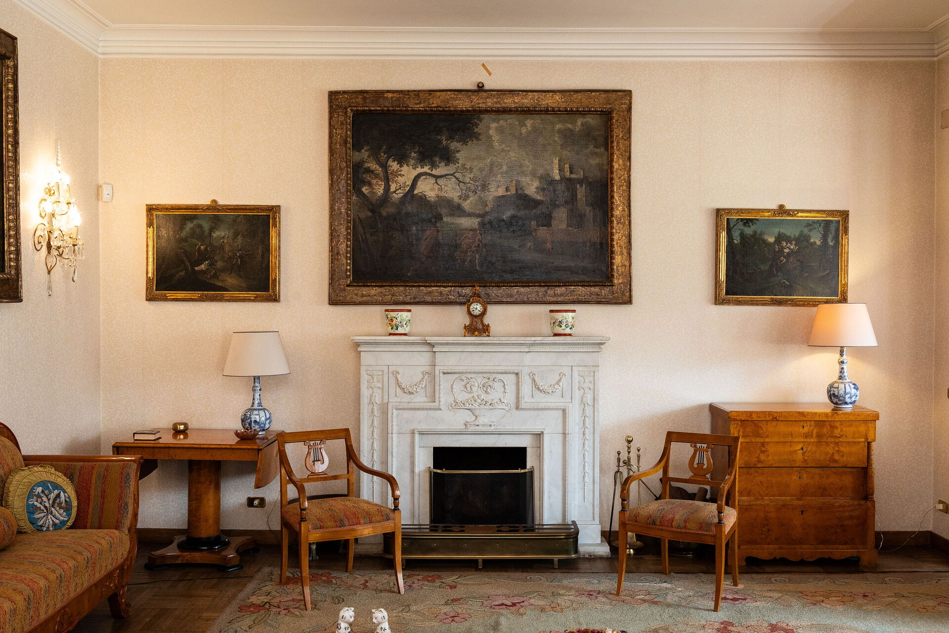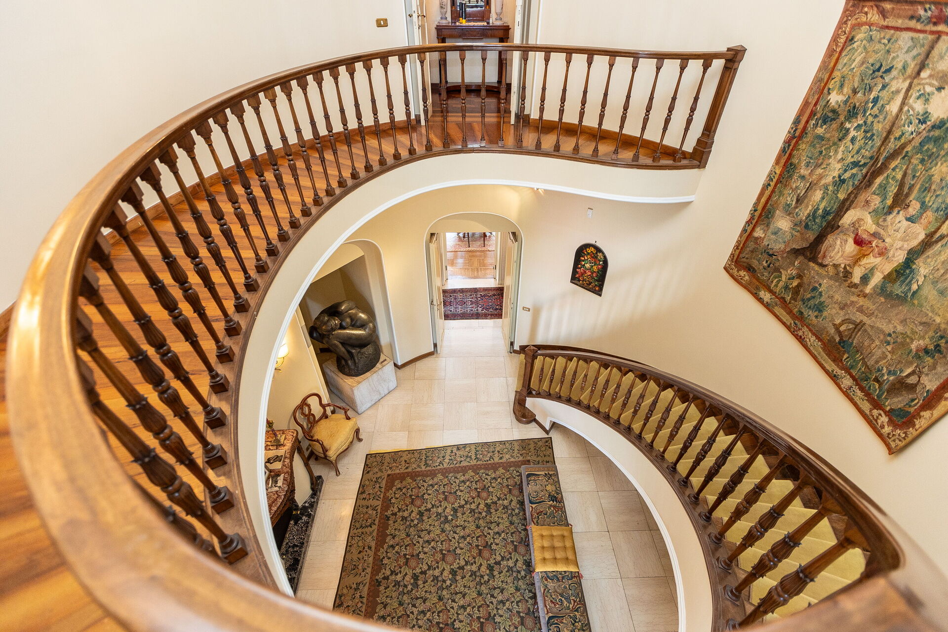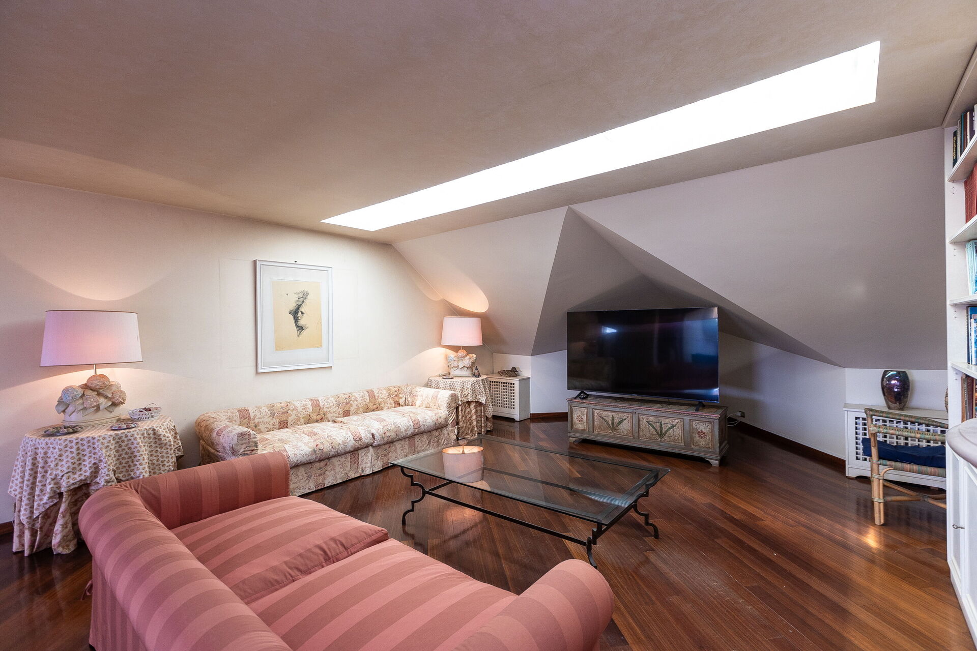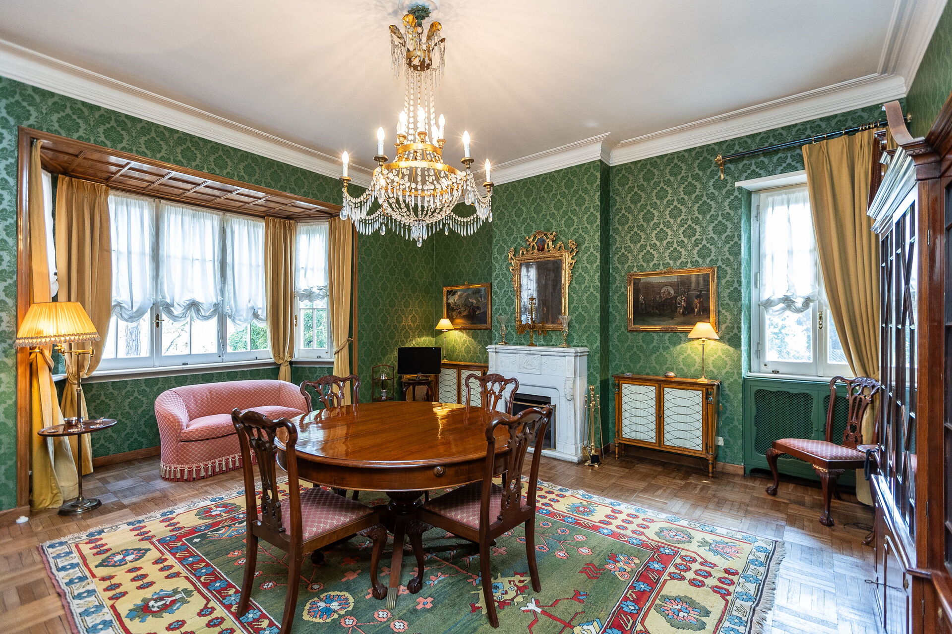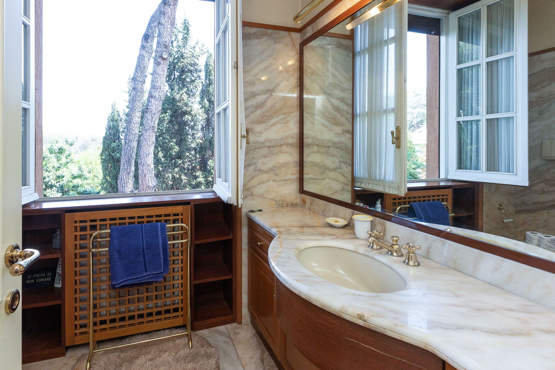 Wonderful villa located in Via della Camilluccia, a short distance from the historic center of Rome. Located in an exclusive residential area, surrounded by high-end properties and several embassy offices. The villa was built in the 50s by Aldo Gucci, creator of the company of the same name, as his Roman residence. The entire property is spread over a large park of about 7,000 square meters, with centuries-old pine trees, magnolia trees and a well-kept garden furnished with outdoor sofas and a dining table. The property also includes a large swimming pool with sun loungers and changing room. The Villa was built in English style and furnished with a mix of Tuscan style, making it certainly unique in its kind, with its bow-windows and several fireplaces in the large interior spaces. It is spread over four floors connected by stairs and an internal elevator. On the ground floor there is a large fully equipped kitchen, a laundry area and a beautiful billiard room with fireplace. On the first floor, entering the majestic entrance with a wonderful staircase that connects the upper floors, there is the highly prestigious reception area, consisting of a triple living room, dining room, a study, a music room with a grand piano, all very bright rooms, thanks to the large windows with a view and direct access to the garden. From the entrance staircase you access the second floor, where there is the sleeping area consisting of 4 double bedrooms with 4 en suite bathrooms, a double bedroom with en suite bathroom. All the bedrooms are furnished in a high-level classic style. The third floor consists of a large area with sofas and smart TV, as well as a double bedroom with en suite bathroom From the top floor you can enjoy a breathtaking view by accessing the terrace, where you can admire the altar of the homeland of Piazza Venezia, a famous monument in the historic center of Rome. The villa offers every type of comfort, air conditioning, wi fi, alarm system, laundry area and much more. The location is certainly unique in its kind and the very high historical importance, the exclusivity of this villa is perfect for families or groups of friends who want to spend a short or medium-term stay a stone's throw from the historic center of Rome without giving up the relaxation and elegance that this place can grant.