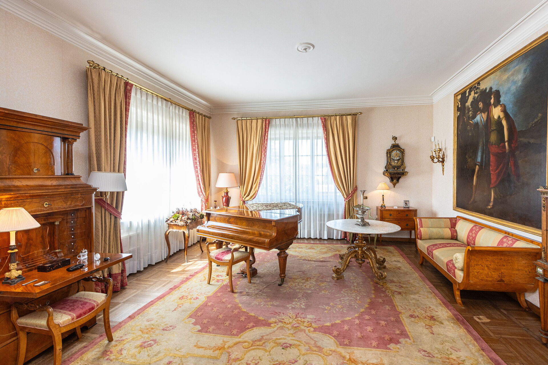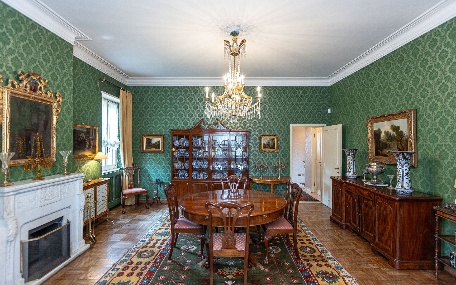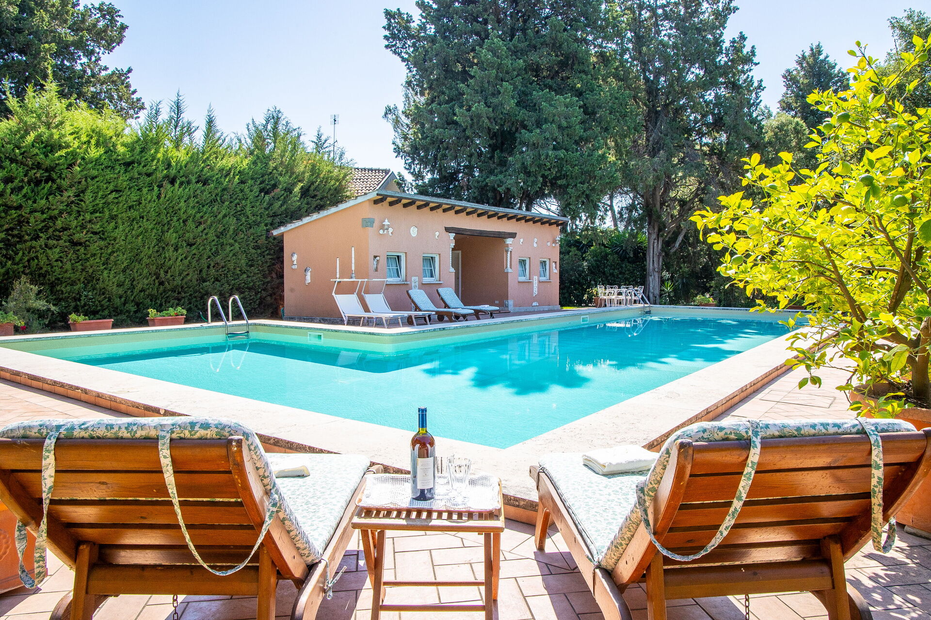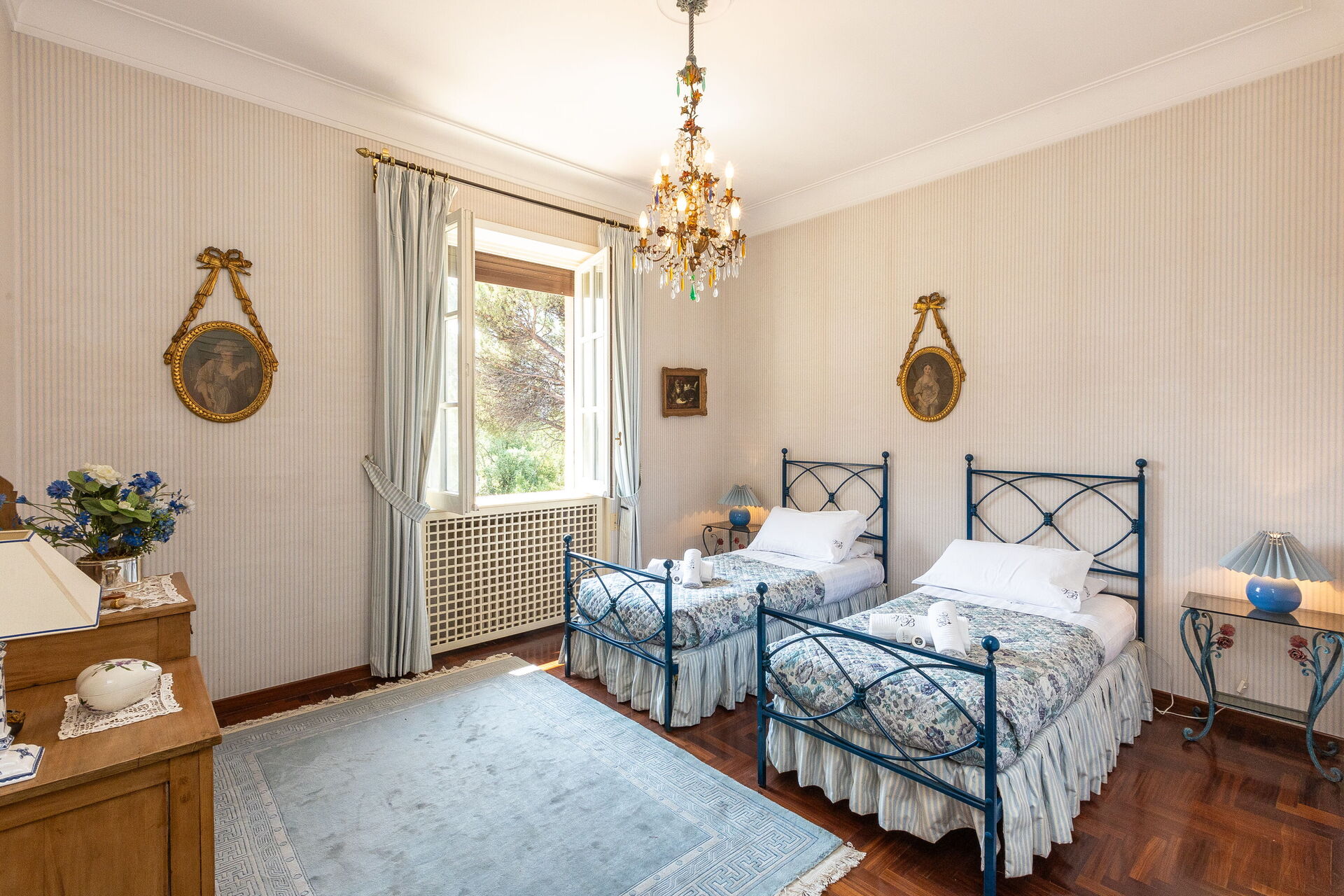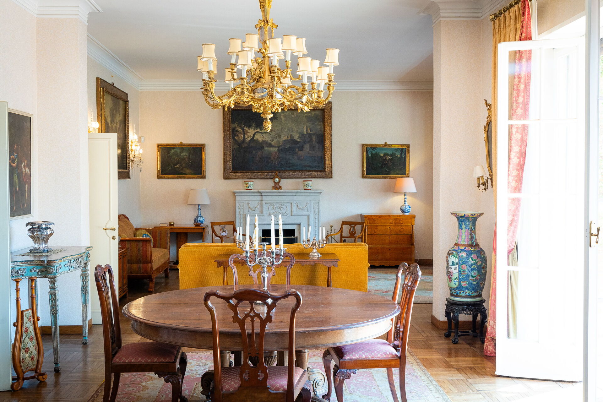 Wonderful villa located in Via della Camilluccia, a short distance from the historic center of Rome. Located in an exclusive residential area, surrounded by high-end properties and several embassy offices. The villa was built in the 50s by Aldo Gucci, creator of the company of the same name, as his Roman residence. The entire property is spread over a large park of about 7,000 square meters, with centuries-old pine trees, magnolia trees and a well-kept garden furnished with outdoor sofas and a dining table. The property also includes a large swimming pool with sun loungers and changing room. The Villa was built in English style and furnished with a mix of Tuscan style, making it certainly unique in its kind, with its bow-windows and several fireplaces in the large interior spaces. It is spread over four floors connected by stairs and an internal elevator. On the ground floor there is a large fully equipped kitchen, a laundry area and a beautiful billiard room with fireplace. On the first floor, entering the majestic entrance with a wonderful staircase that connects the upper floors, there is the highly prestigious reception area, consisting of a triple living room, dining room, a study, a music room with a grand piano, all very bright rooms, thanks to the large windows with a view and direct access to the garden. From the entrance staircase you access the second floor, where there is the sleeping area consisting of 4 double bedrooms with 4 en suite bathrooms, a double bedroom with en suite bathroom. All the bedrooms are furnished in a high-level classic style. The third floor consists of a large area with sofas and smart TV, as well as a double bedroom with en suite bathroom From the top floor you can enjoy a breathtaking view by accessing the terrace, where you can admire the altar of the homeland of Piazza Venezia, a famous monument in the historic center of Rome. The villa offers every type of comfort, air conditioning, wi fi, alarm system, laundry area and much more. The location is certainly unique in its kind and the very high historical importance, the exclusivity of this villa is perfect for families or groups of friends who want to spend a short or medium-term stay a stone's throw from the historic center of Rome without giving up the relaxation and elegance that this place can grant.