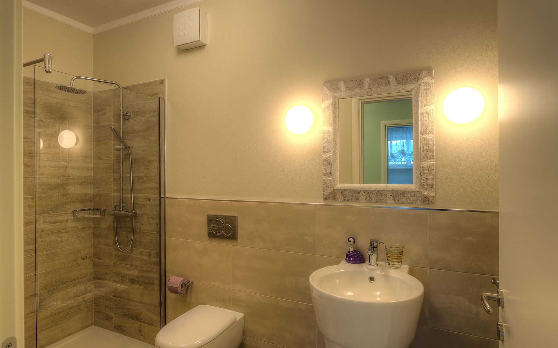 Bathroom (8 m2): basin, basin, shower, hairdryer, hairdryer.