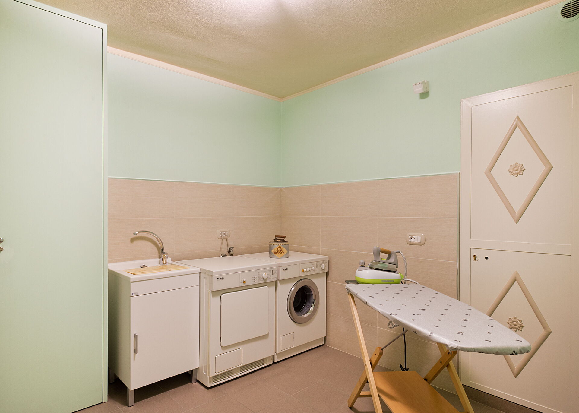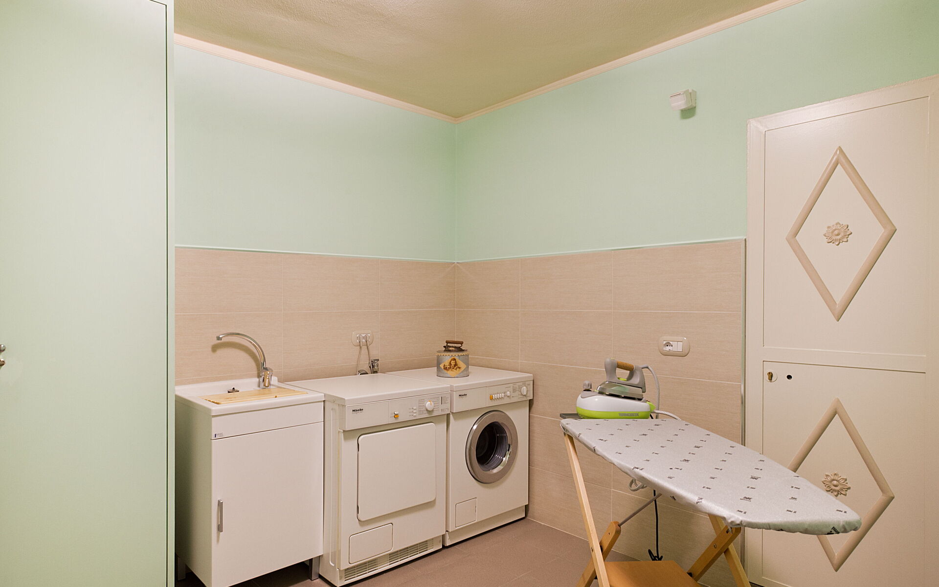 Service room (9 m2): basin, iron, washing machine, dryer.
