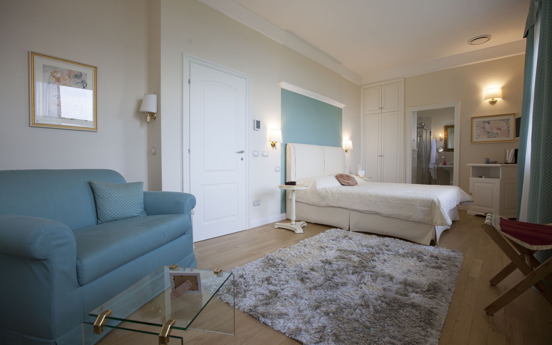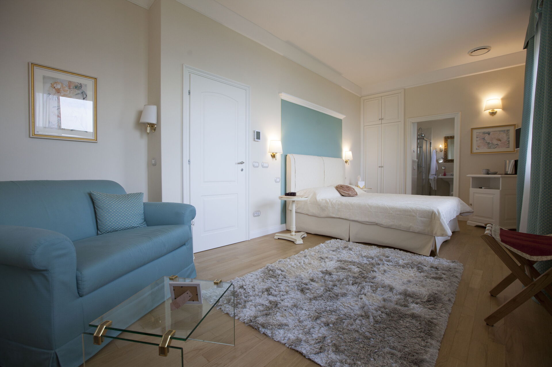 Bedroom + Ensuite Bathroom 1 (16 m2): double bed, WIFI internet, air conditioning, satellite tv, armchair, safe, fridge, basin, toilet, bidet, shower, hairdryer, exit to the balcony.