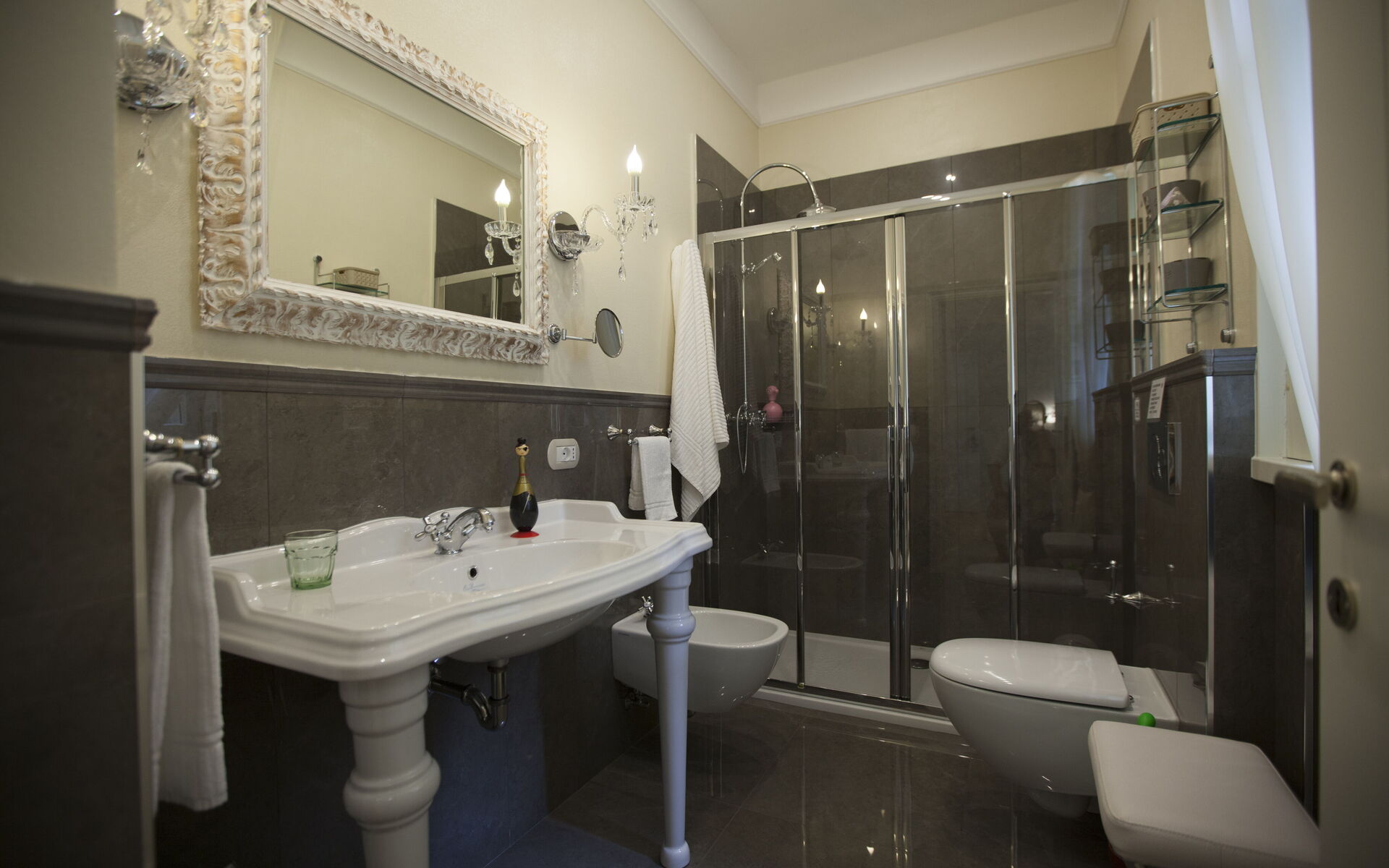 Bedroom + Ensuite Bathroom 5 (16 m2): double bed, WIFI internet, air conditioning, satellite tv, safe, basin, toilet, bidet, shower, hairdryer.