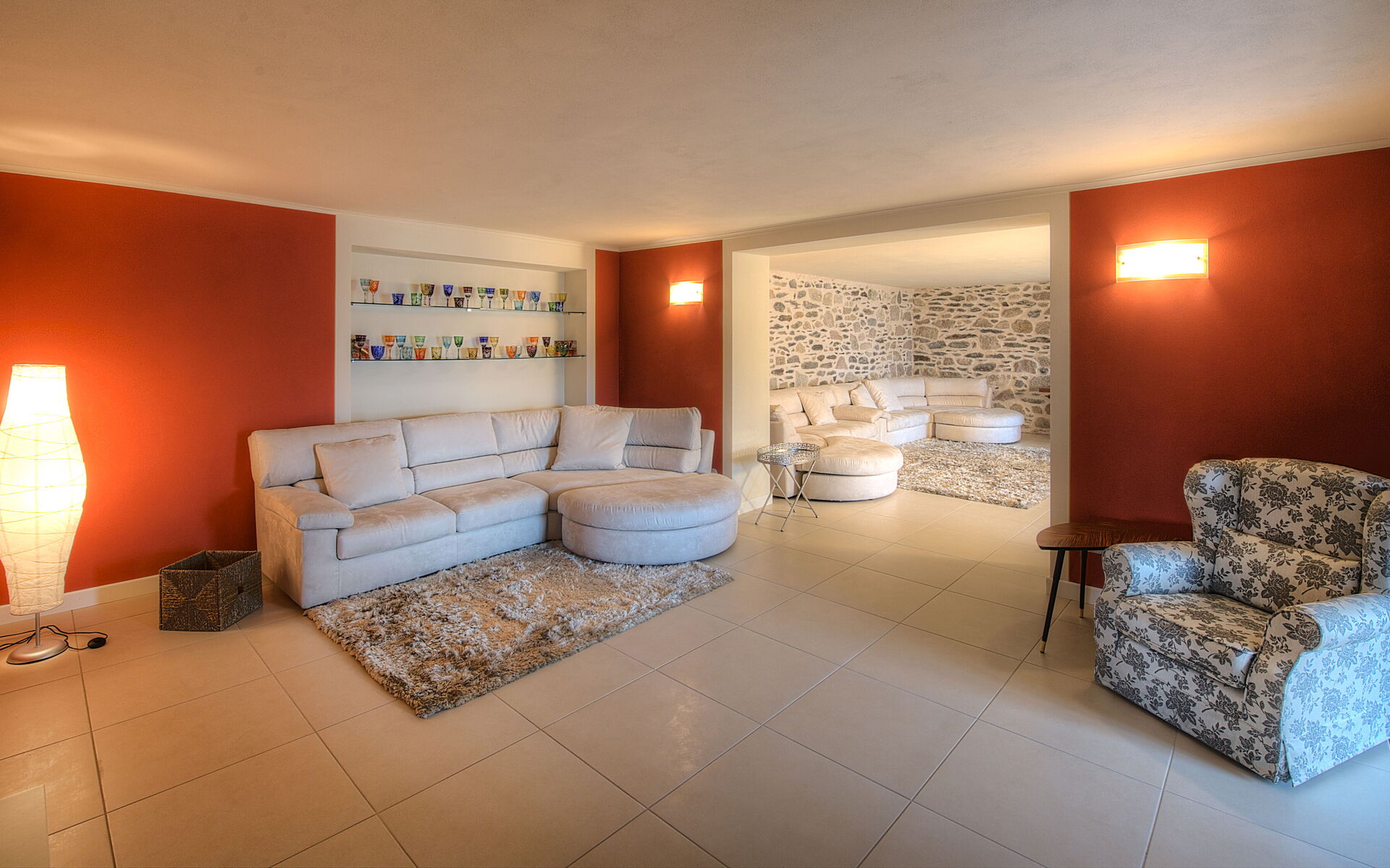 Upon request to pay on site, a sixth bedroom can be available on the Main floor, converting the TV relax room in a sofa double bedroom and using the adjacent bathroom (with shower and wardrobe) of the living area. The room will have direct access to the Garden.