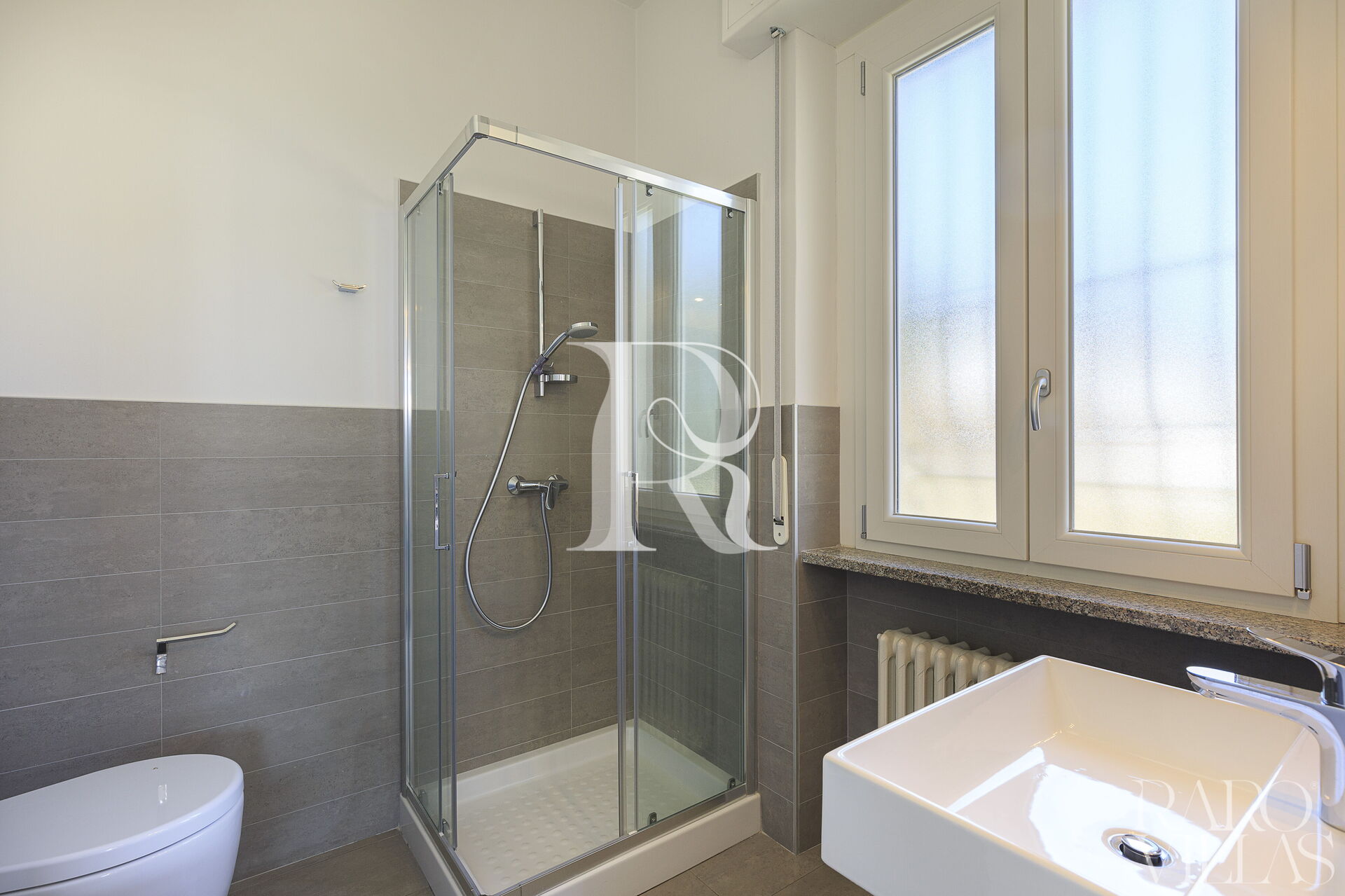 The main floor has four bedrooms all with en suite bathrooms and an additional service bathroom. The open plan kitchen is fully equipped with all appliances and with a beautiful outdoor dining area overlooking the lake. The living area communicates with the terrace through a large sliding glass doors facing the lake and with a breathtaking view where to relax and enjoy the sunset with your favourite drink. The living space is fully equipped with a 65" Smart TV and a Bose sound system.