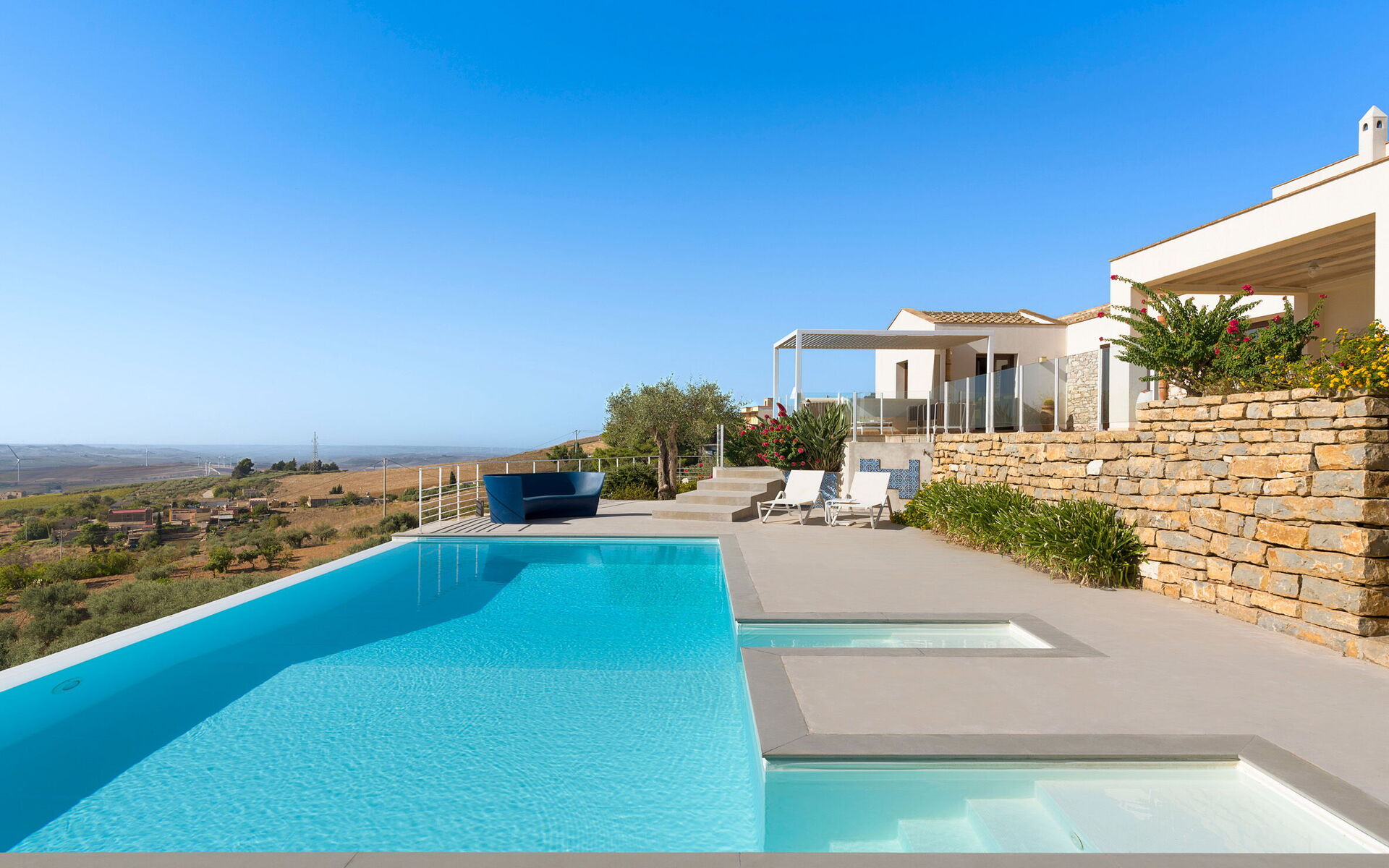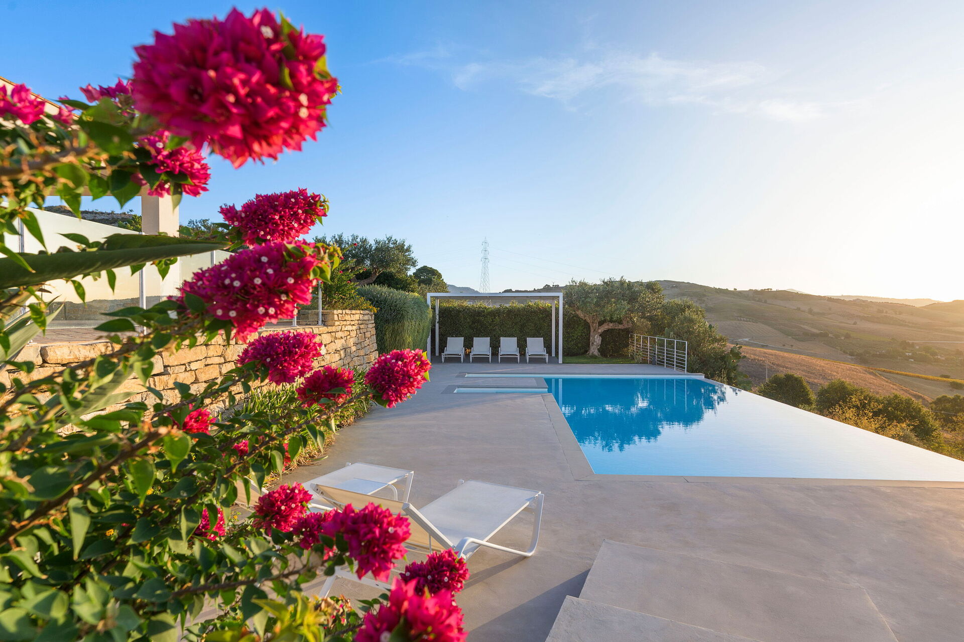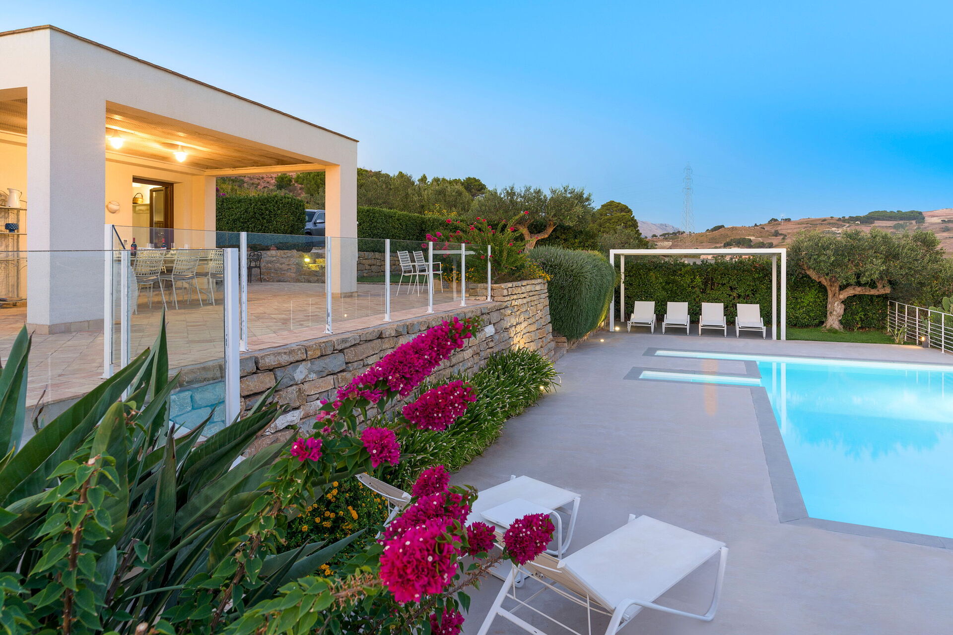 After arriving you’ll find a lovely clean well-maintained property with views of the hills perfect for a relaxing vacation in Sicily. Regardless of how you spend your days - shopping, sightseeing, visiting museums or just driving in the countryside, when you arrive home you can relax with your family and friends at the pool for a perfect ending to another day in Sicily. If you enjoy cooking for family and friends there is a well-equipped kitchen including coffee machine, microwave, toaster, stove and refrigerator, as well as, plenty of tableware and cutlery for up to eight people.