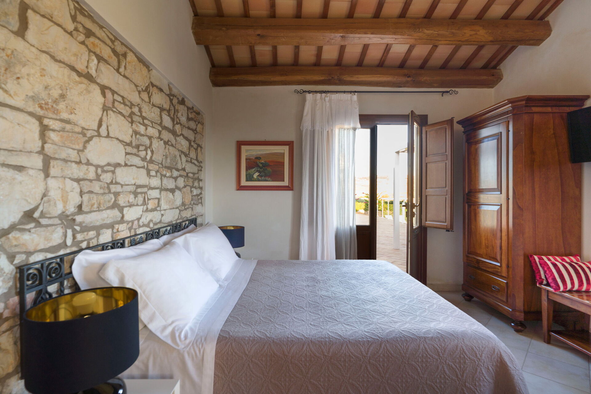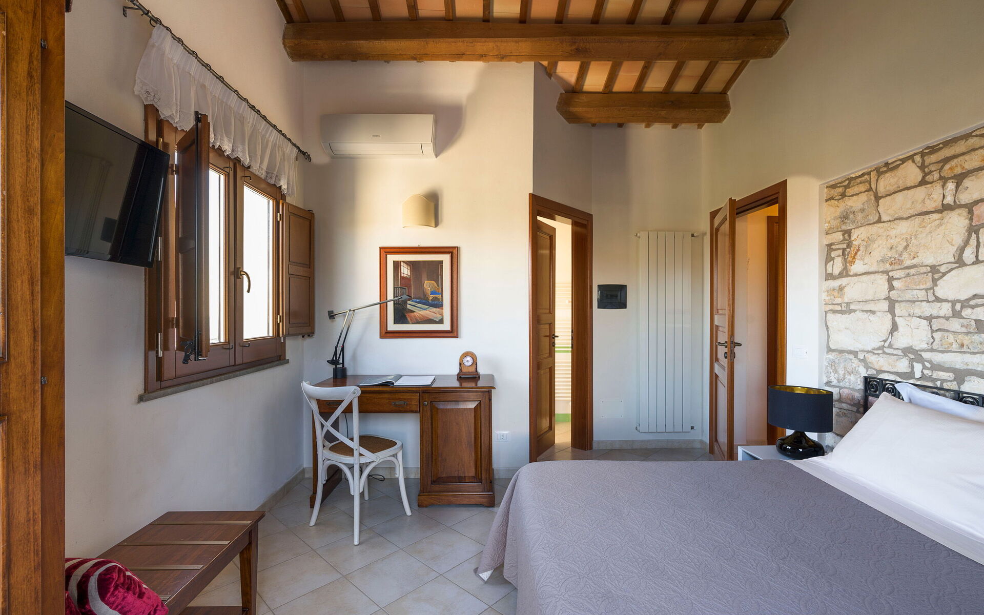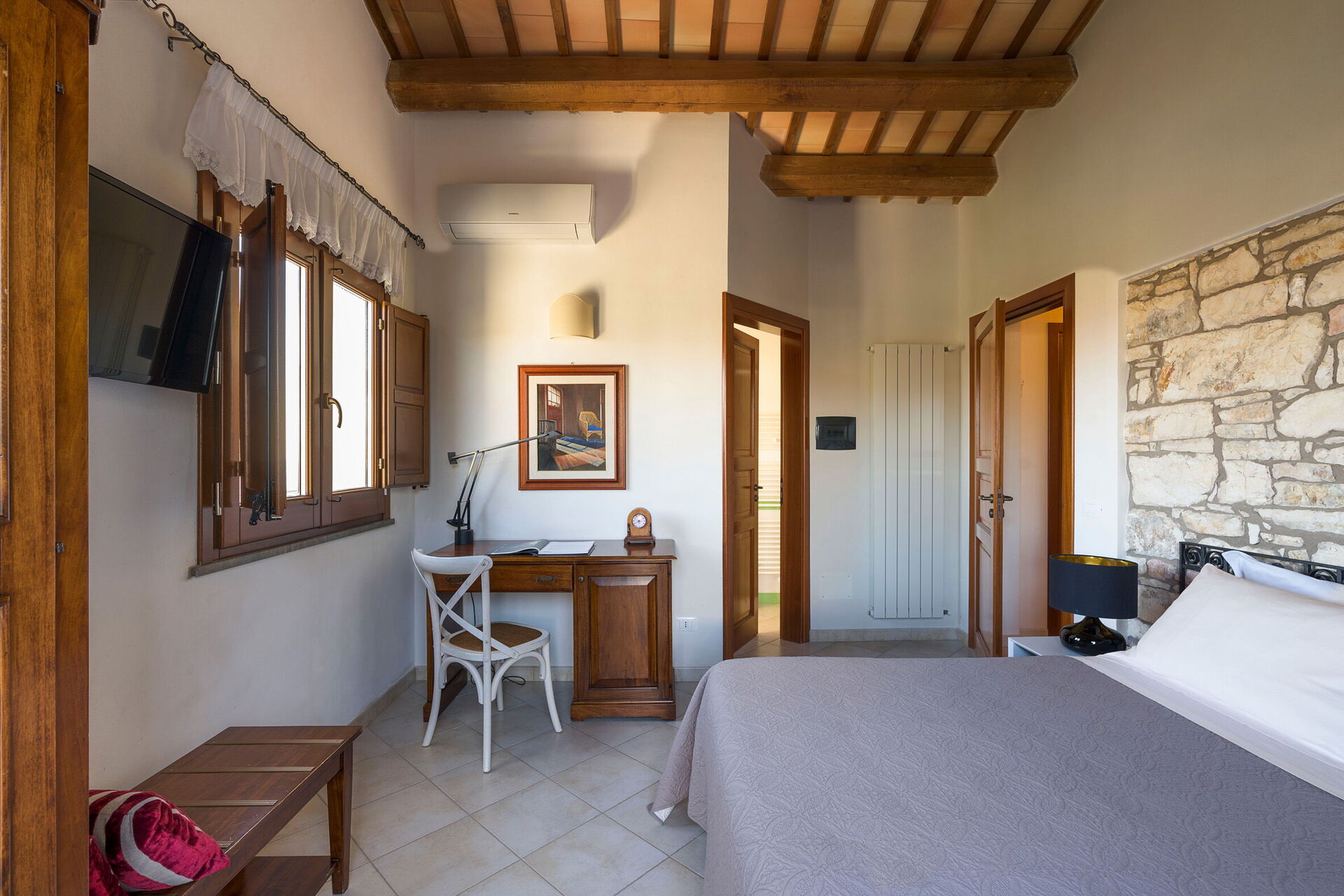 Bedroom + Ensuite Bathroom: double bed, WIFI internet, internet, air conditioning, satellite tv, armchair, basin, toilet, bidet, bathtub, shower, exit to the terrace.