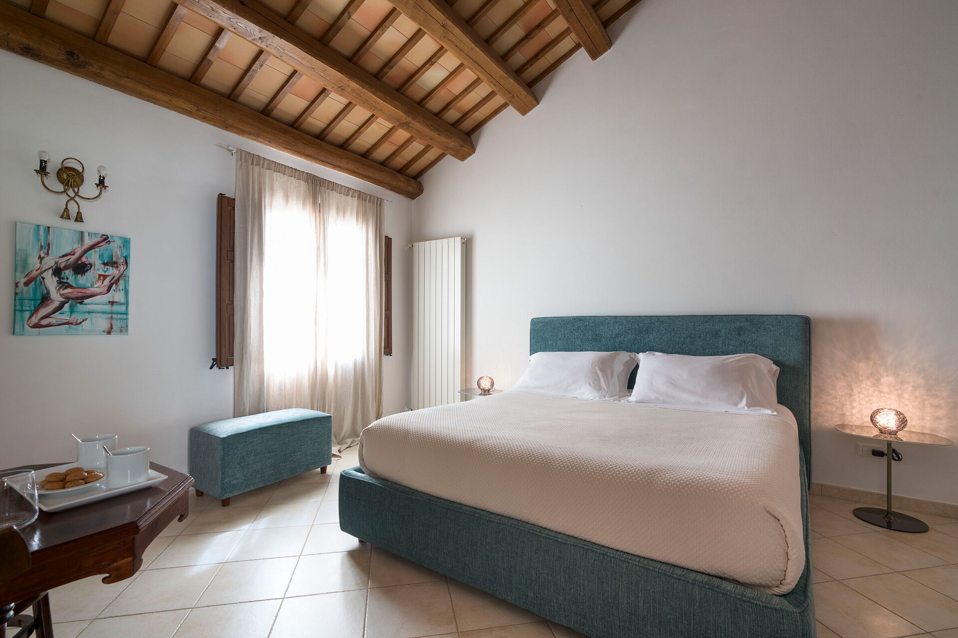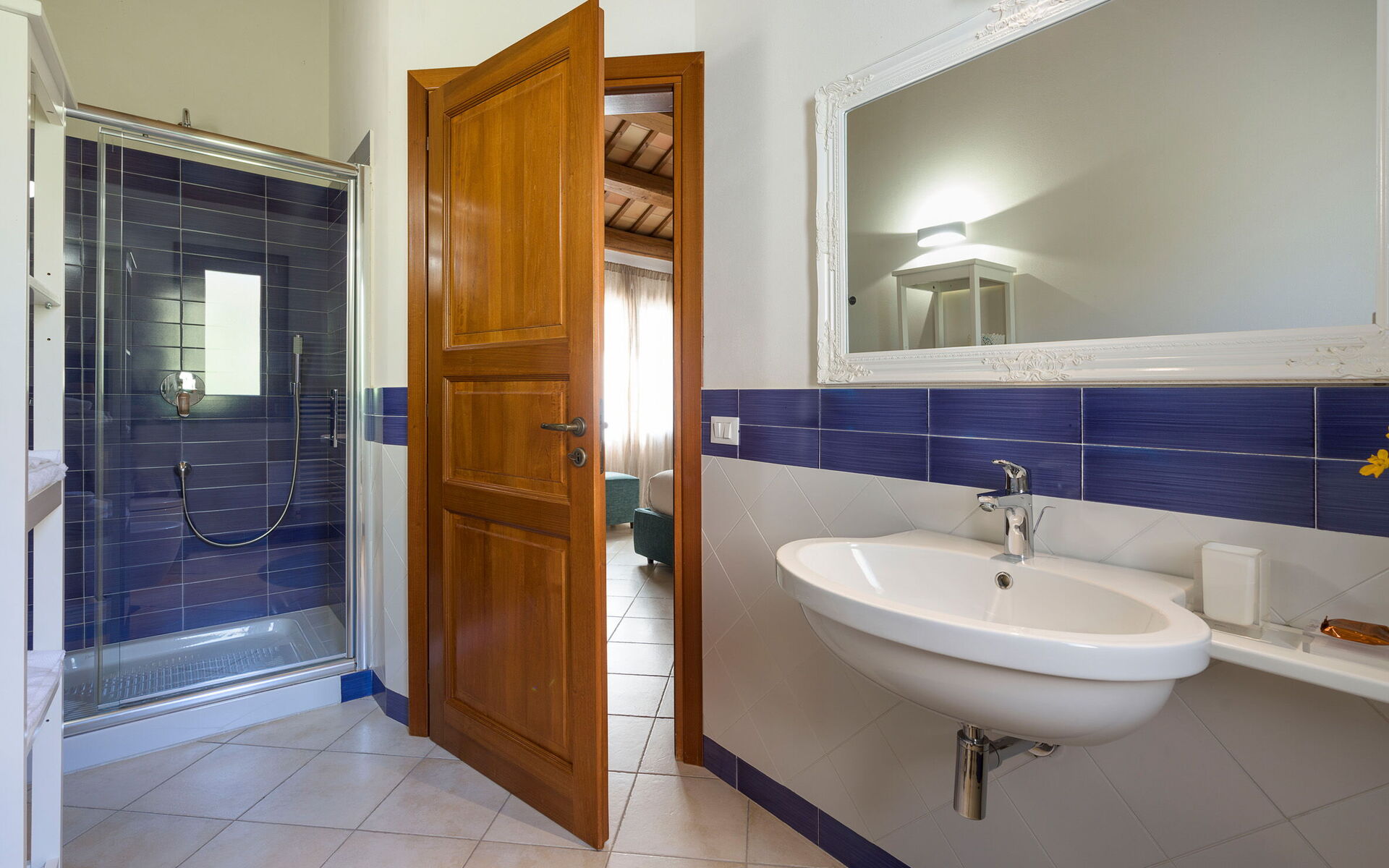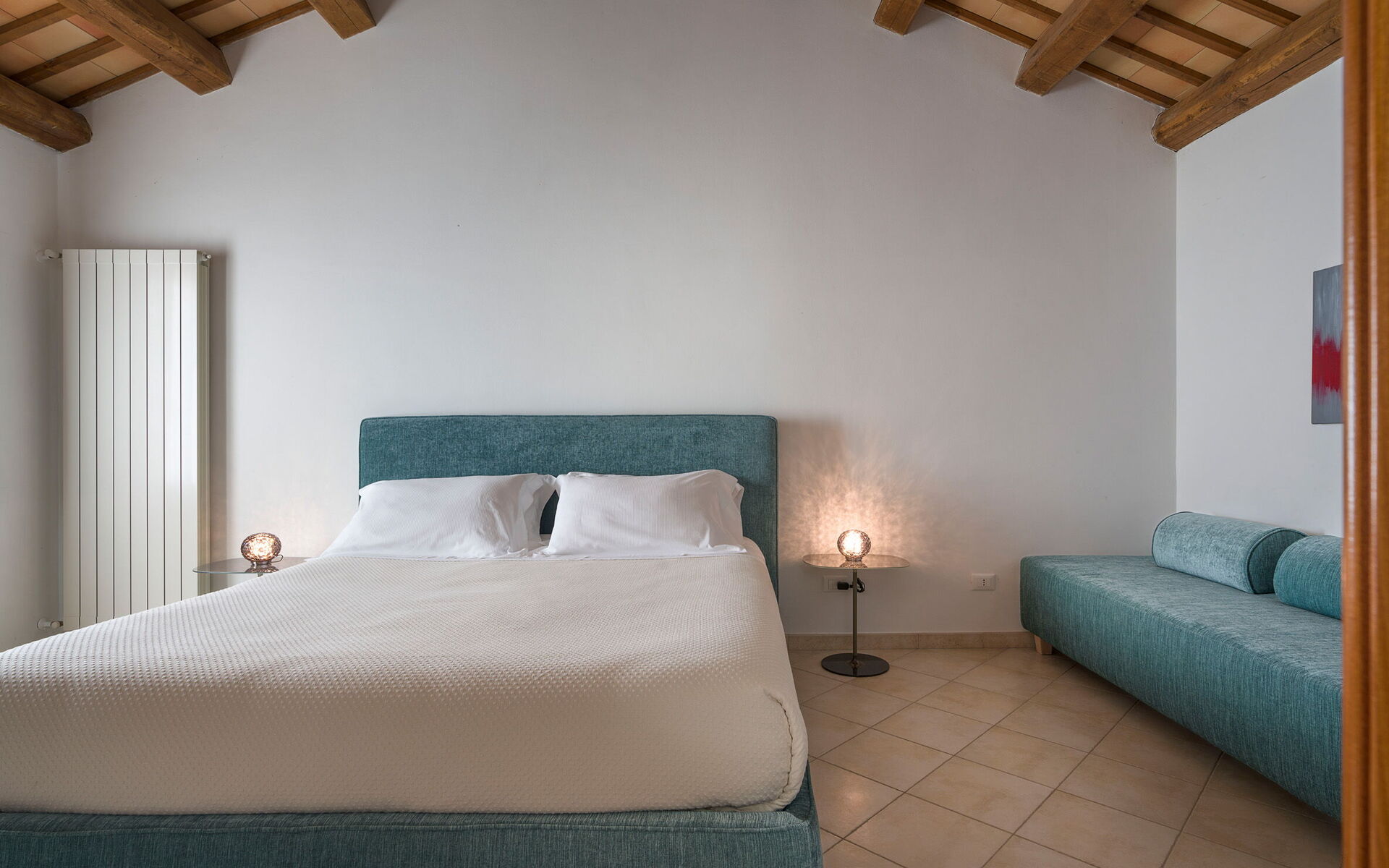 Bedroom + Ensuite Bathroom: double bed, WIFI internet, internet, air conditioning, satellite tv, armchair, basin, toilet, bidet, bathtub, shower, exit to the terrace.
