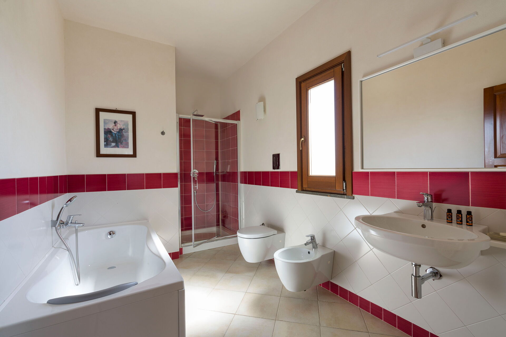 Bathroom: basin, toilet, bidet, shower, WIFI internet, internet.