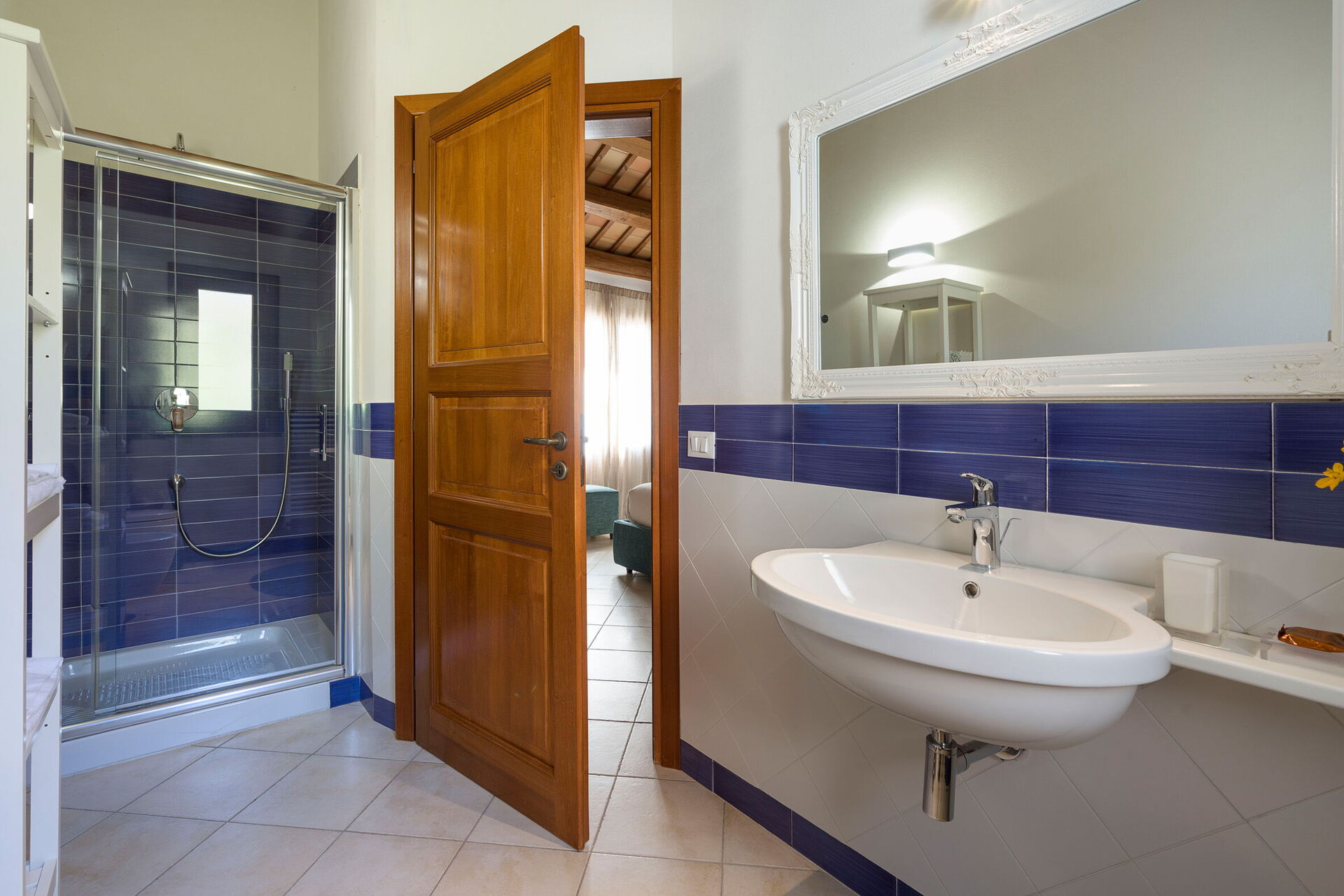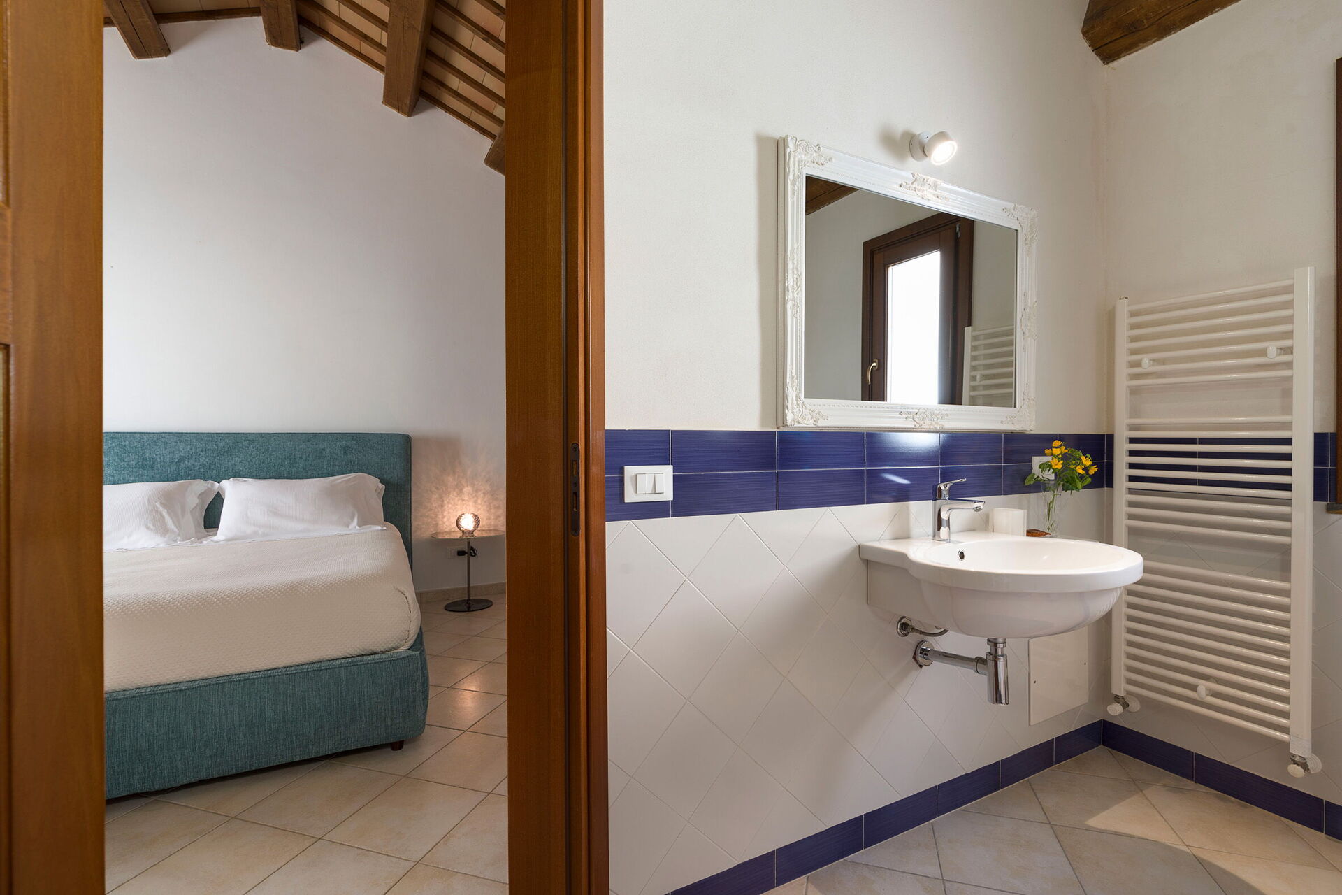 Bedroom + Ensuite Bathroom 1: double bed, baby crib, WIFI internet, internet, air conditioning, satellite tv, armchair, basin, toilet, bidet, shower, hairdryer.
