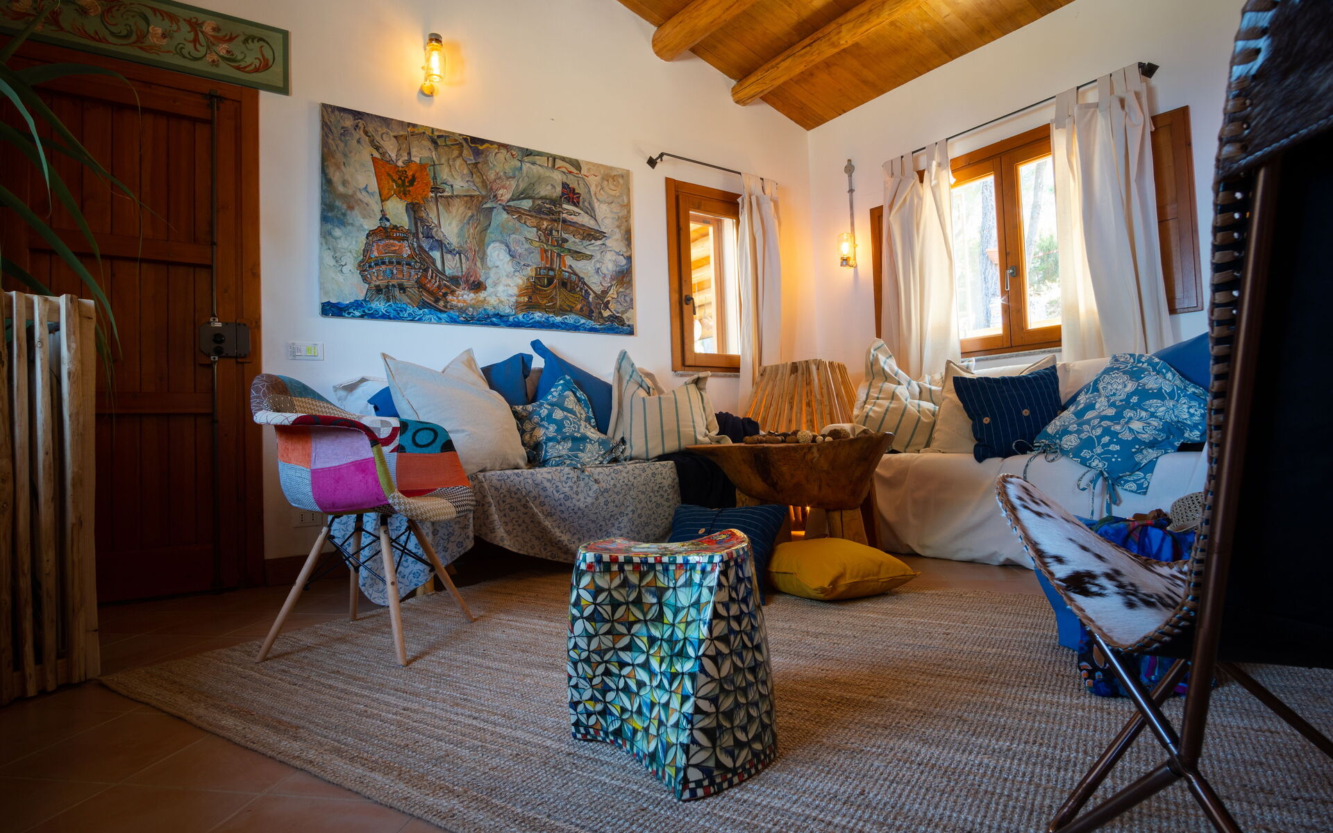 Bedroom + Ensuite Bathroom 2 (27 m2): double bed, WIFI internet, ceiling fan, sofa, basin, toilet, bidet, shower.