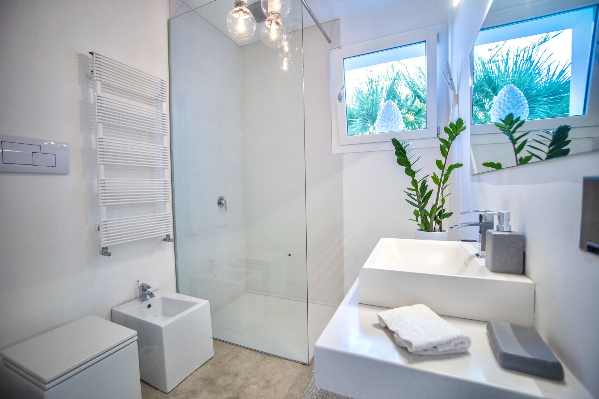 The bathroom has a particular shower/bath tub, always made with natural cement and it gives the place an exotic and elegant note at the same time.