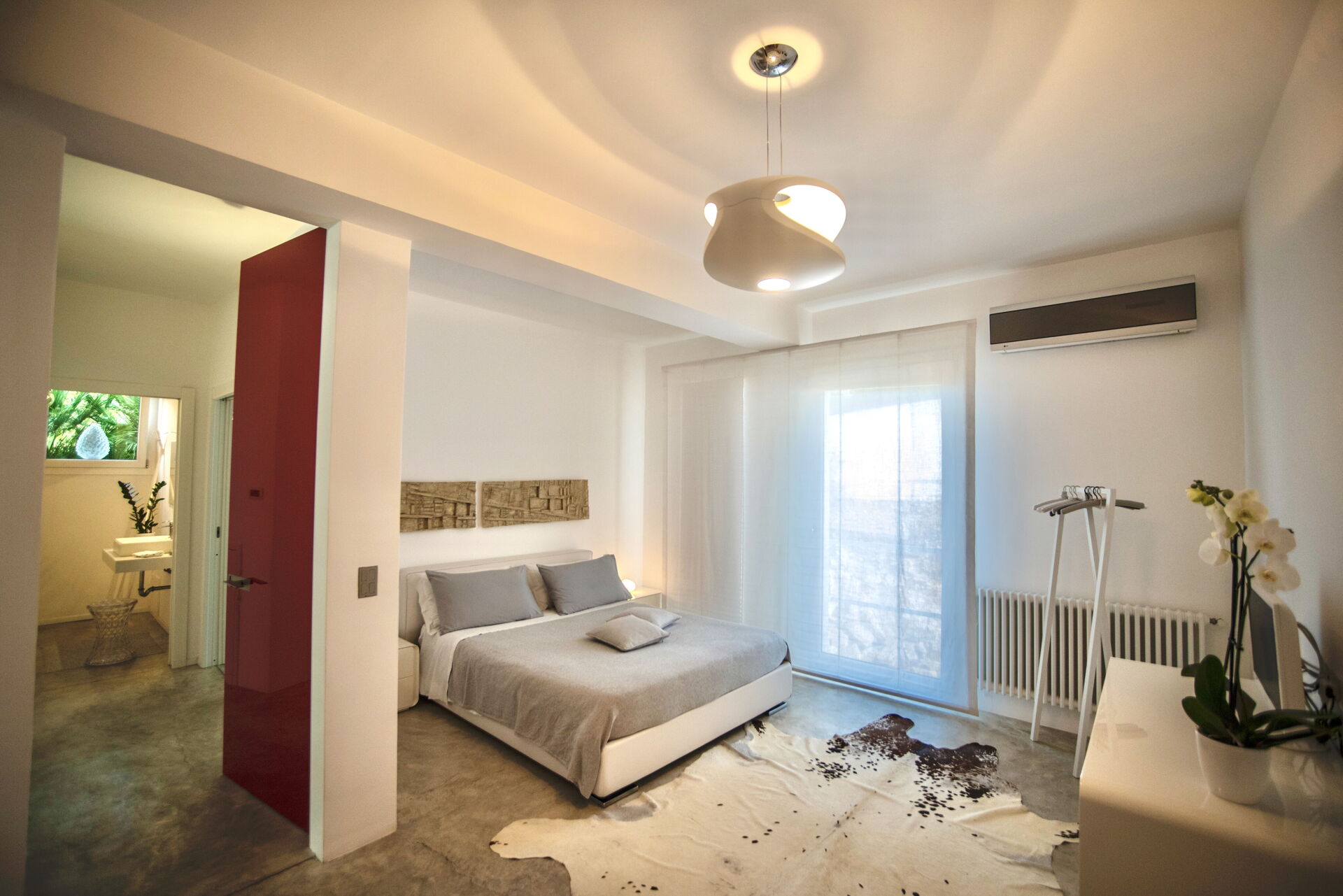 The master bedroom with en-suite recalls the essential and refined style that distinguishes every room.