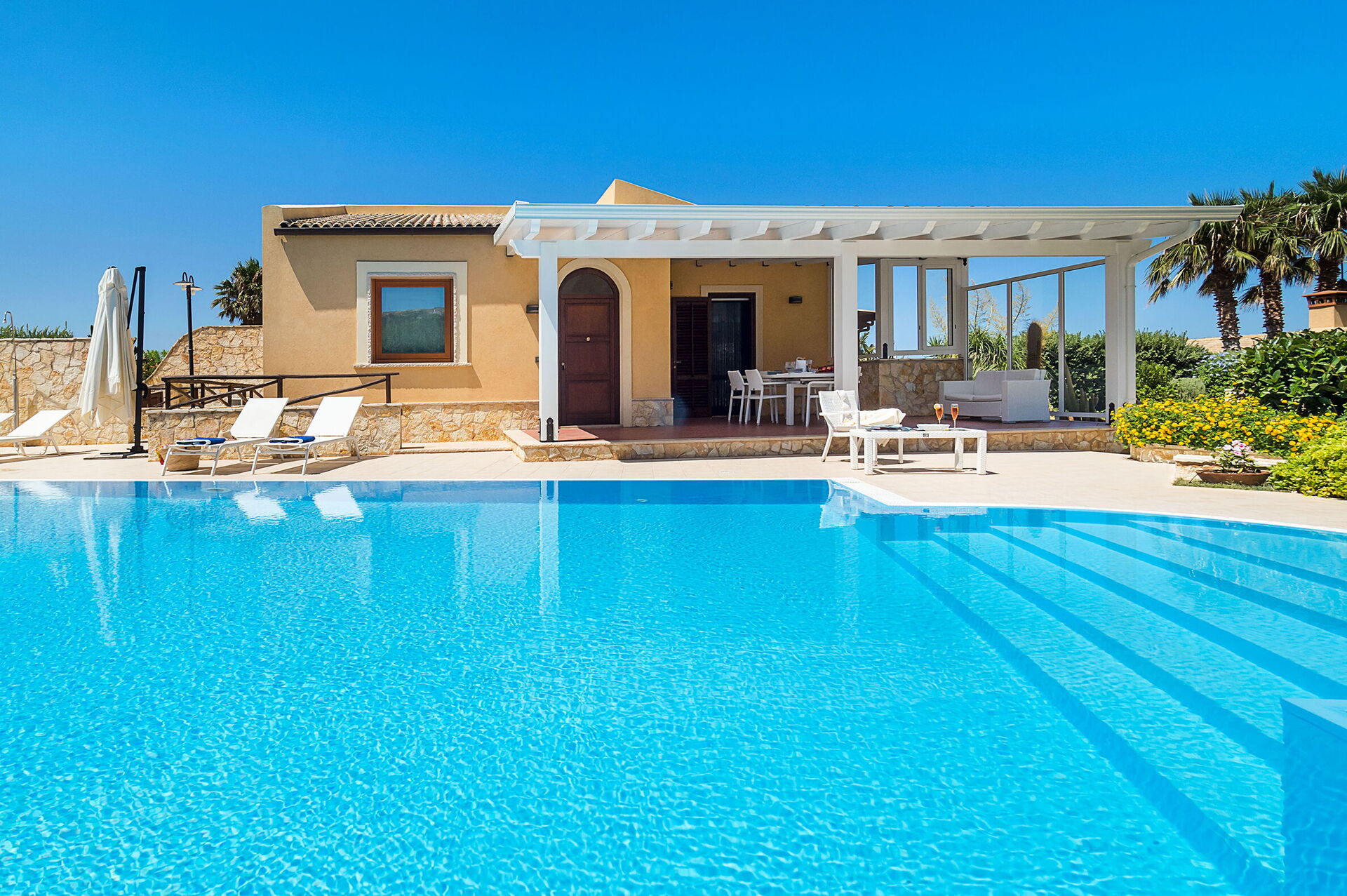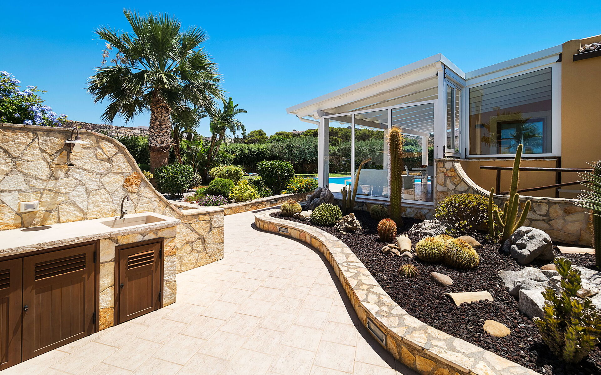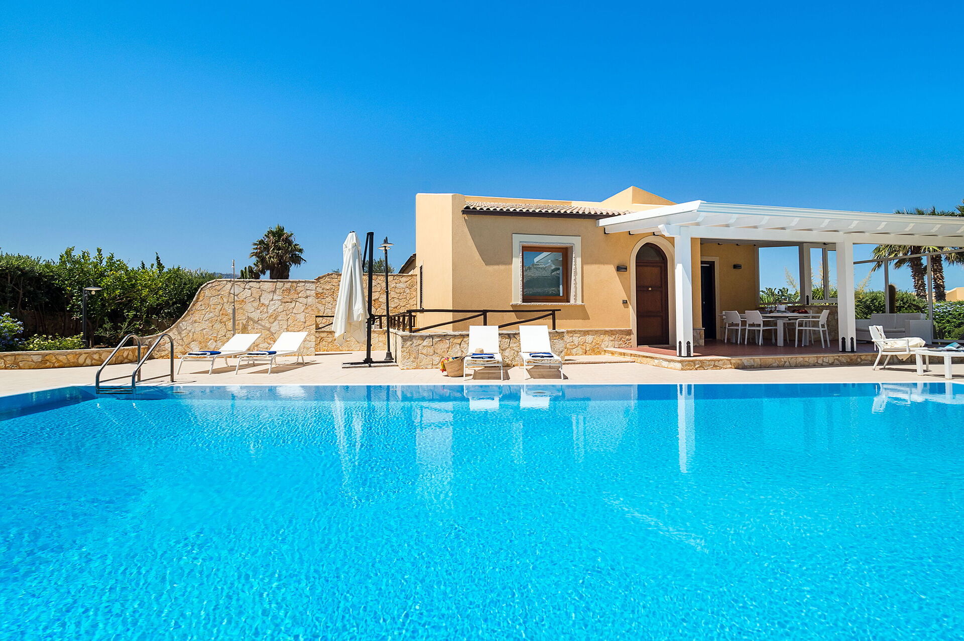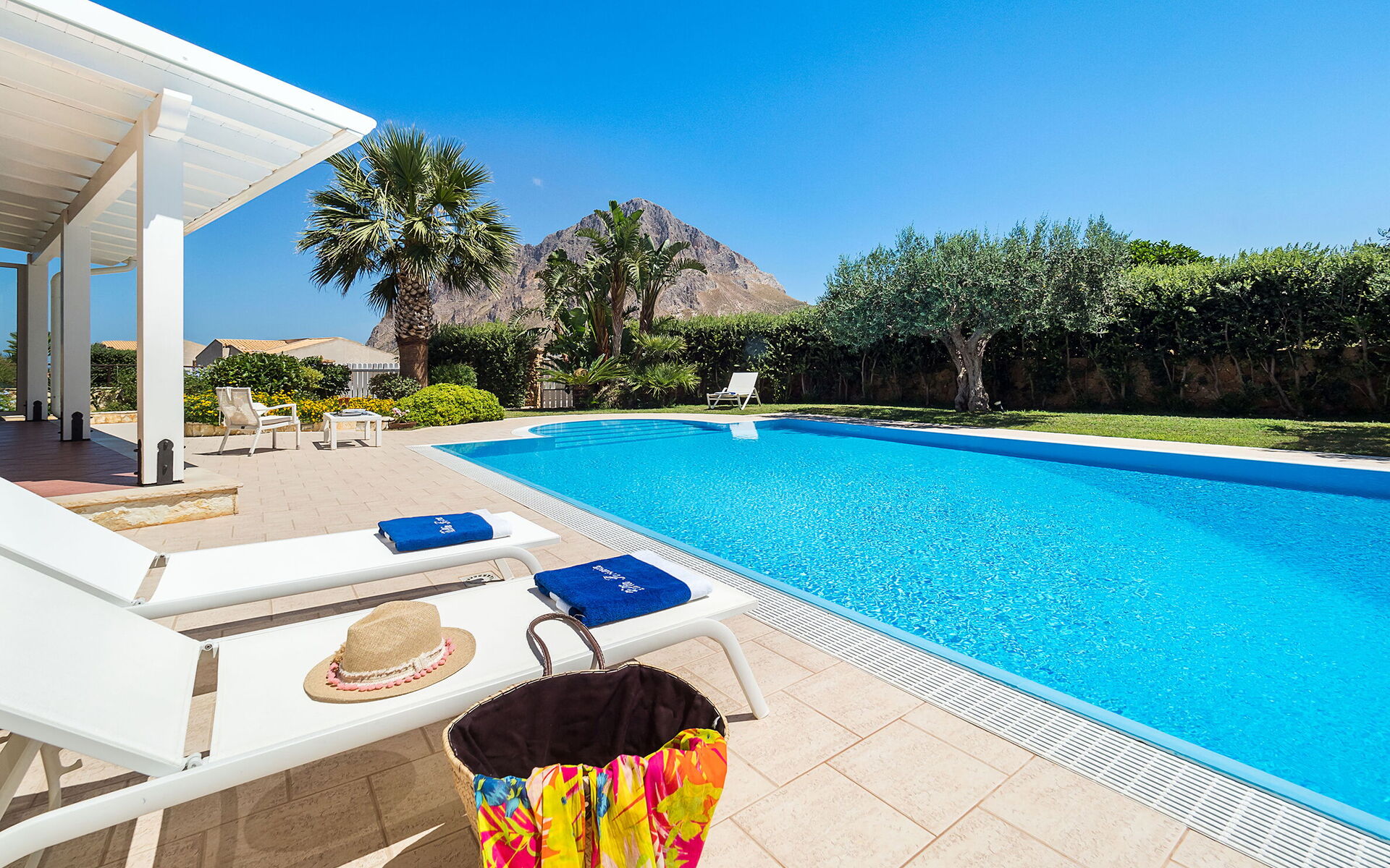 The outdoor area of the villa is characterised by the beautiful private swimming pool (size: 12.00 x 6.00 depth: 1.20-2.70) furnished with sun loungers, parasols and an outdoor shower for the exclusive use of guests.