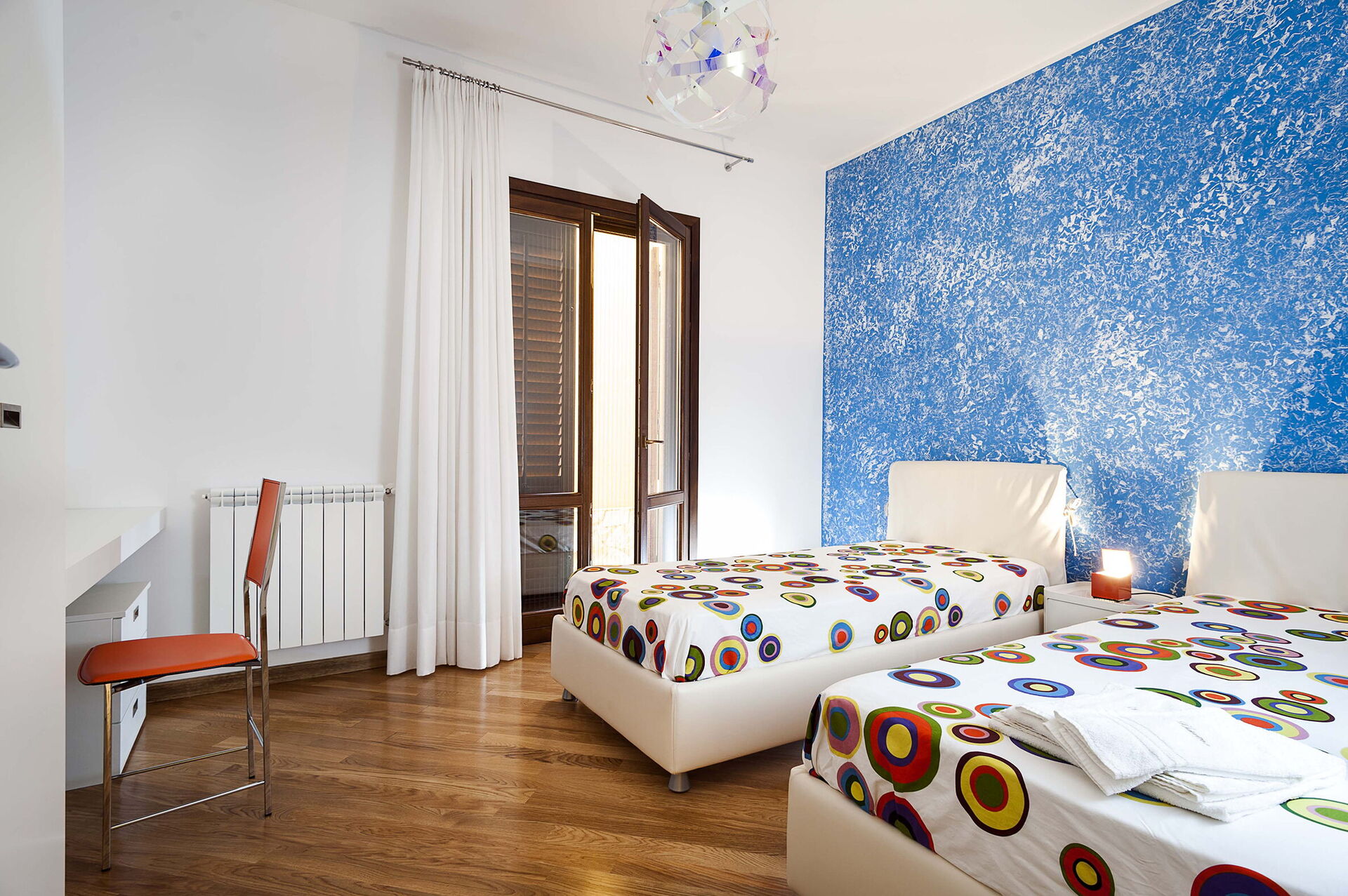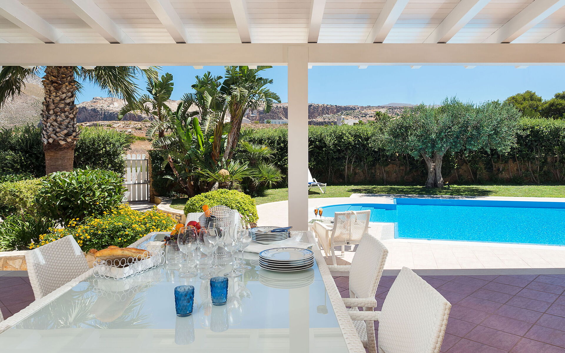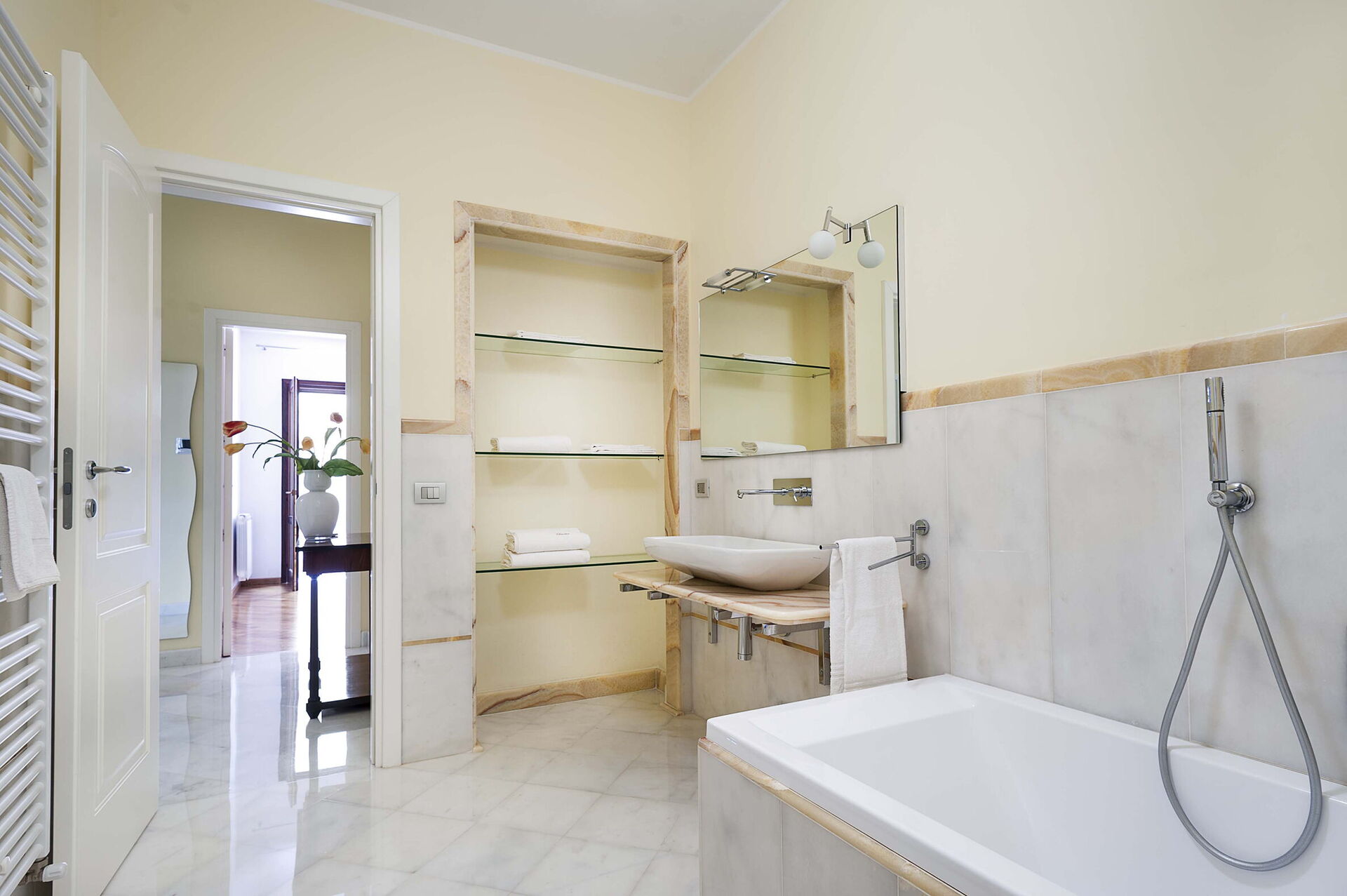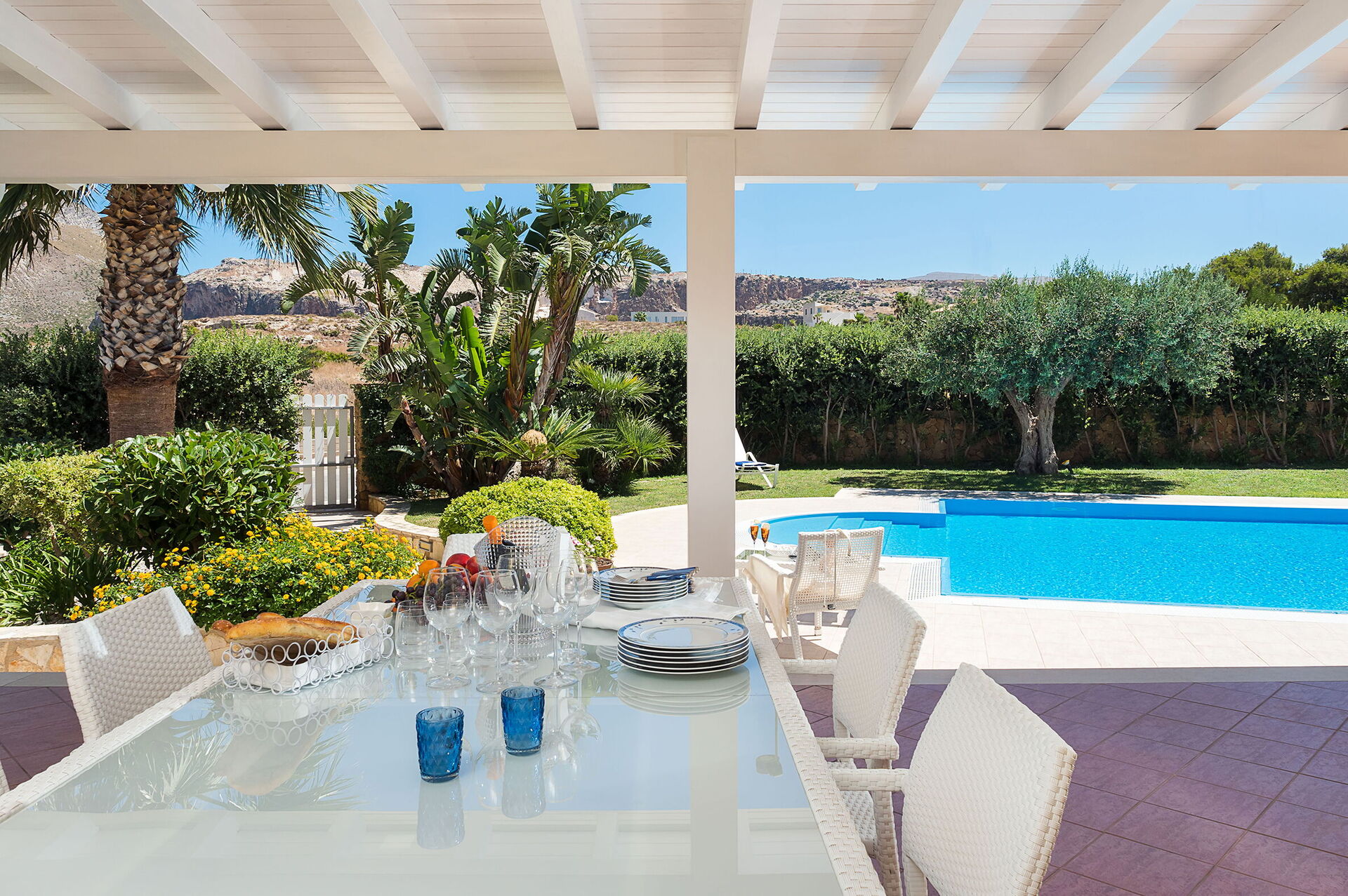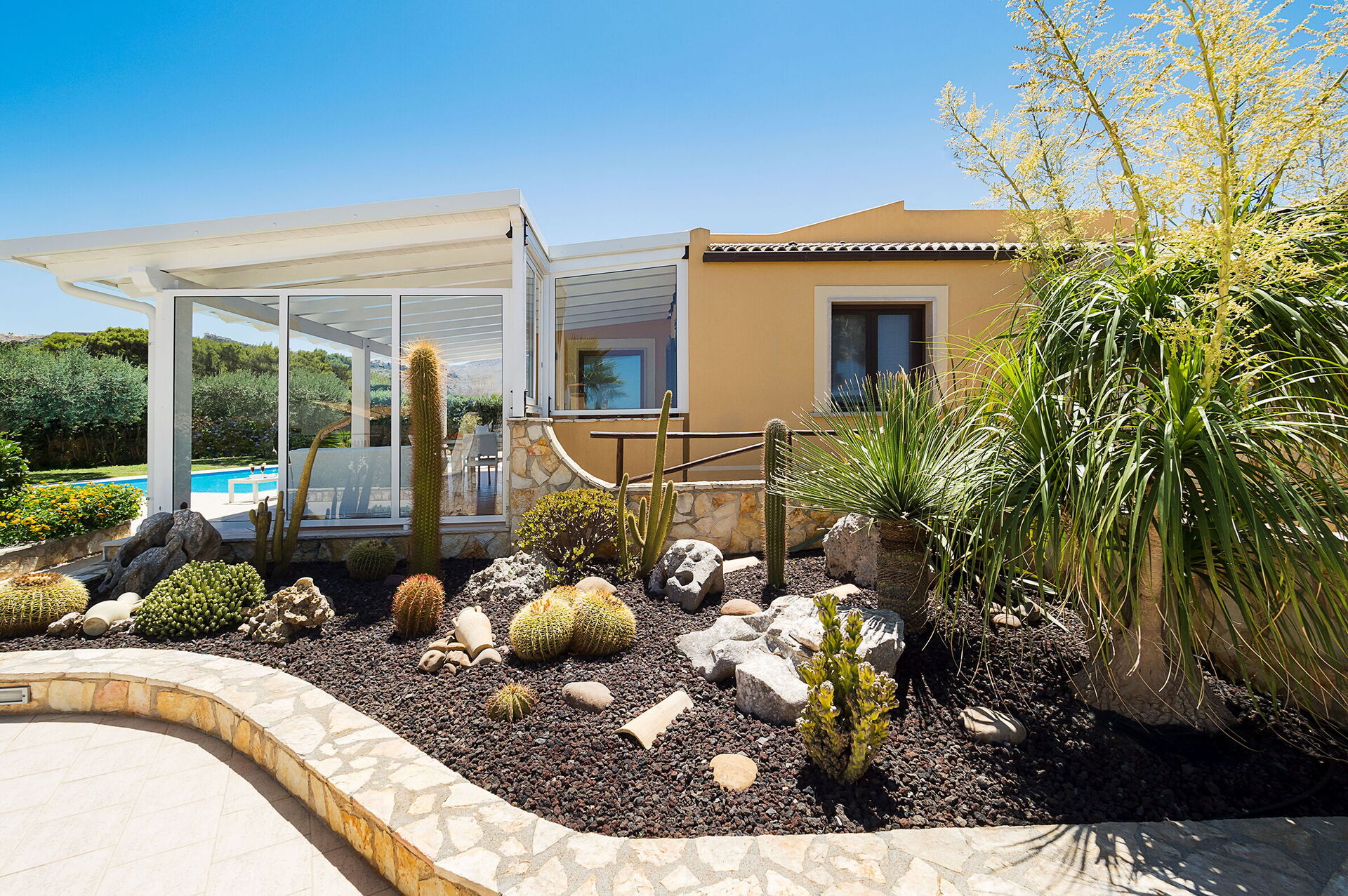 The outdoor area of the villa is characterised by the beautiful private swimming pool (size: 12.00 x 6.00 depth: 1.20-2.70) furnished with sun loungers, parasols and an outdoor shower for the exclusive use of guests.